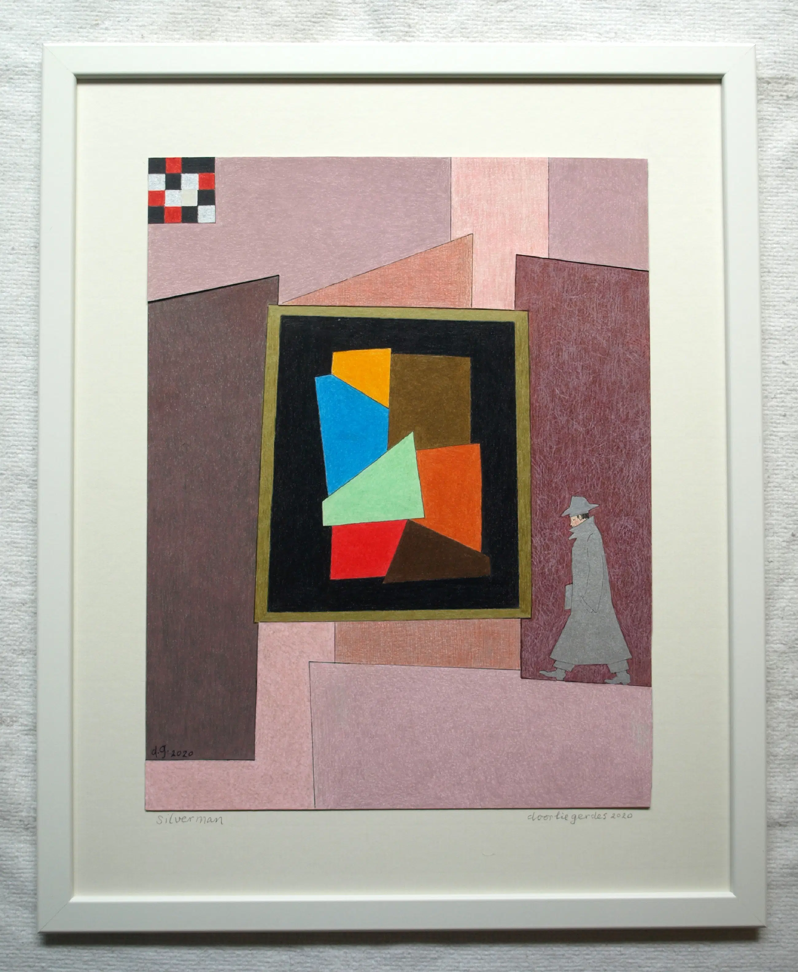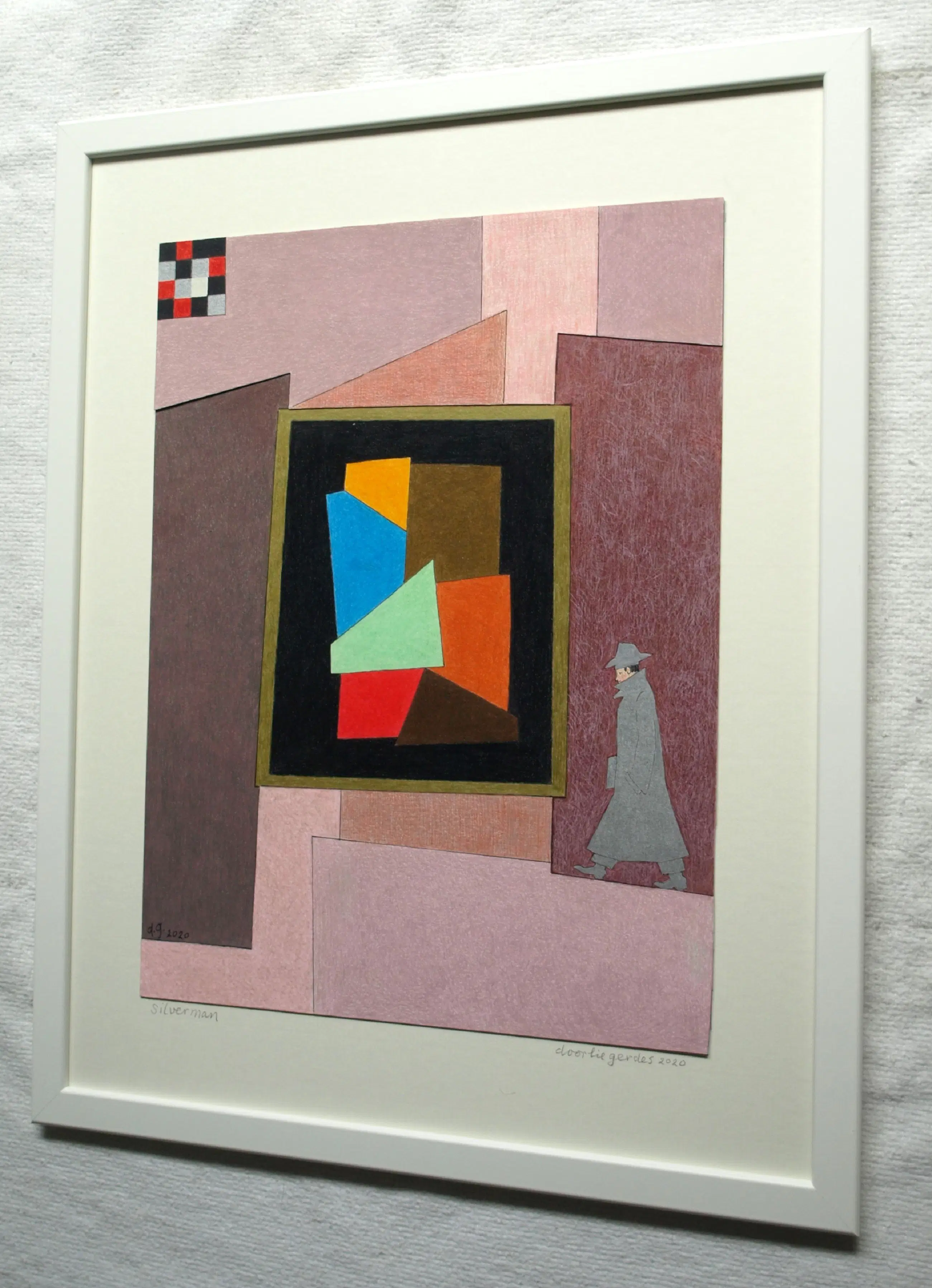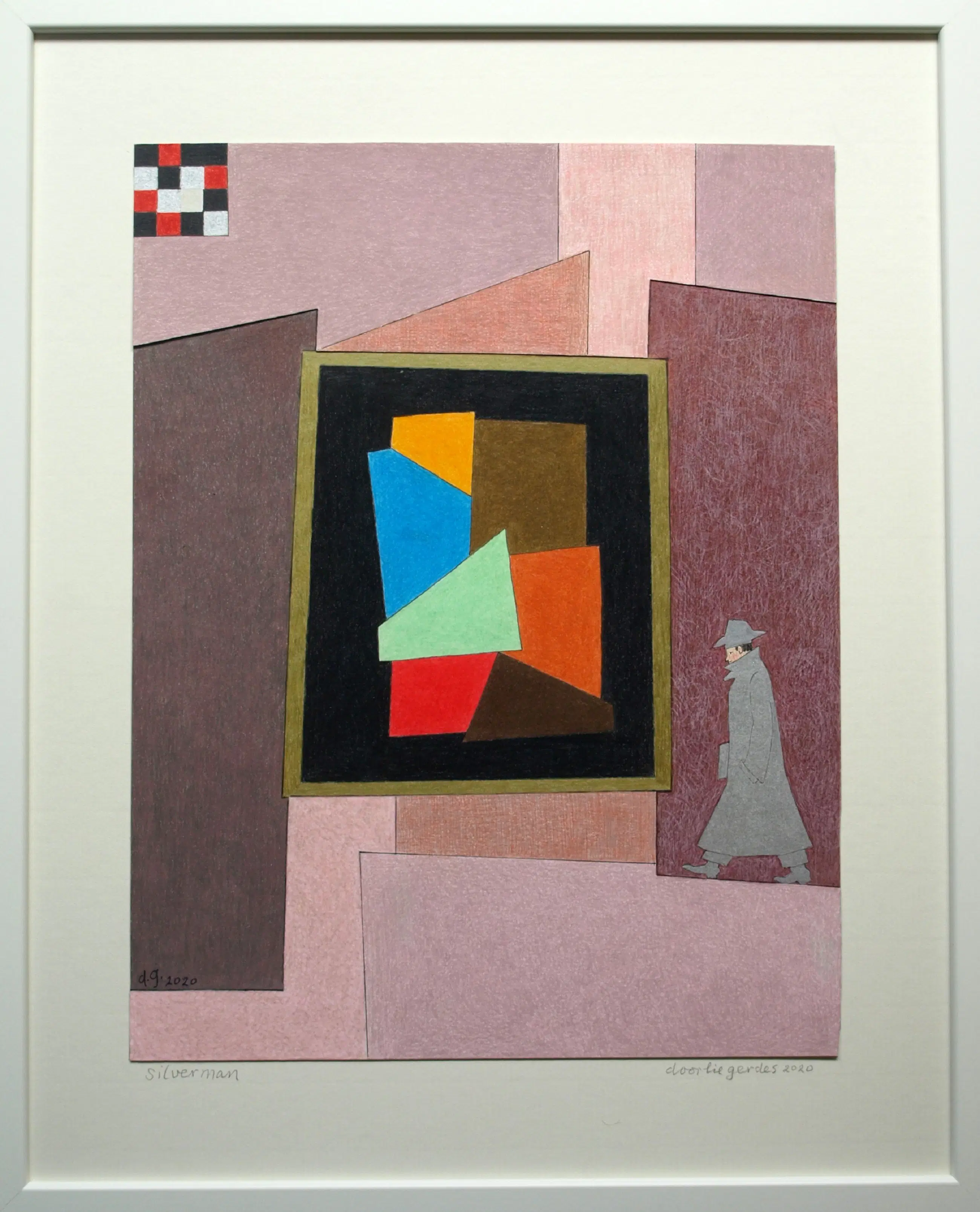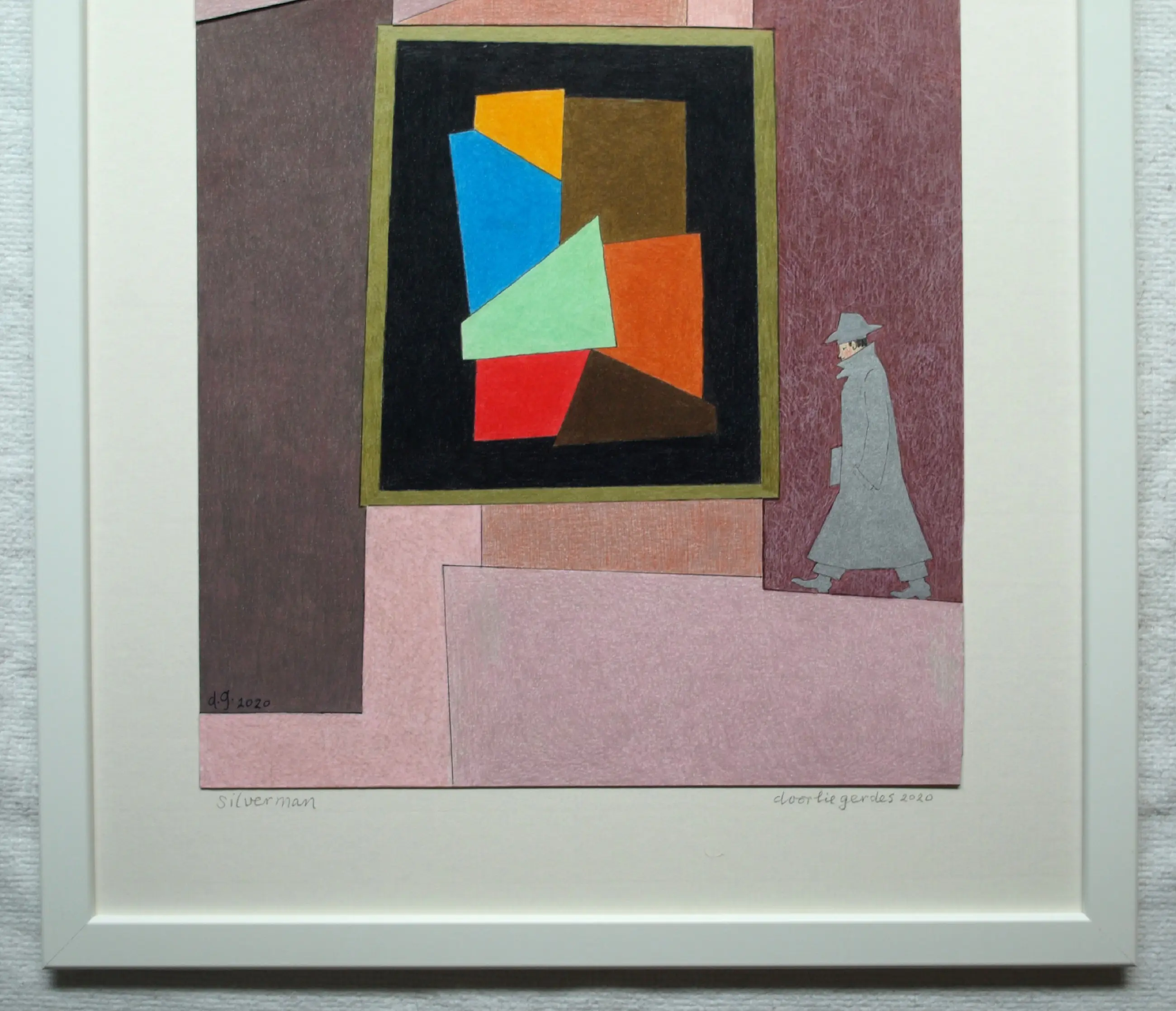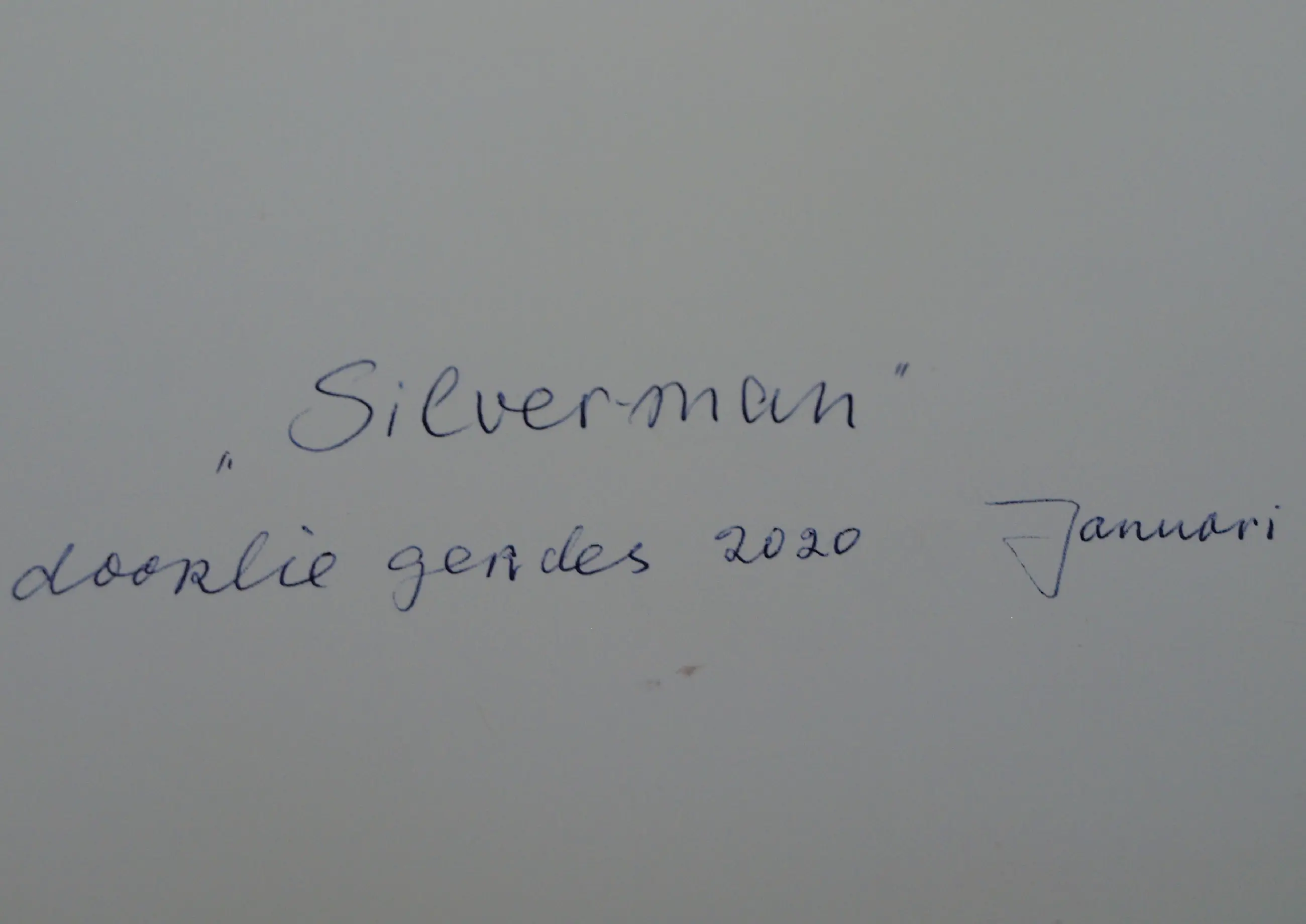 Een potloodtekening uit 2020 van de Nederlandse kunstenares Doorlie Gerdes (1935-), getiteld “Silverman”. -Gesigneerd, getiteld en gedateerd met potlood onder de tekening. Ook met pen gedateerd, getiteld en gesigneerd op de achterkant van de tekening (zie de 12e foto). -Ingelijst in een eenvoudige houten lijst met plexiglasplaat. -Afmetingen: Lijst, 53 x 43 x 1 cm. Tekening, 39 x 30 cm. -Herkomst: Uit een inboedel. -Conditie: In zeer goede staat. Zie ook de foto’s voor een eigen indruk. Kan zo aan de muur.