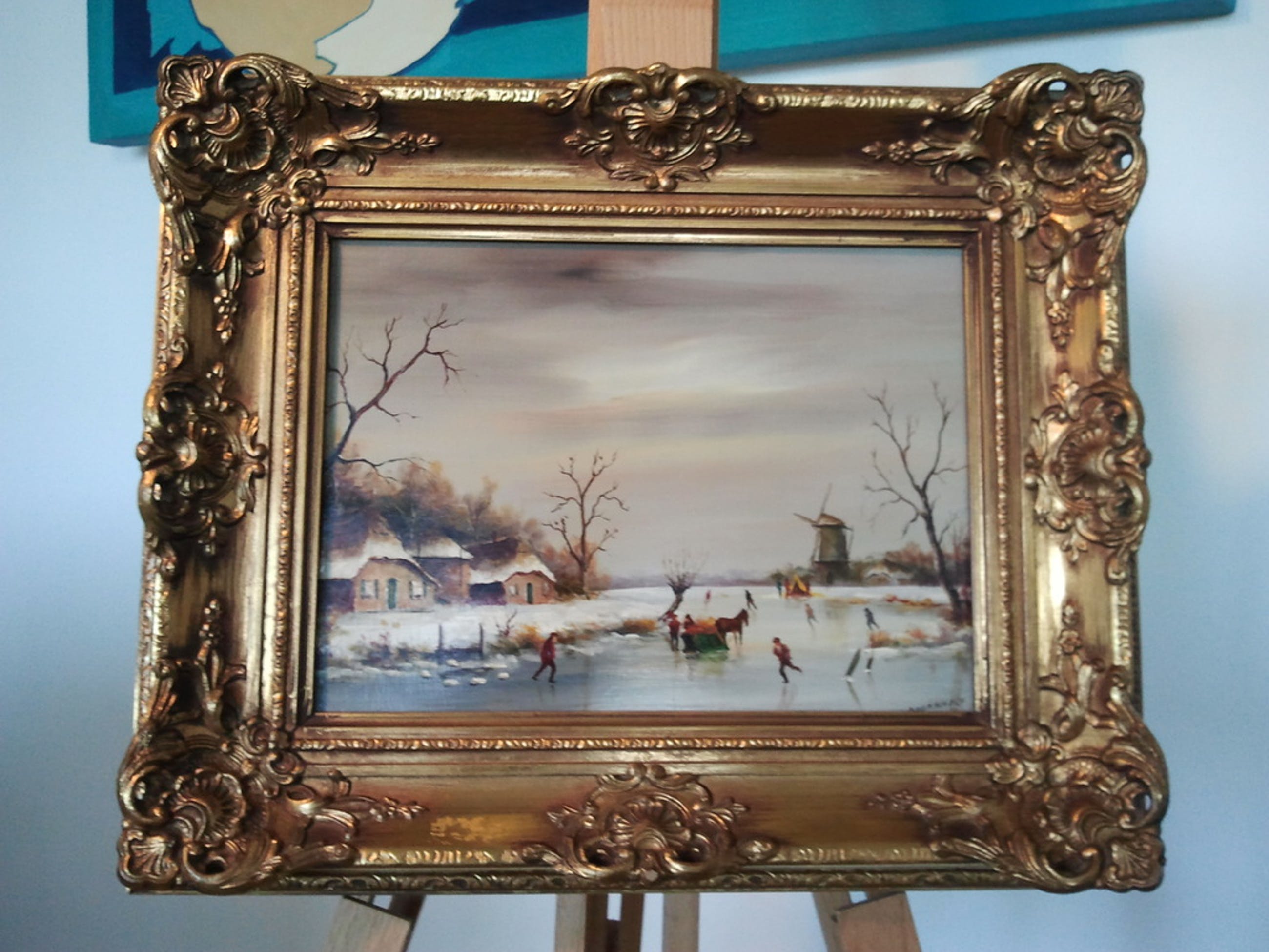 Wintergezicht olieverf paneel,