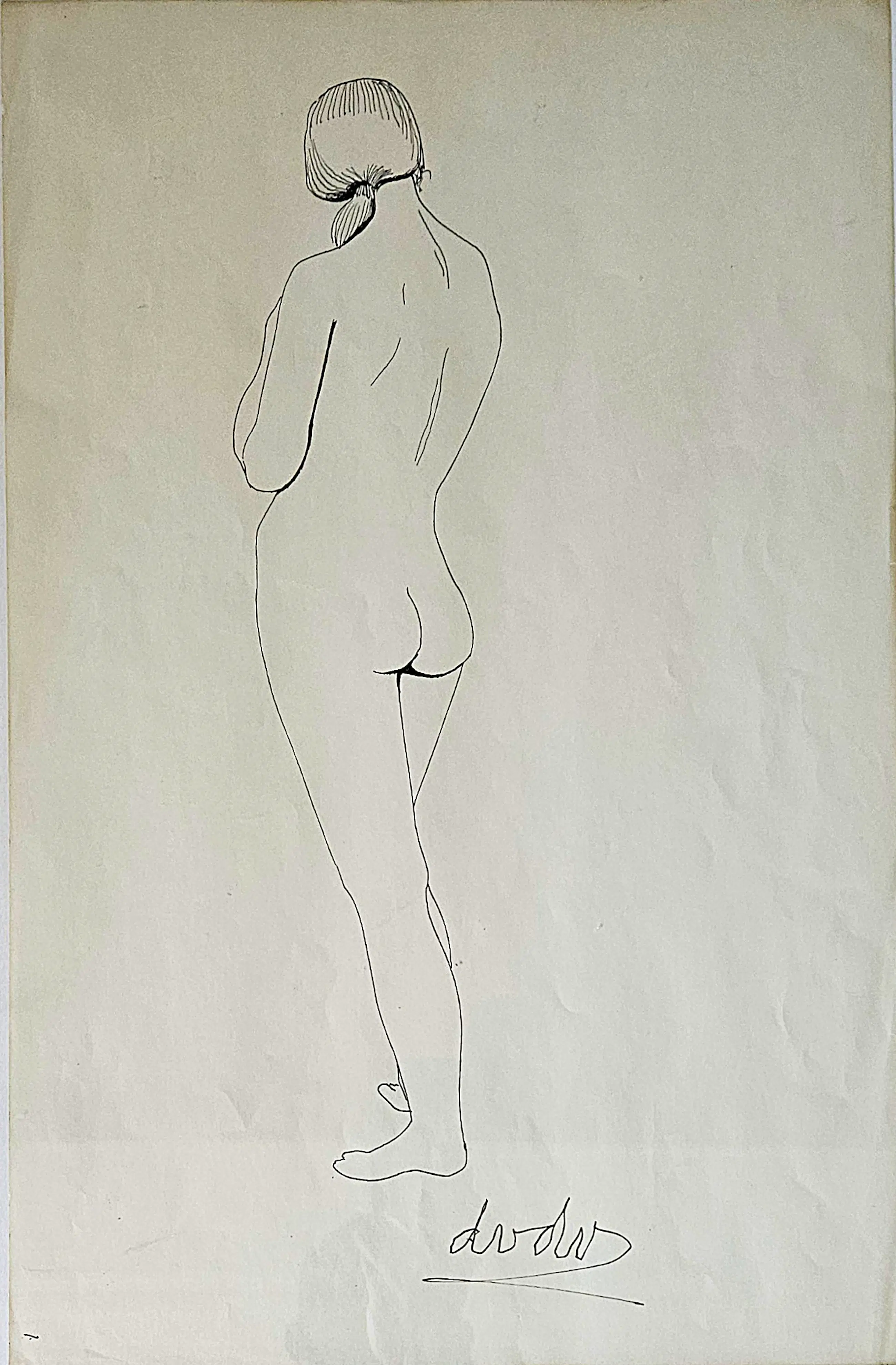 Dora van der Veen (1910-2001), Potlood op papier; staande naakt.
