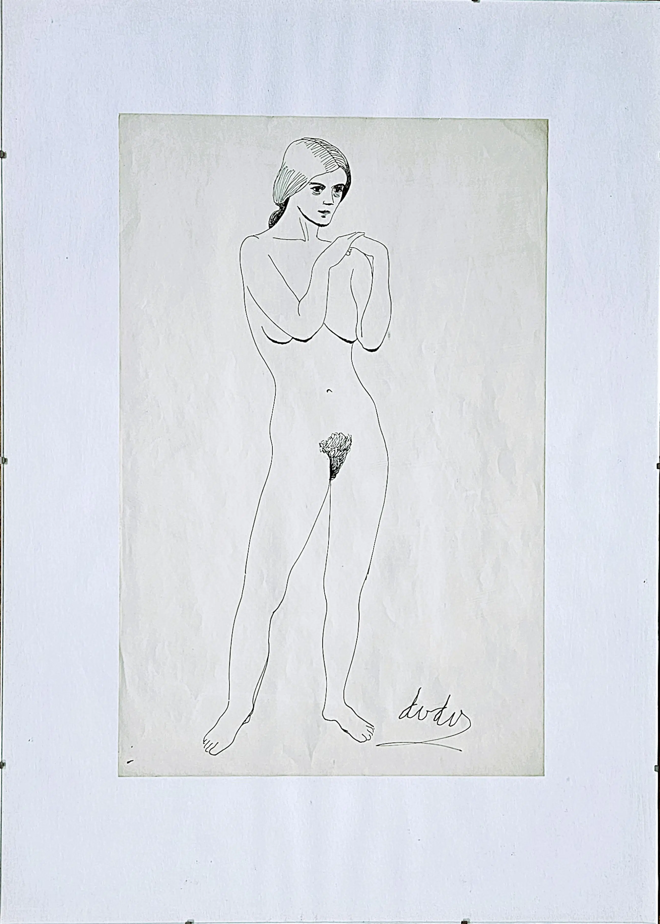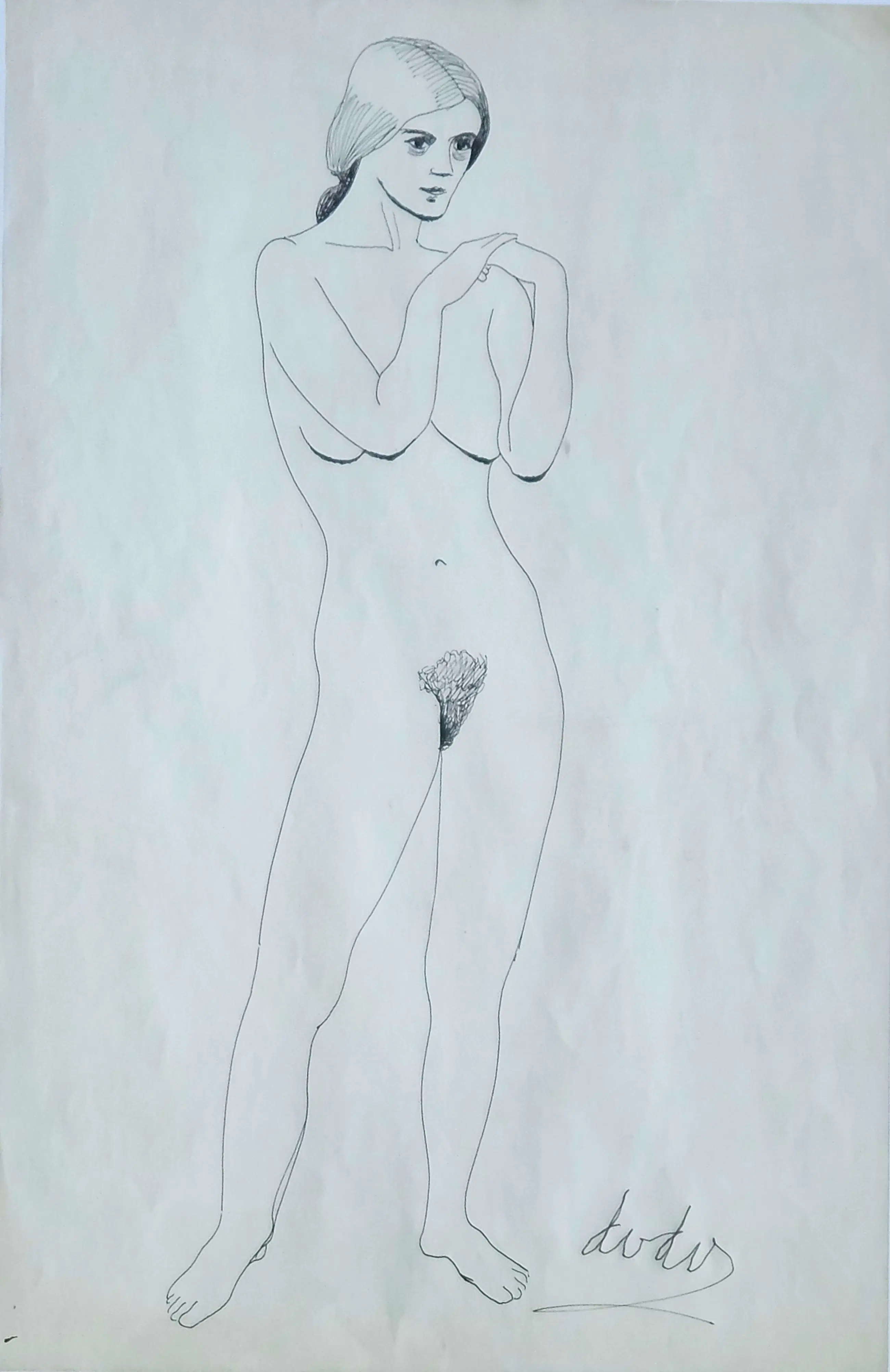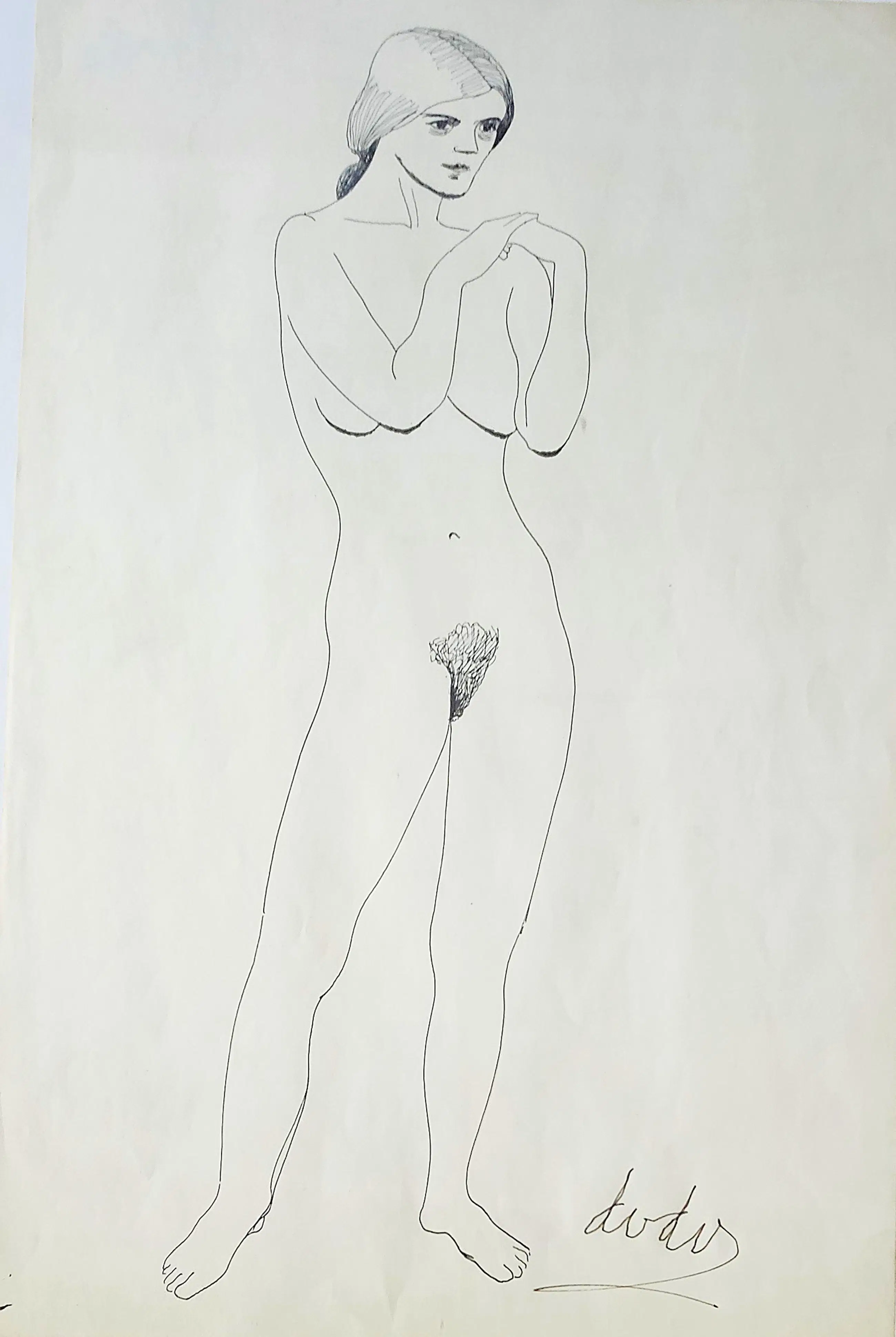 Dora van der Veen (1910-2001), Potlood op papier; staande naakt.