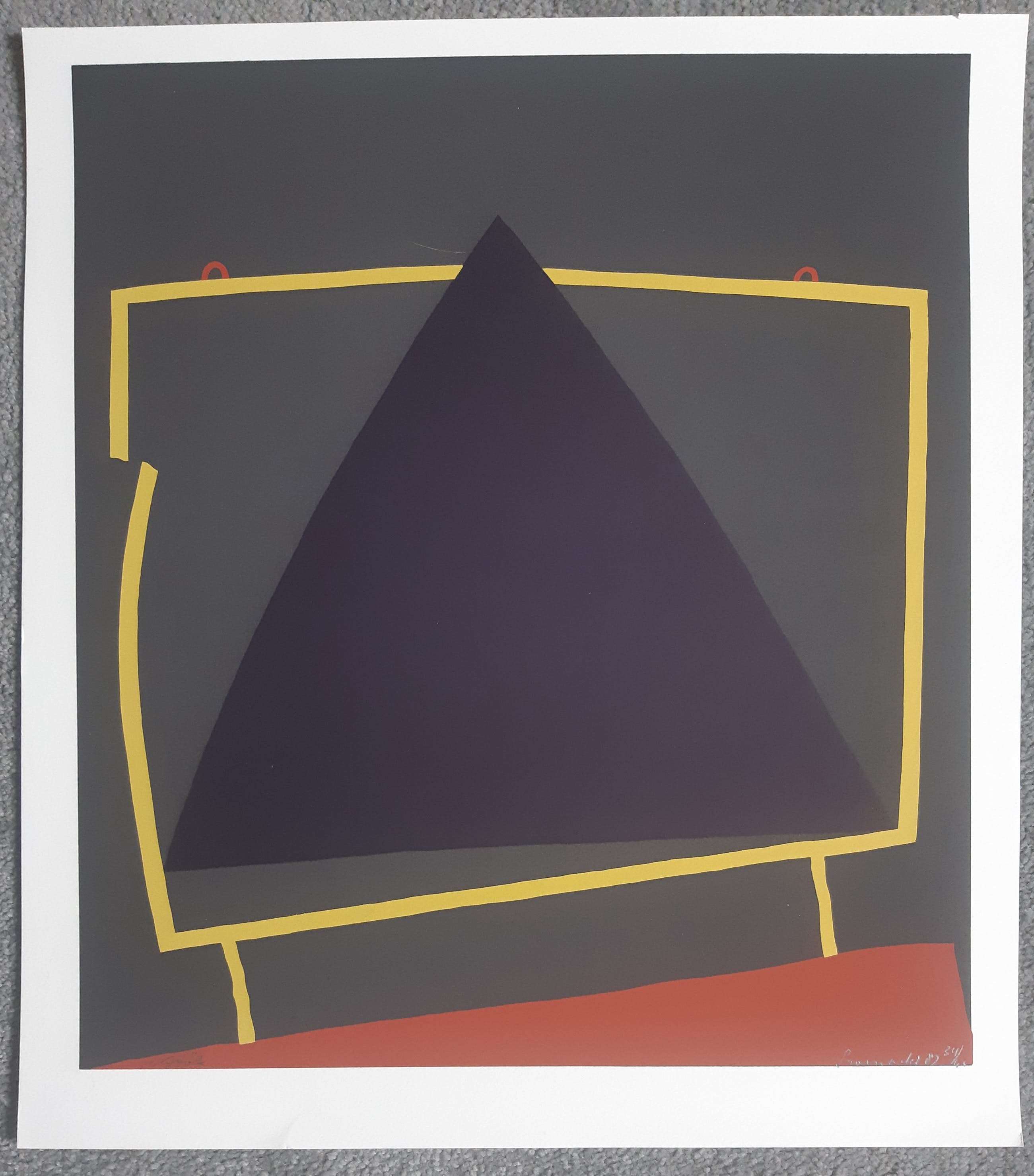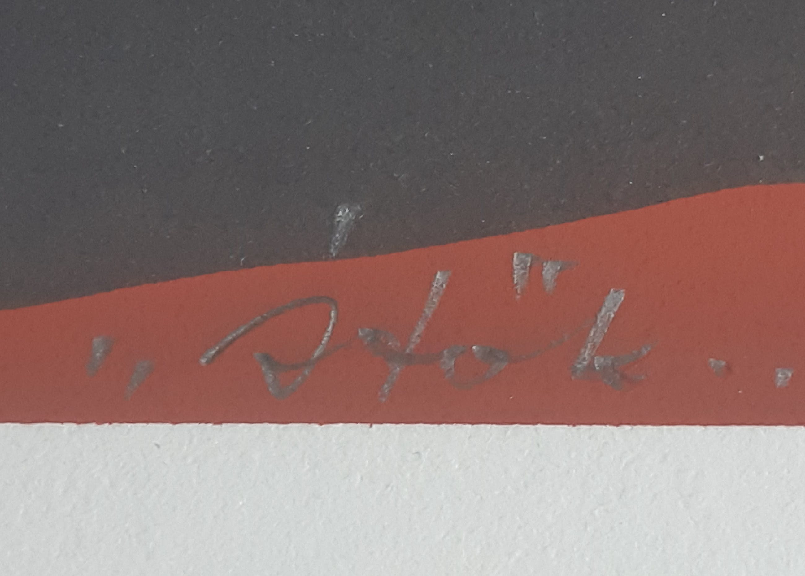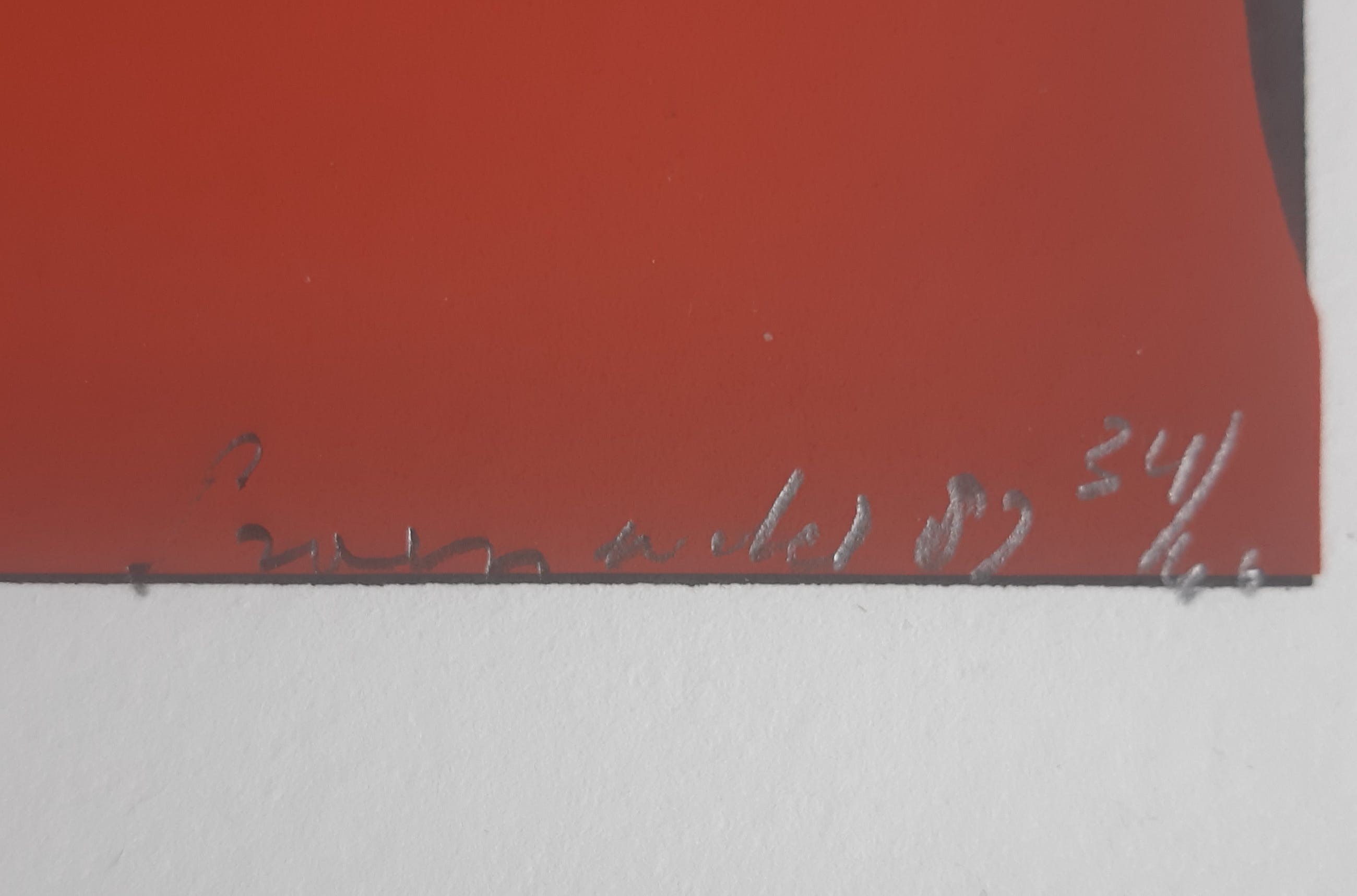 Abstracte zeefdruk van Doris Groeneveld. Met potlood gesigneerd, gedateerd, genummerd 34 / 46 en van de titel voorzien. De afbeelding meet 45 x 40 cm. De conditie van het werk is uitstekend.