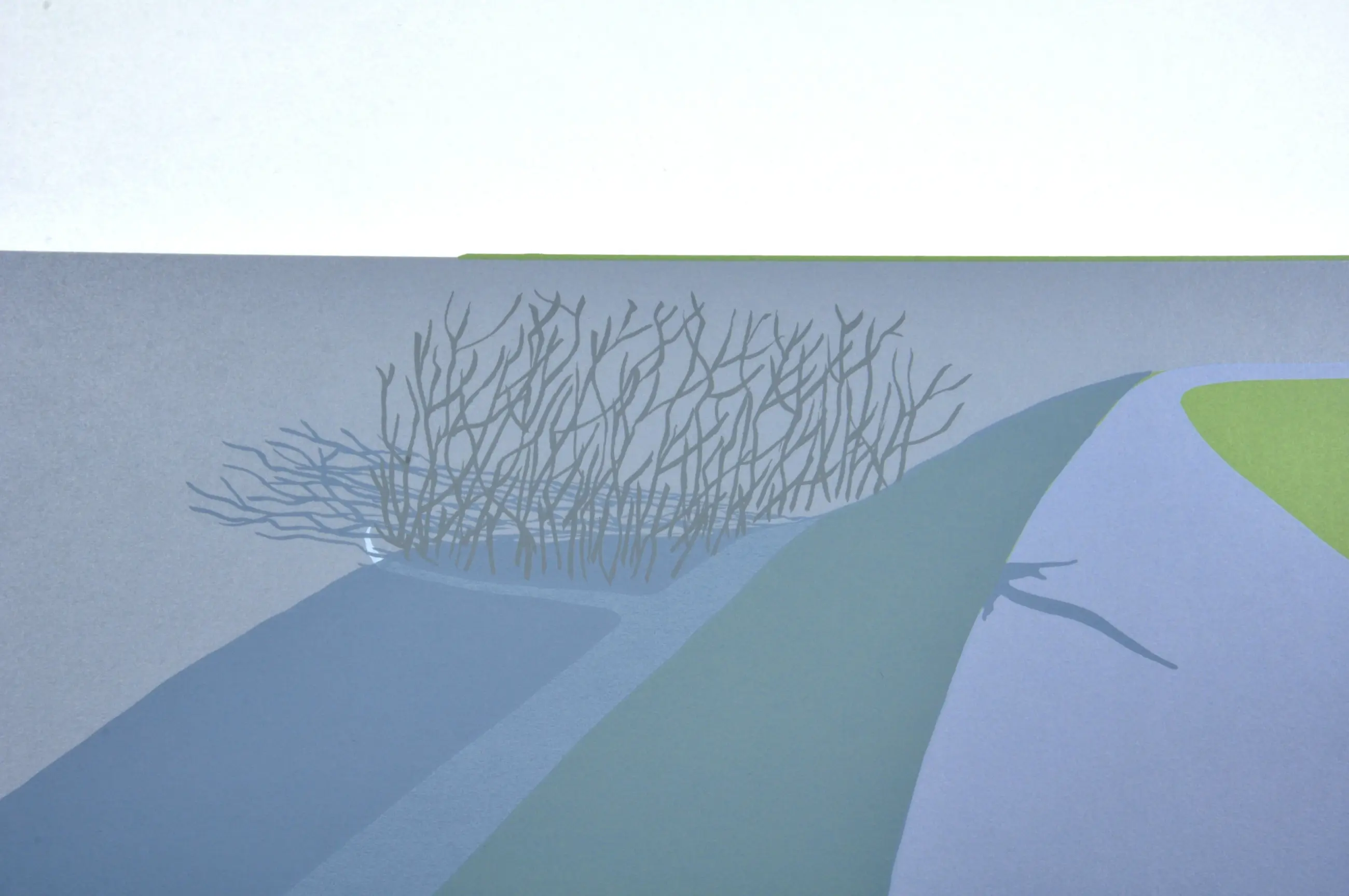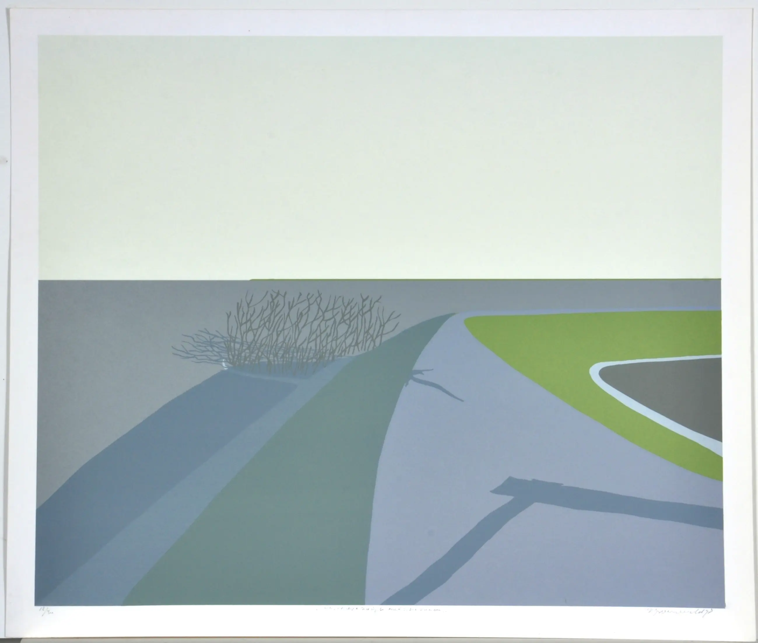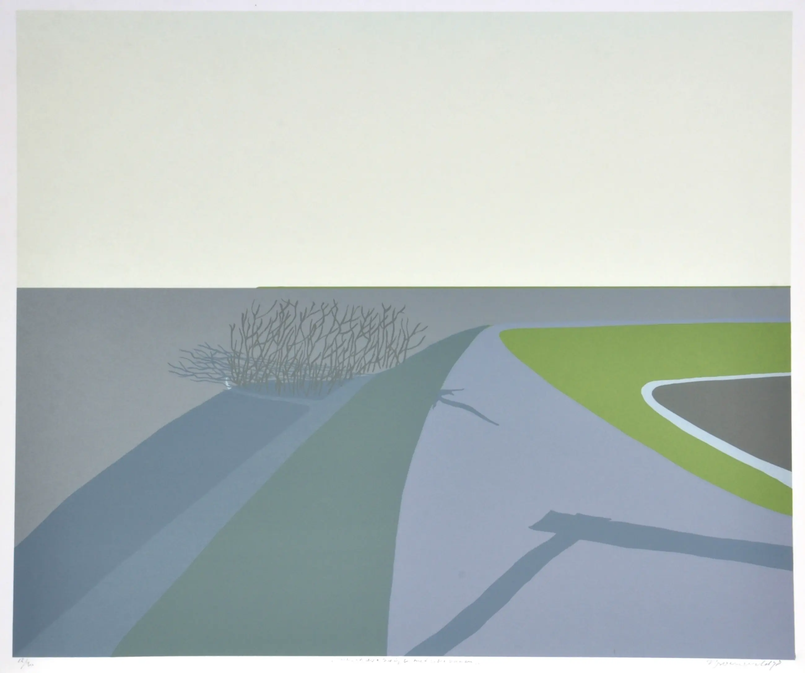 Doris Groeneveld - Westfries landschap met schaduwen - Zeefdruk - Ges. - 55x65 cm - 1978
