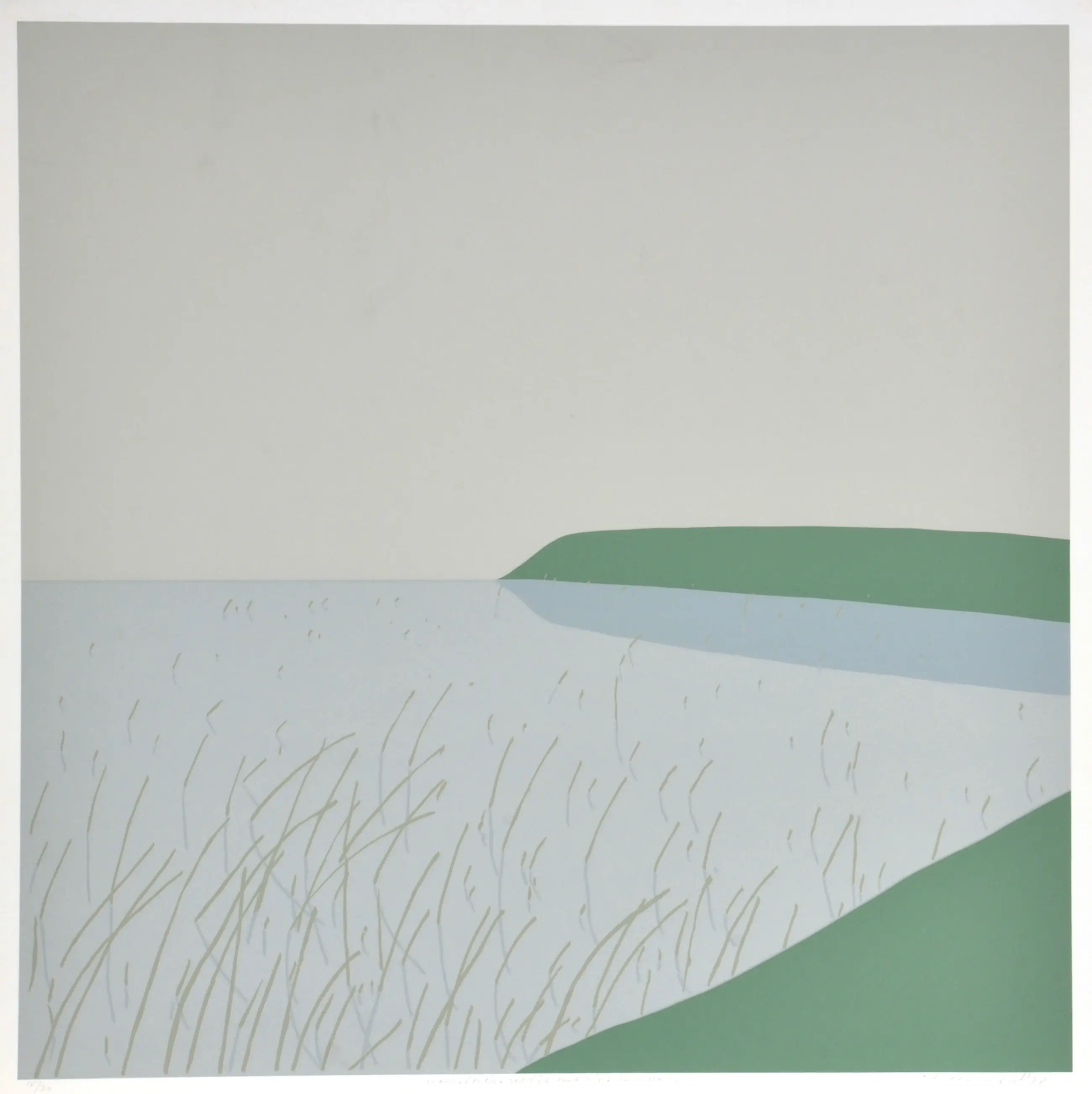 Doris Groeneveld - Westfriese omringdijk met riet en water - Zeefdruk - Ges. - 65x55 cm - 1978