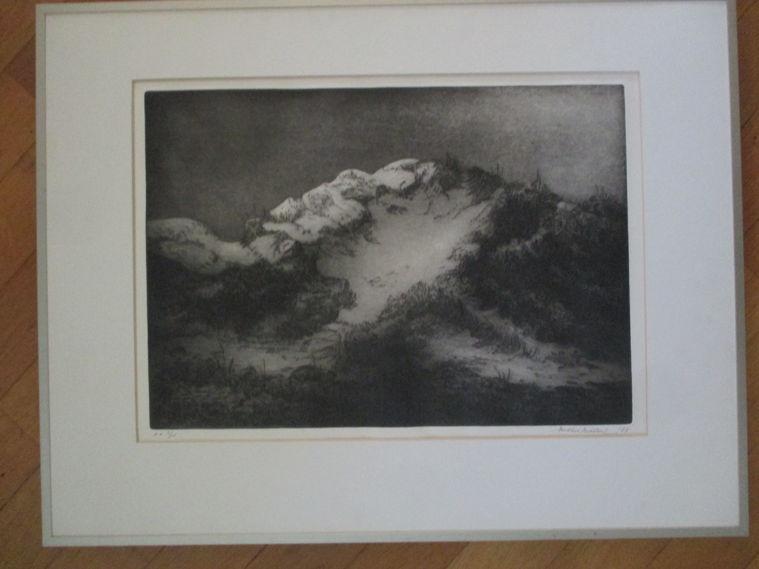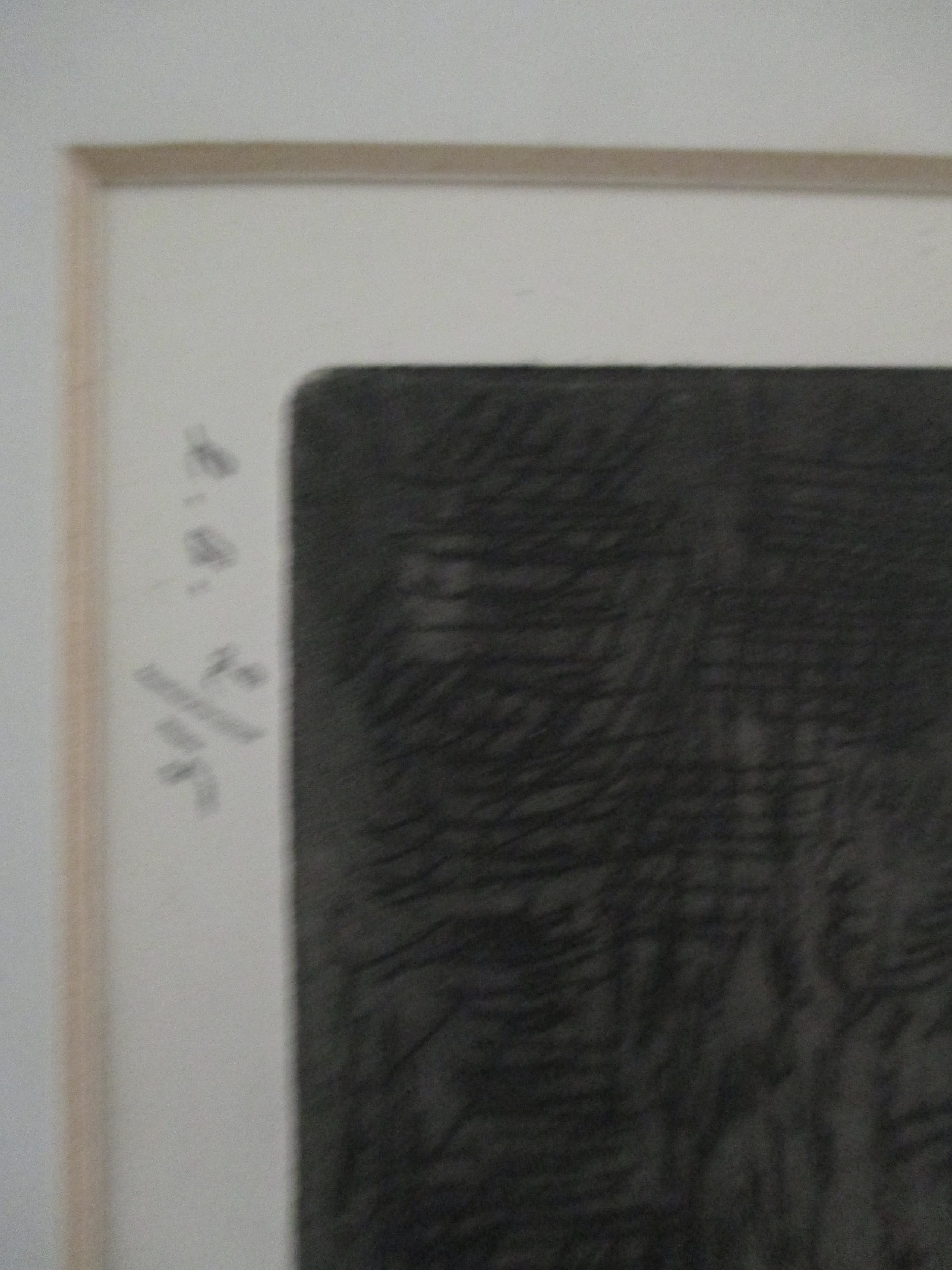 Ets van Dorothea Braehler-Kuhnen, gesigneerd, gedateerd en genummerd in potlood. Ingelijst in aluminium lijst achter passe-partout.