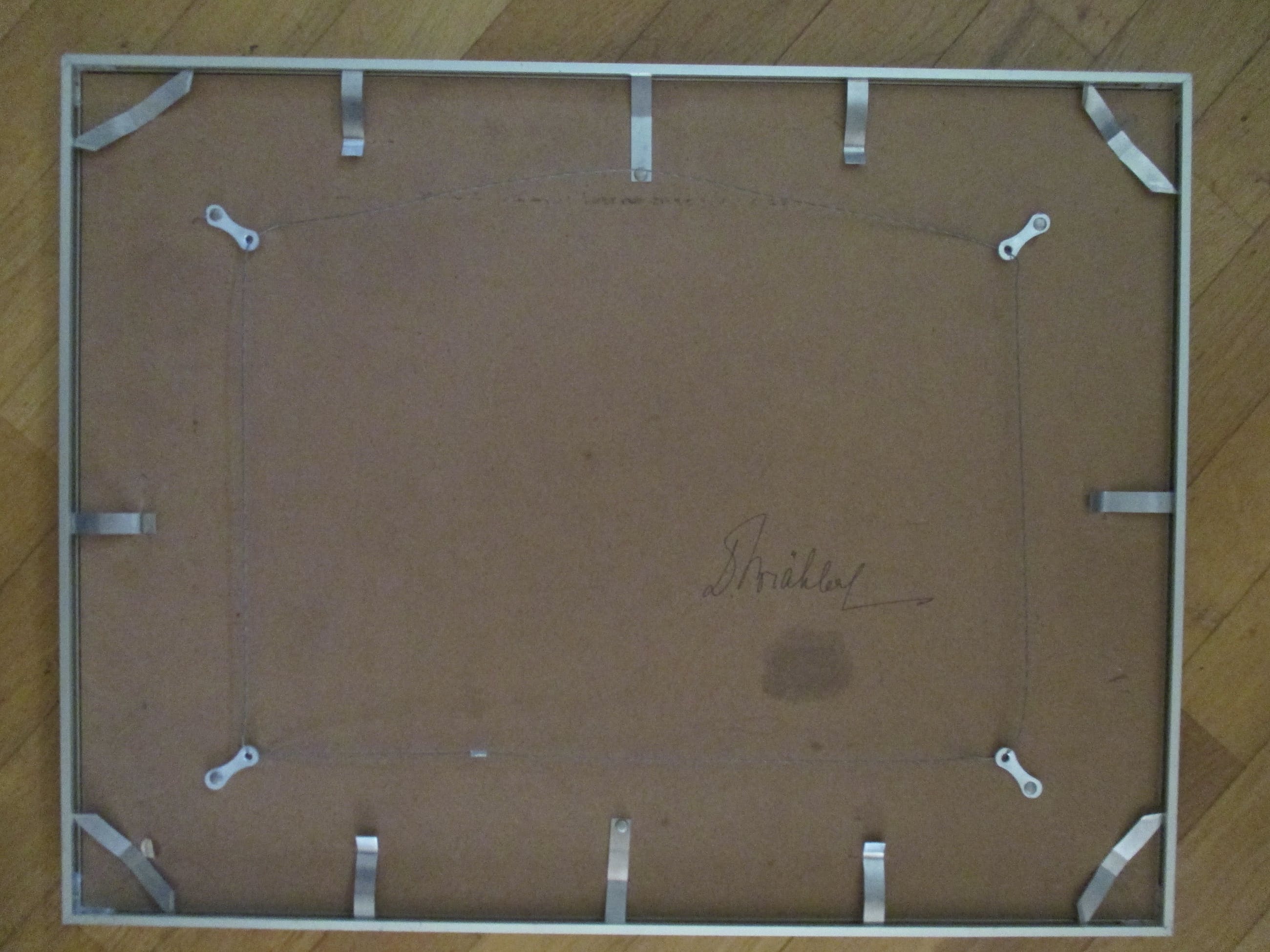 geen glasplaat. lijst lichte gebruikssporen, passe-partout niet helemaal smetteloos (wel bijna)