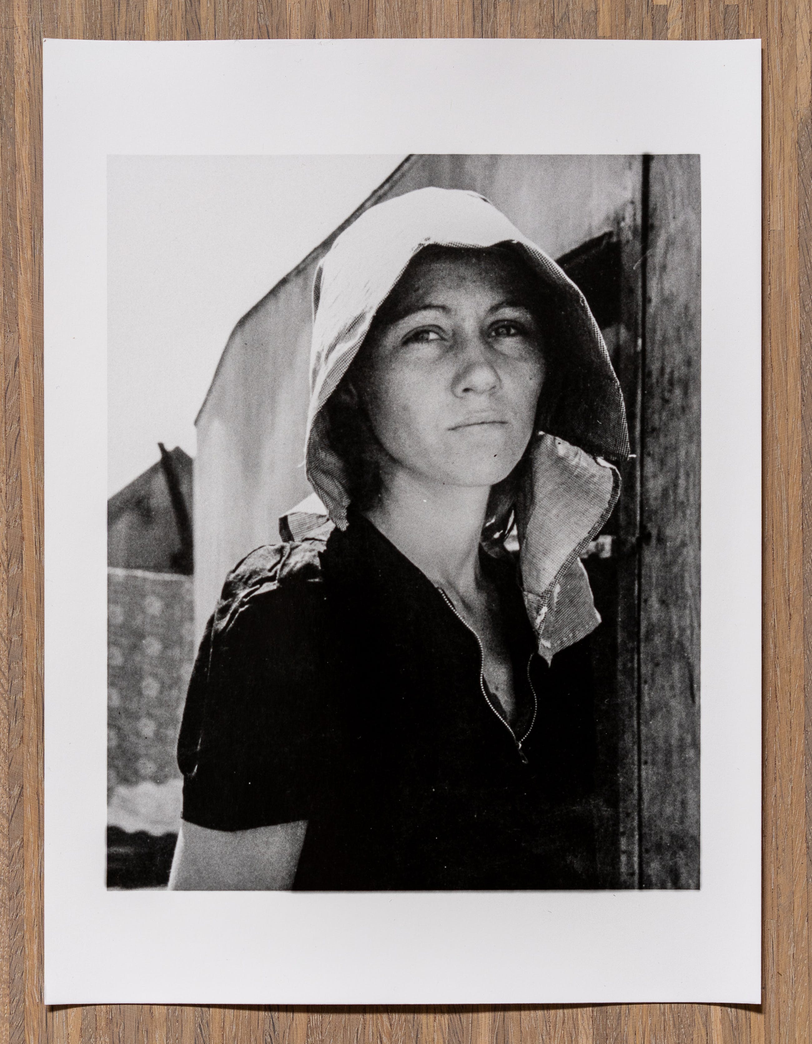Een iconisch portret van Dorothea Lange: '"Young Migratory Mother", gemaakt in 1940 tijdens de Grote Depressie in de Verenigde Staten. Het betreft een originele zilver gelatine print, in een genummerde oplage van 15 stuks uit 2005. De print is in nieuwstaat, ze is nooit opgehangen of ingekaderd.