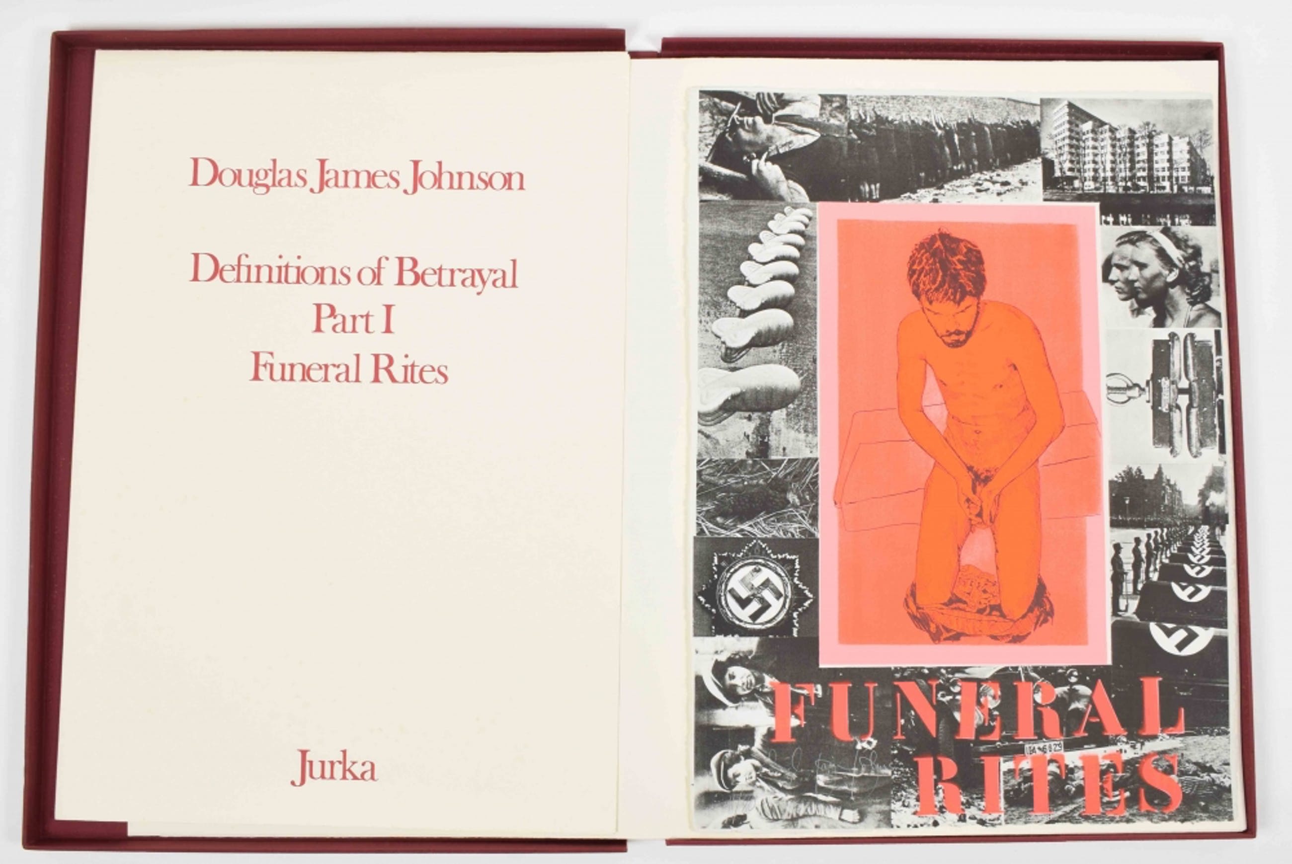 Amsterdam, Galerie Jurka, 1977 Linnen portfolio compleet met 10 gesign. en genumm. collages in zeefdruk, los titelblad, colofon en inhoudsopgave. Nr. 50/80. Portfolio 73,5 x 53 cm.