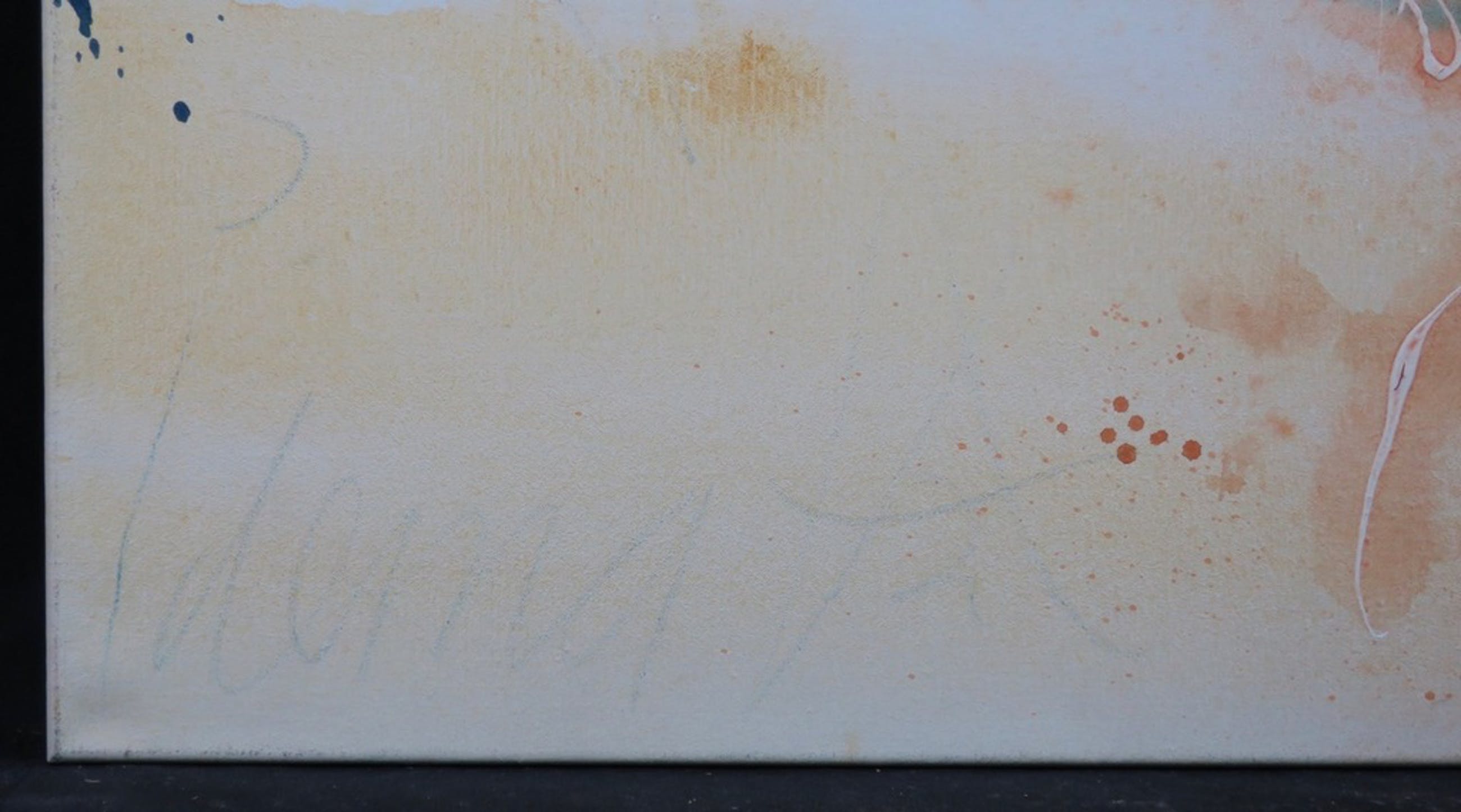 Conditie kunstwerk: In zeer goede staat, wat vuil en zeer lichte schade langs de uiterste randen van doek