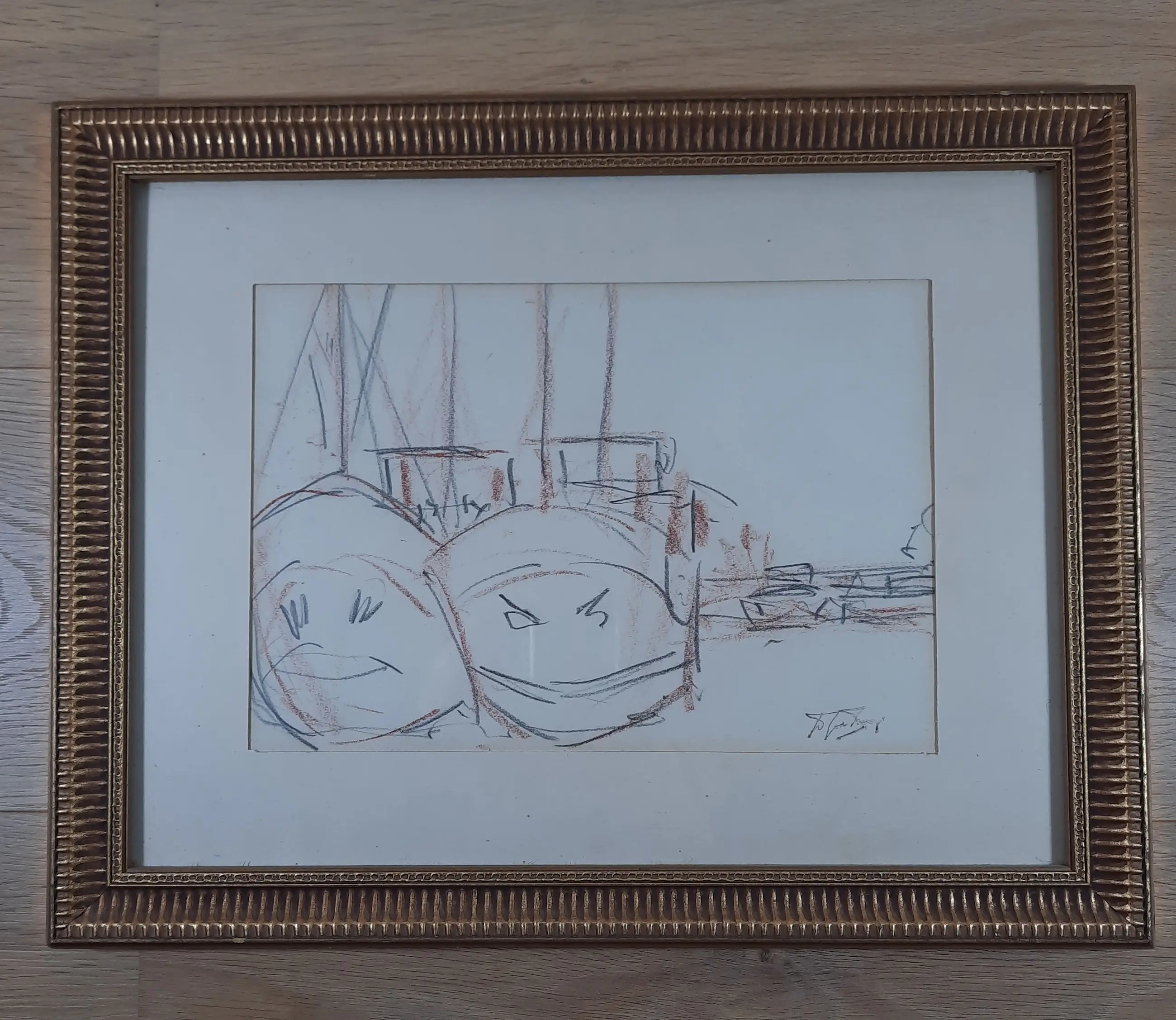 Douwe Jan van der Zweep Potloodtekening Ingelijst achter glas