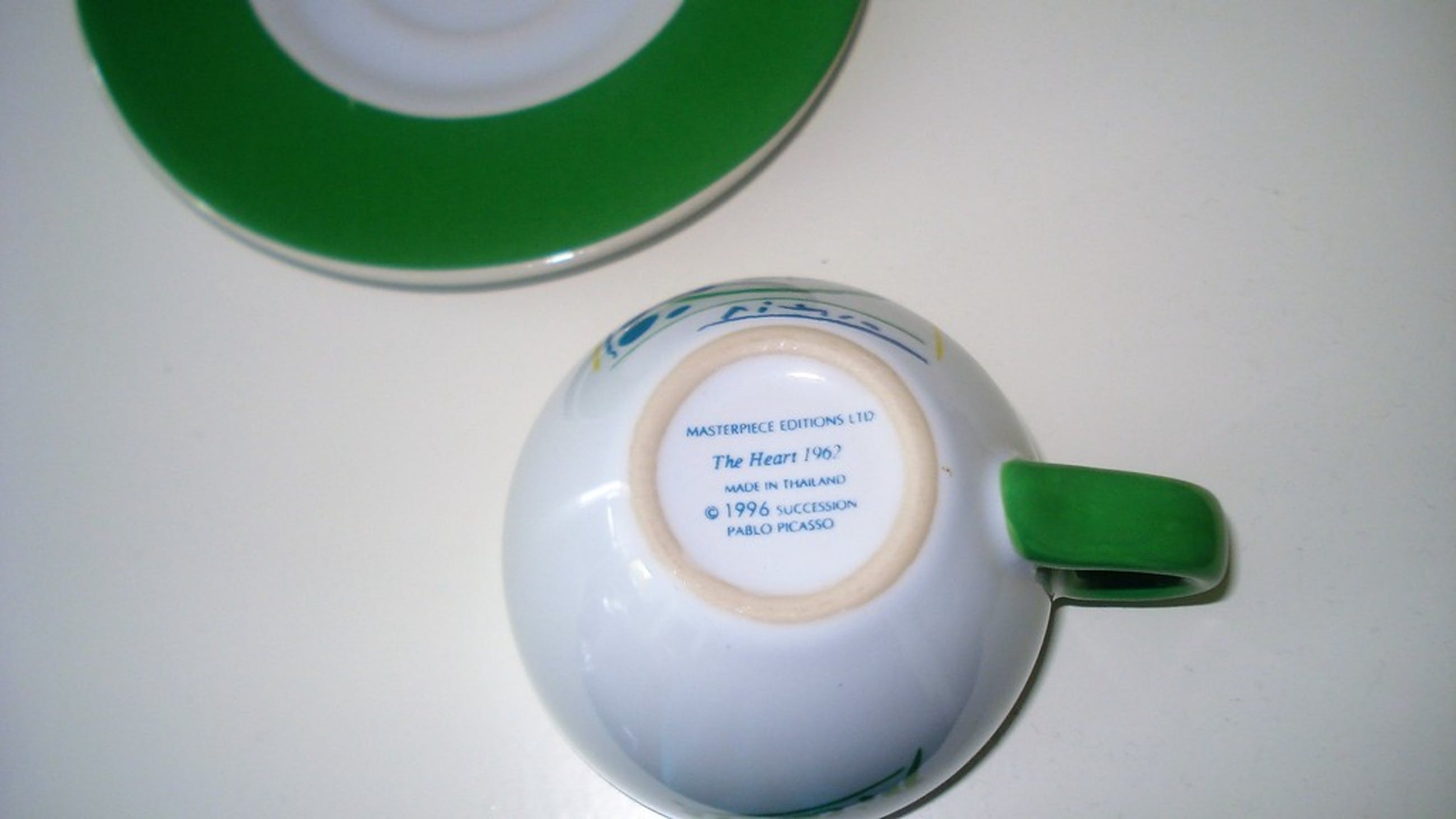 Drie prachtig espresso kop/schotel Masterpiece edition LTD 1996 Succession Pablo Picasso, in de kleuren groen, blauw, geel