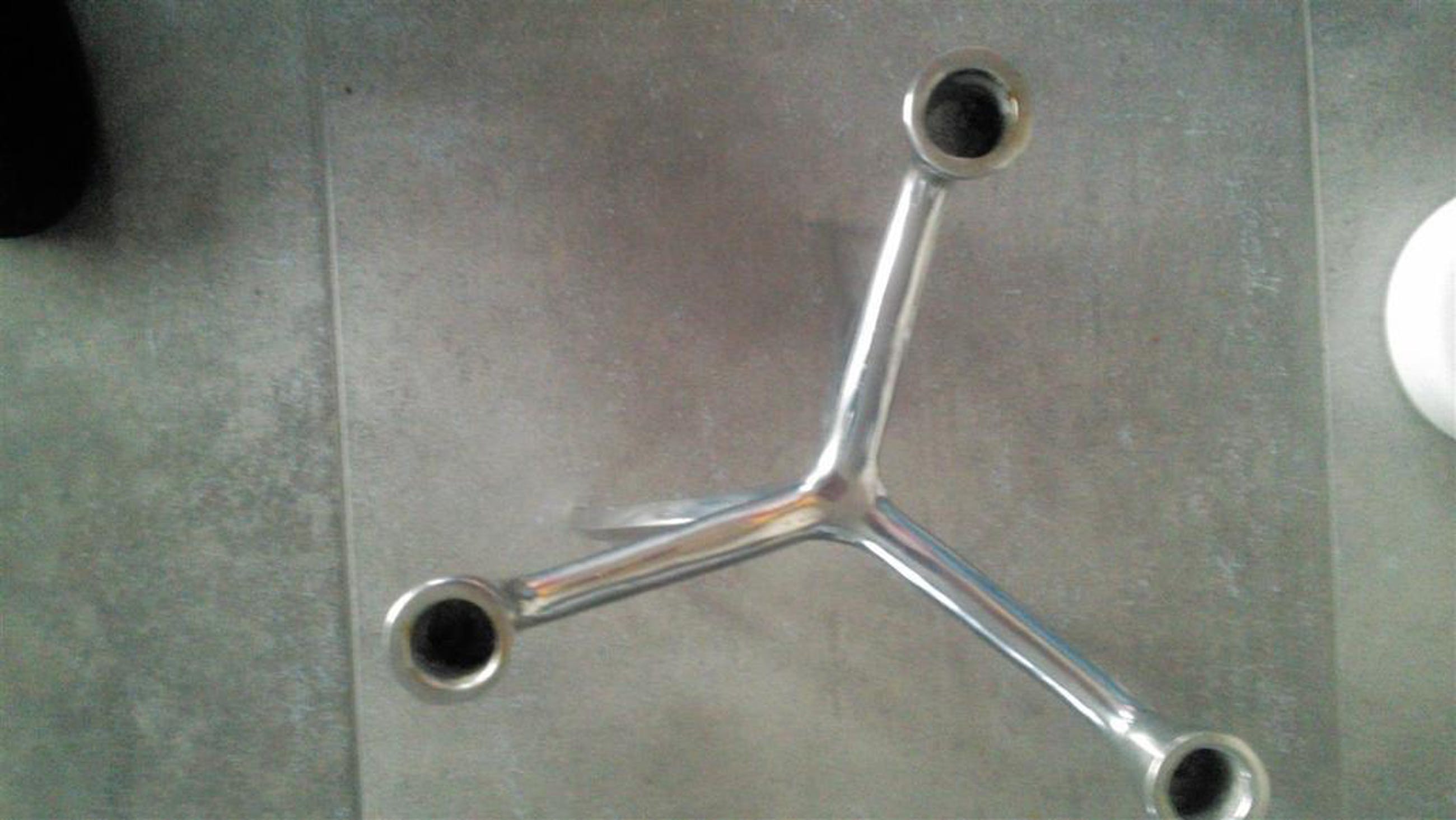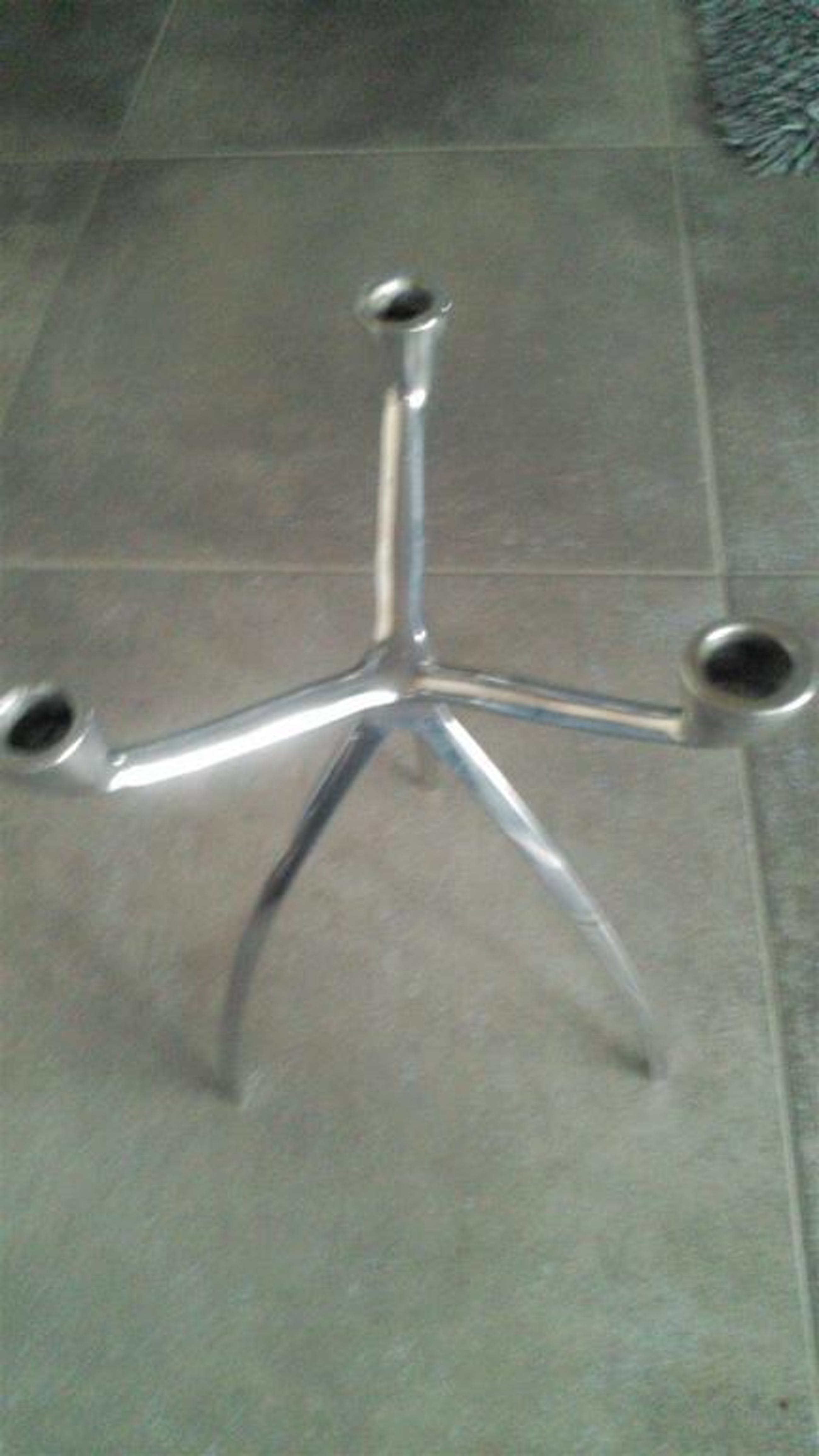 Op zich al een sierobject deze kandelaar met drie armen van gepolijst aluminium
