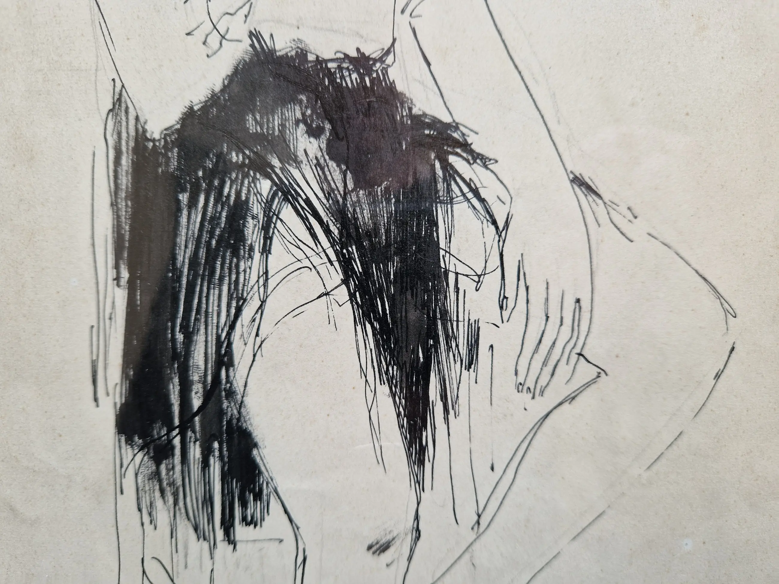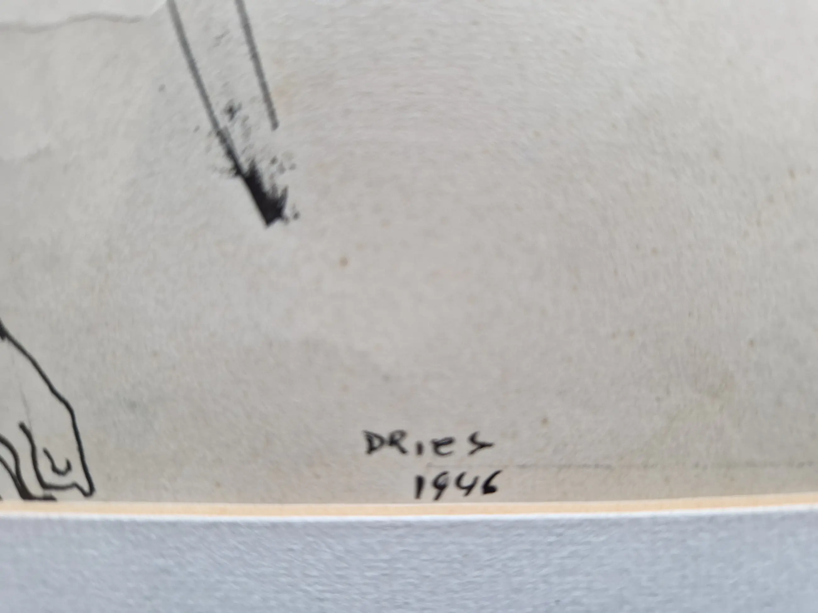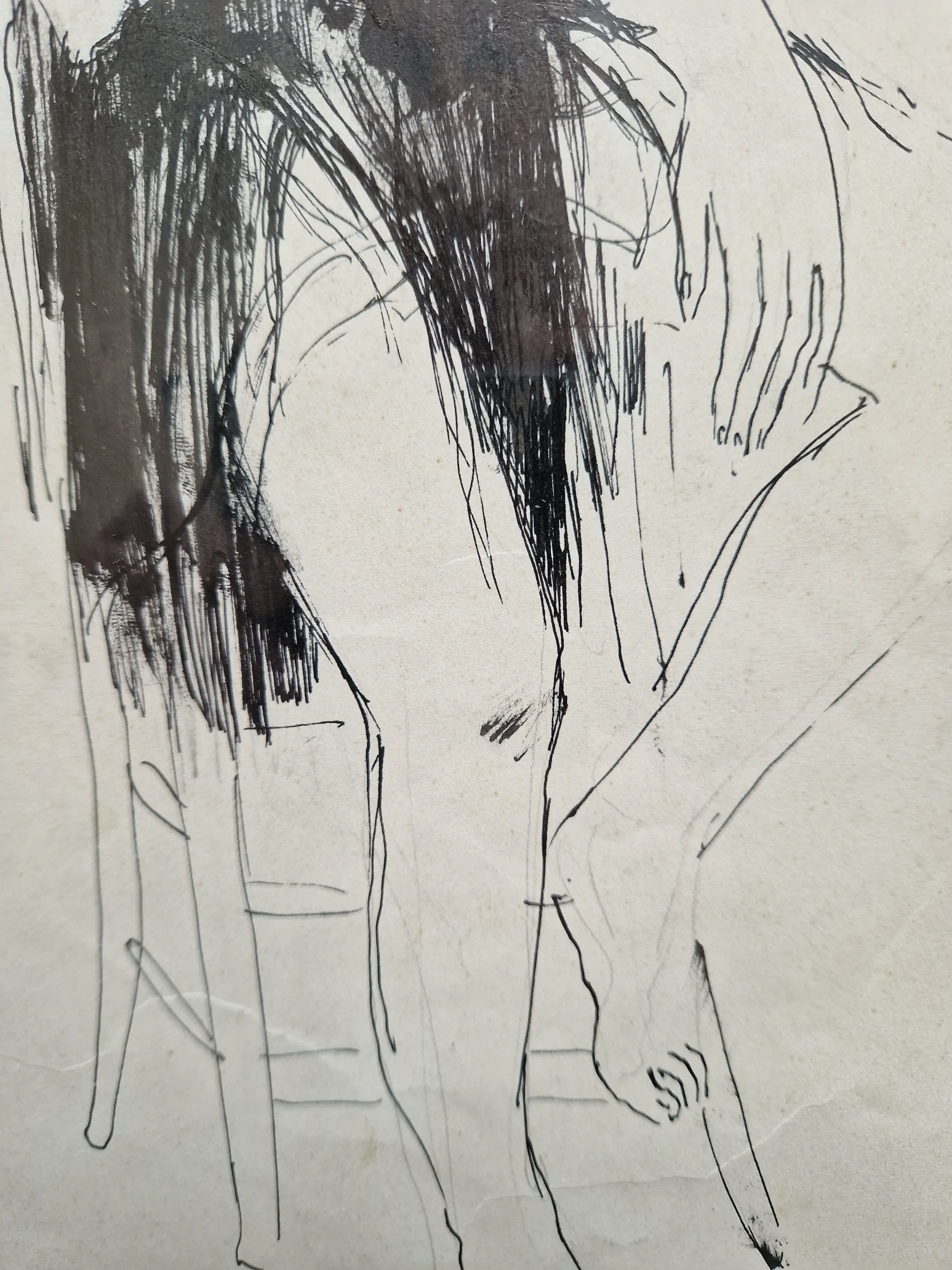 Karakteristieke pentekening van de Belgische kunstenaar Dries van den Broeck (1923-1995).