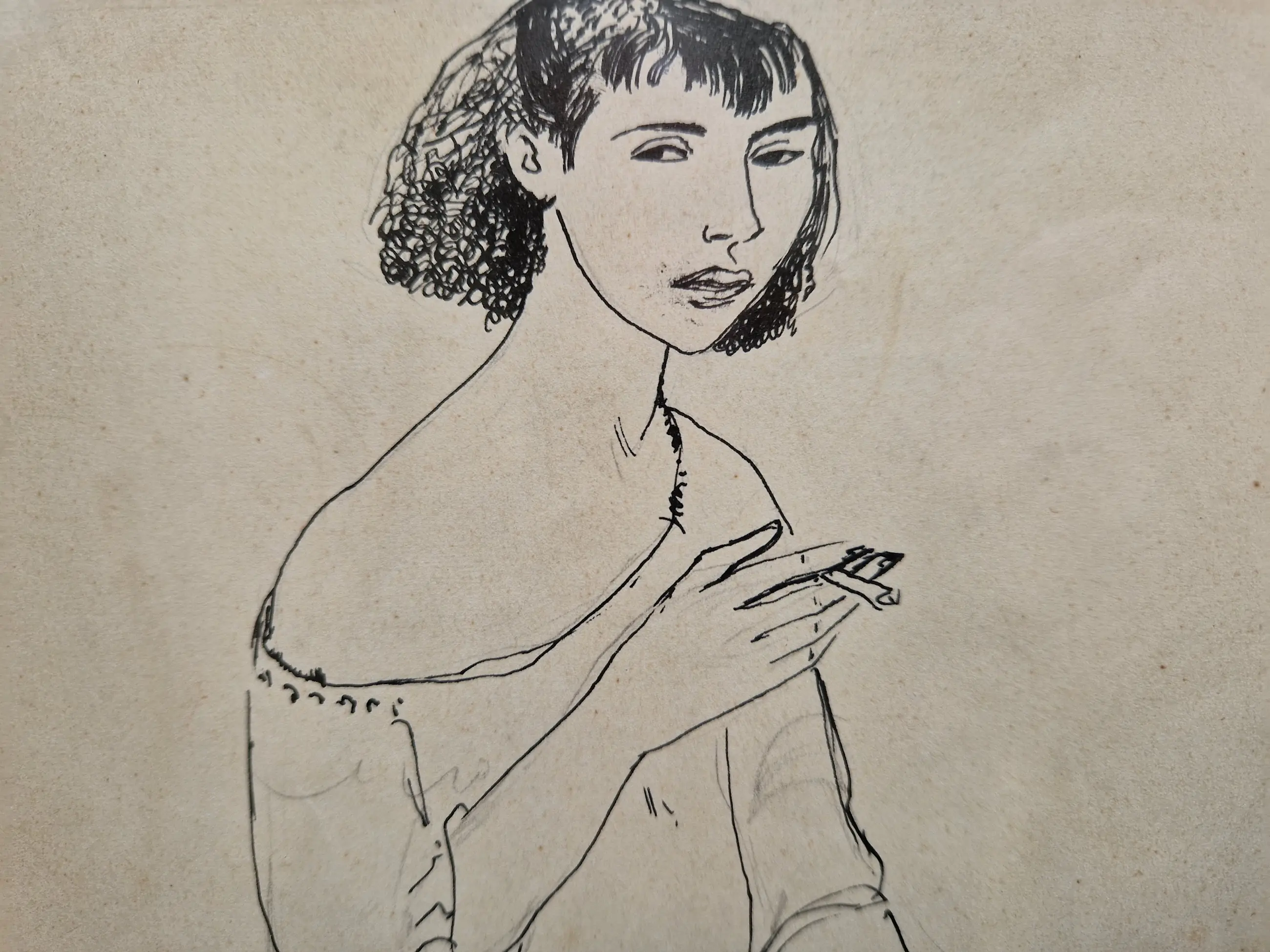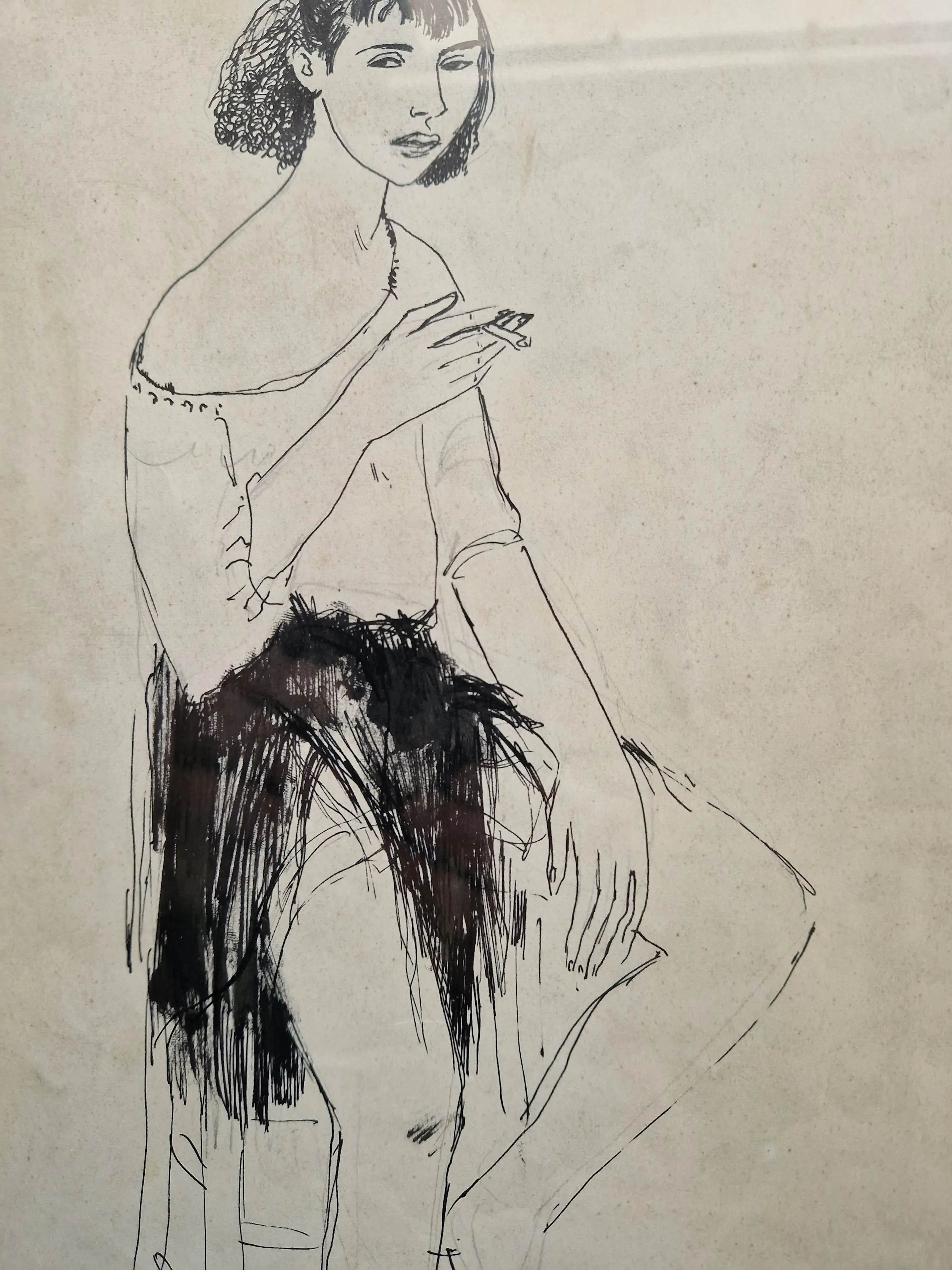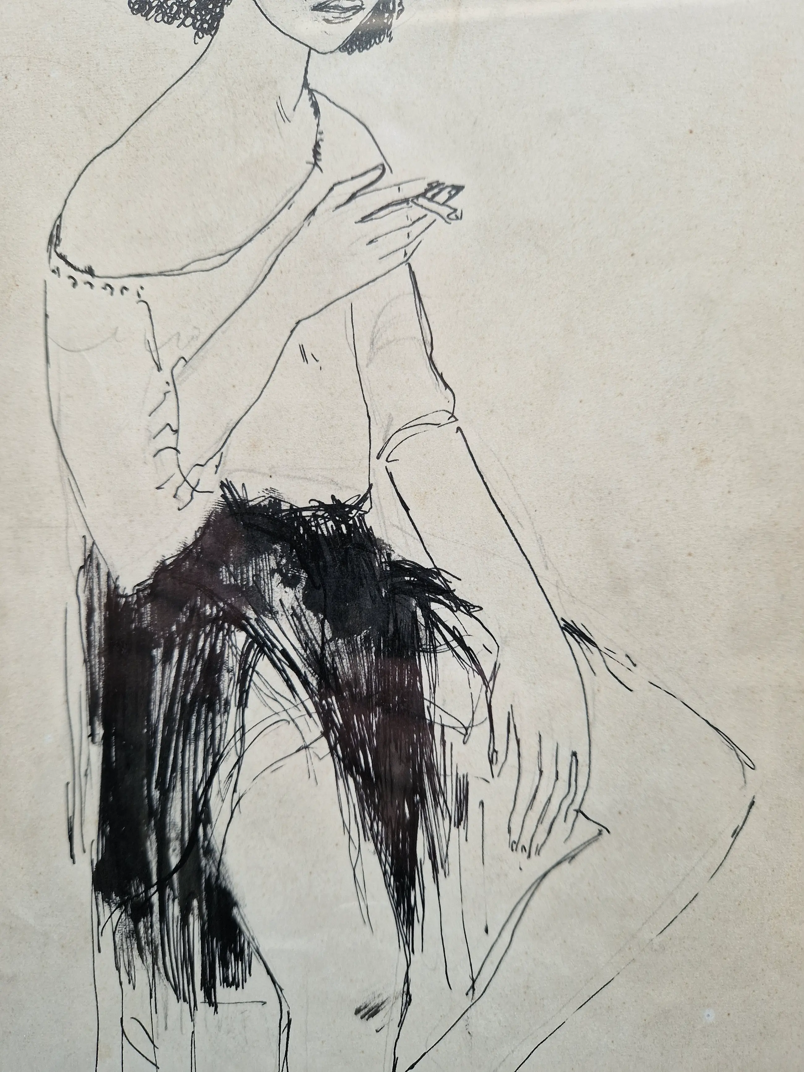 Karakteristieke pentekening van de Belgische kunstenaar Dries van den Broeck (1923-1995).
