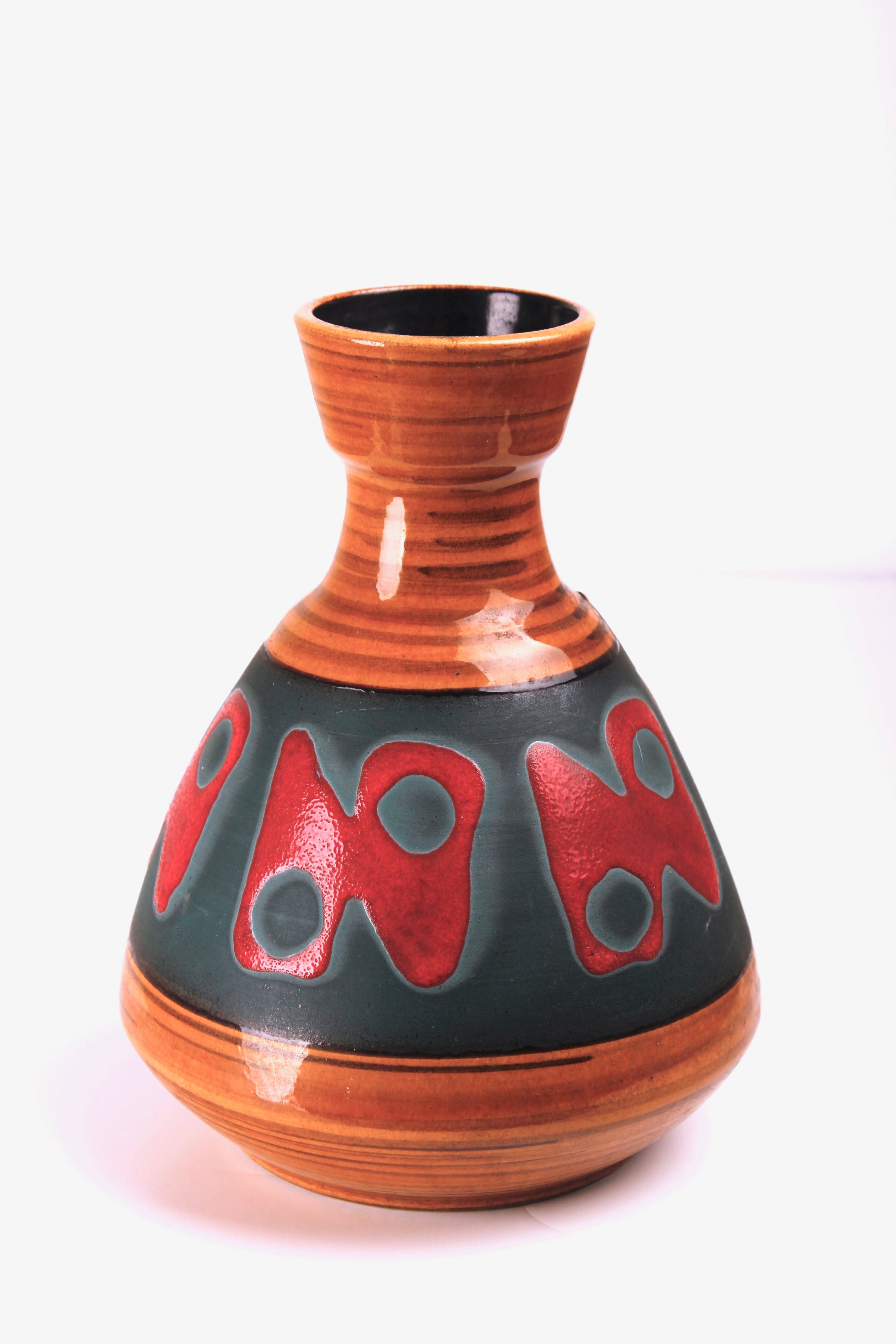 Decoratieve West Germany vaas met abstract polychroom decor vervaardigd door Dumbler & Breiden in de 1950's. De vaas is in prachtige vintage staat en staat uistekend in een modern maar ook in een meer vintage interieur. We verzenden internationaal met een extra veilige track & trace service