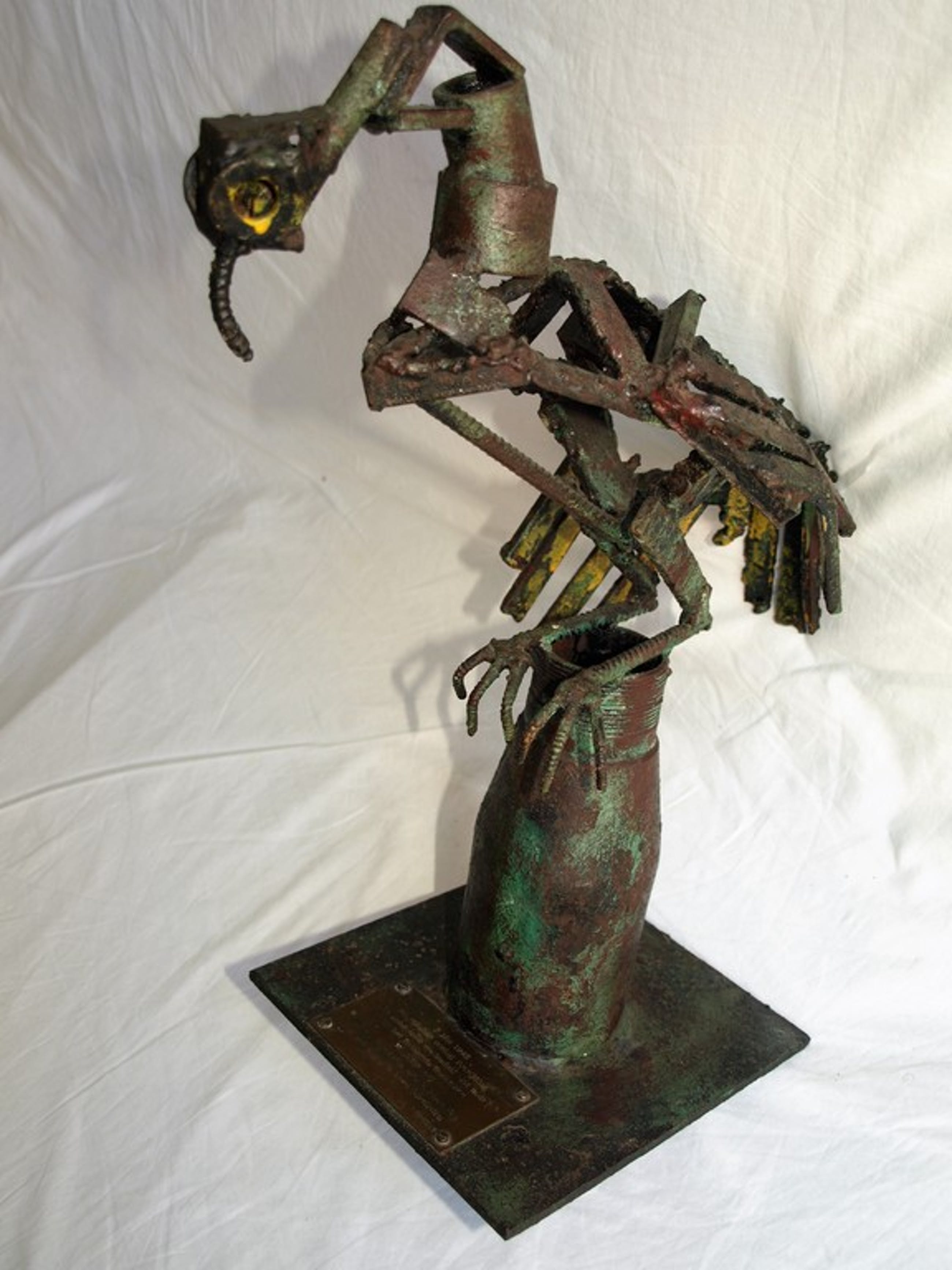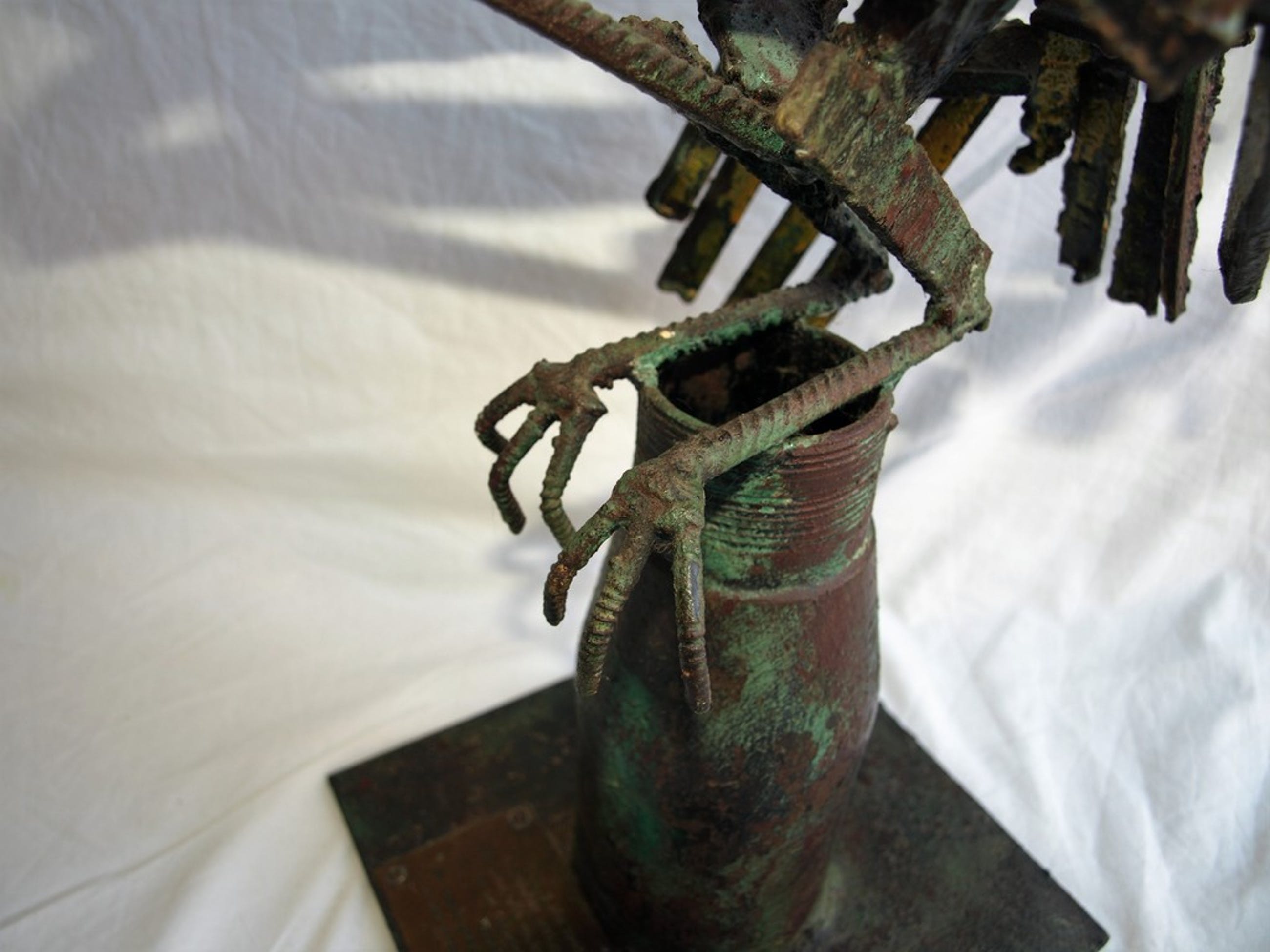 Afmetingen: Beeld, 45 x 42 x 20 cm (h x b x d). Voet, 20 x 22 cm. Kogelhuls, 20 x 9 cm (hoogte x doorsnede).