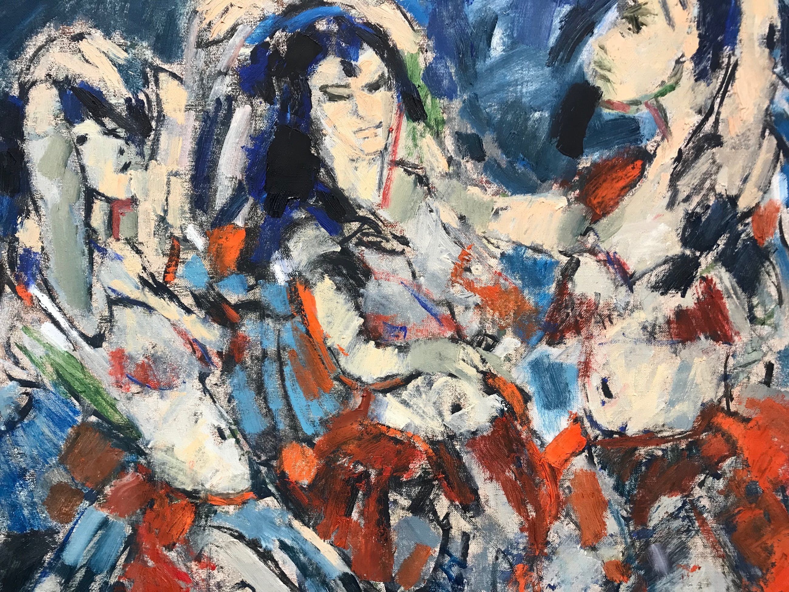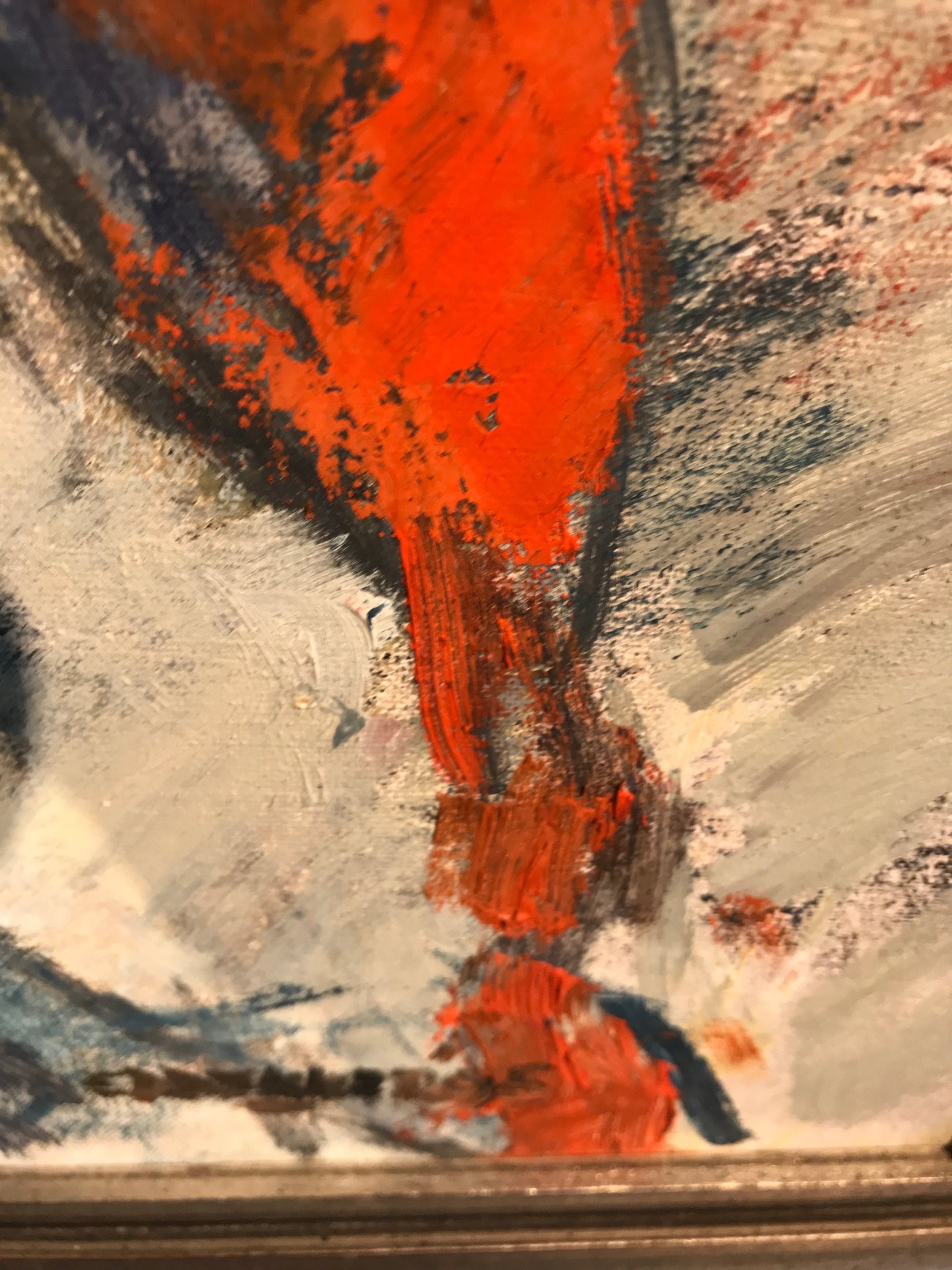 Krachtig, kleurrijk olieverfschilderij van Ed Dekker (Alkmaar, 1938). Dekker genoot zijn opleiding aan de Tilburgse Akademie voor Beeldende Kunsten. Hij is lid van het Kunstenaarscentrum Bergen (KCB). Dekker wordt vermeld in de Pieter Scheen van 1969 en de Jacobs van 1993. Zie ook de vermelding bij het RKD: https://rkd.nl/explore/artists/21498.