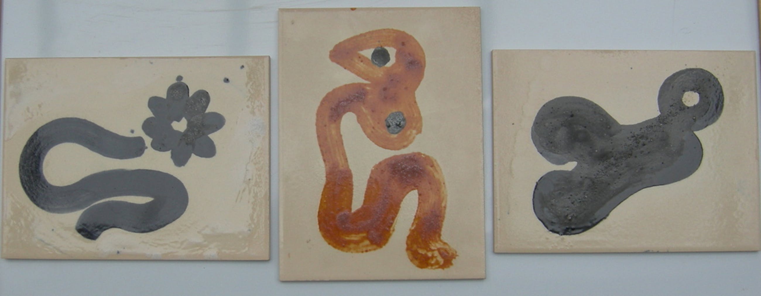 3 door Ed Dukkers (1923-1996) beschilderde tegels uit 1987