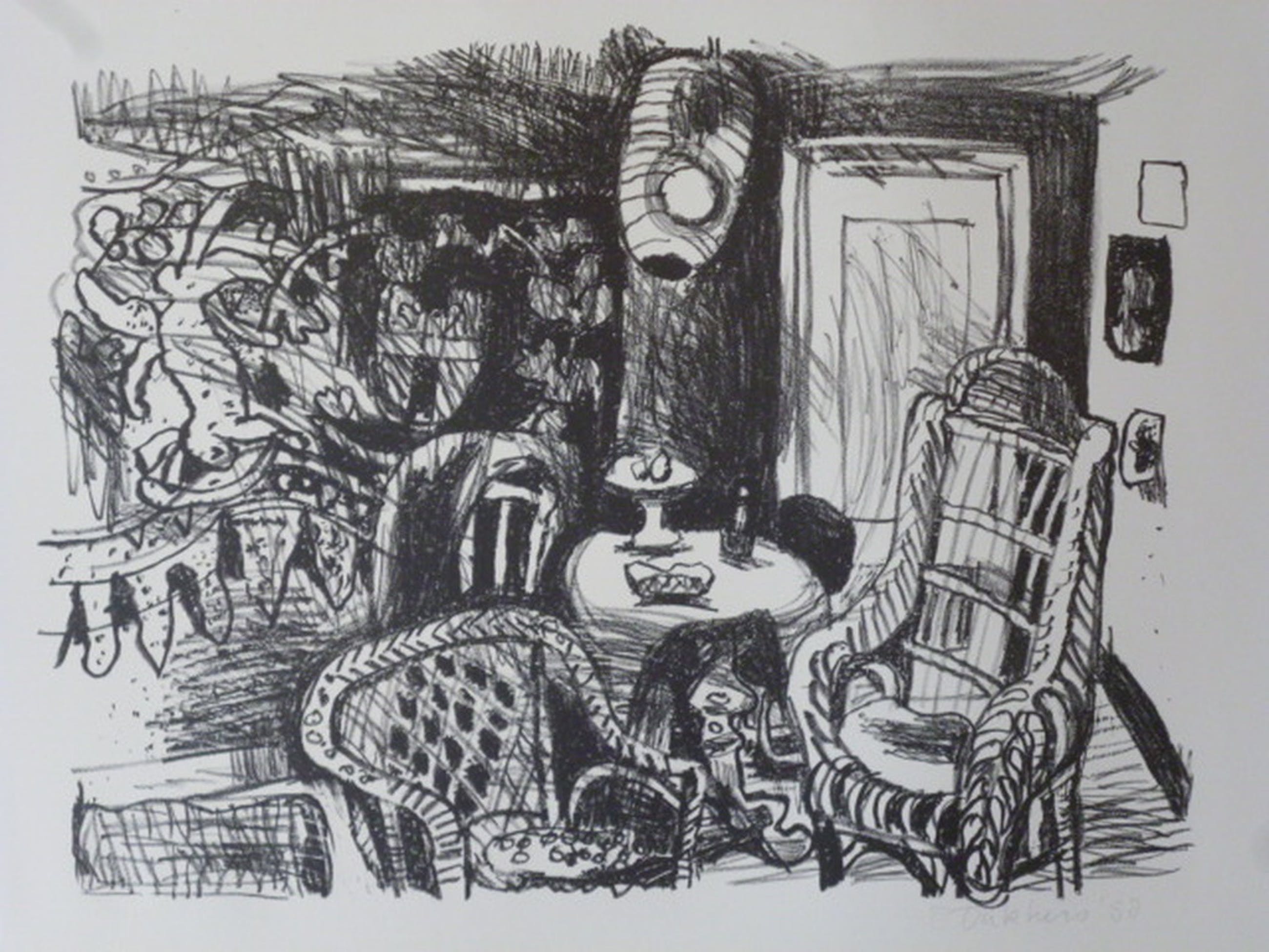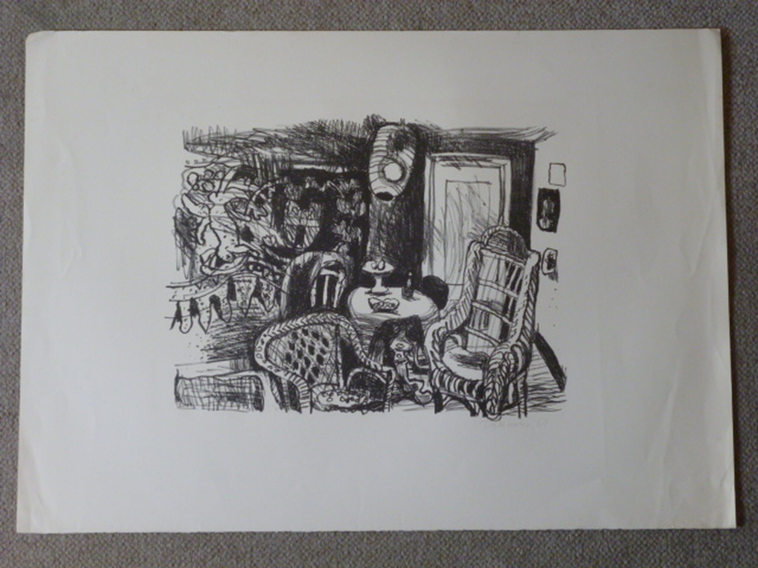 Litho uit 1958, potlood gesigneerd en gedateerd rechtsonder.