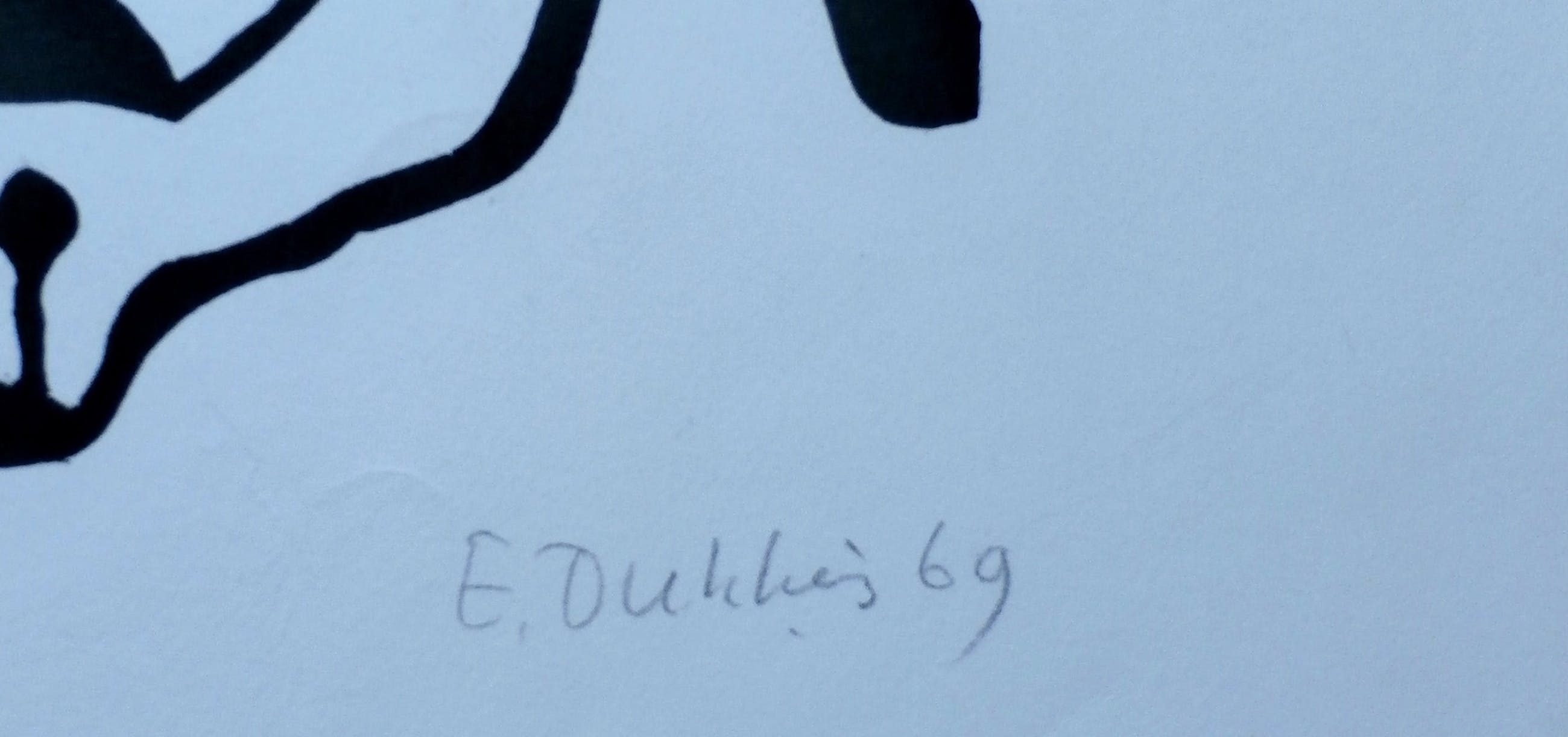 Litho van Ed Dukkers uit 1969. Titel: Marianne. Afmetingen blad: H67 x b52. Afmetingen voorstelling: H43 x b33 cm. Het werk is rechtsonder gesigneerd door de kunstenaar. De authenticiteit van het aangeboden werk wordt voor 100% gegarandeerd. Een certificaat van echtheid kan, op aanvraag, worden meegestuurd. Conditie: in goede staat. Er zitten wat kleine kreukjes in de witte rand.