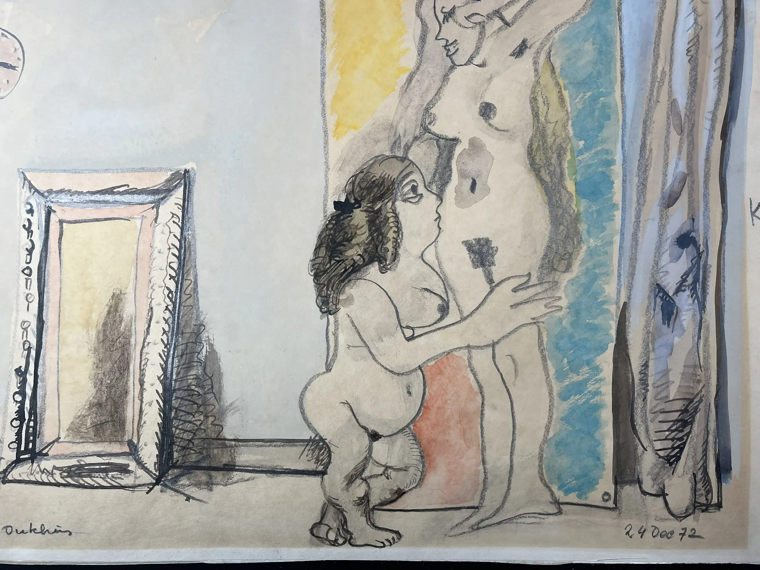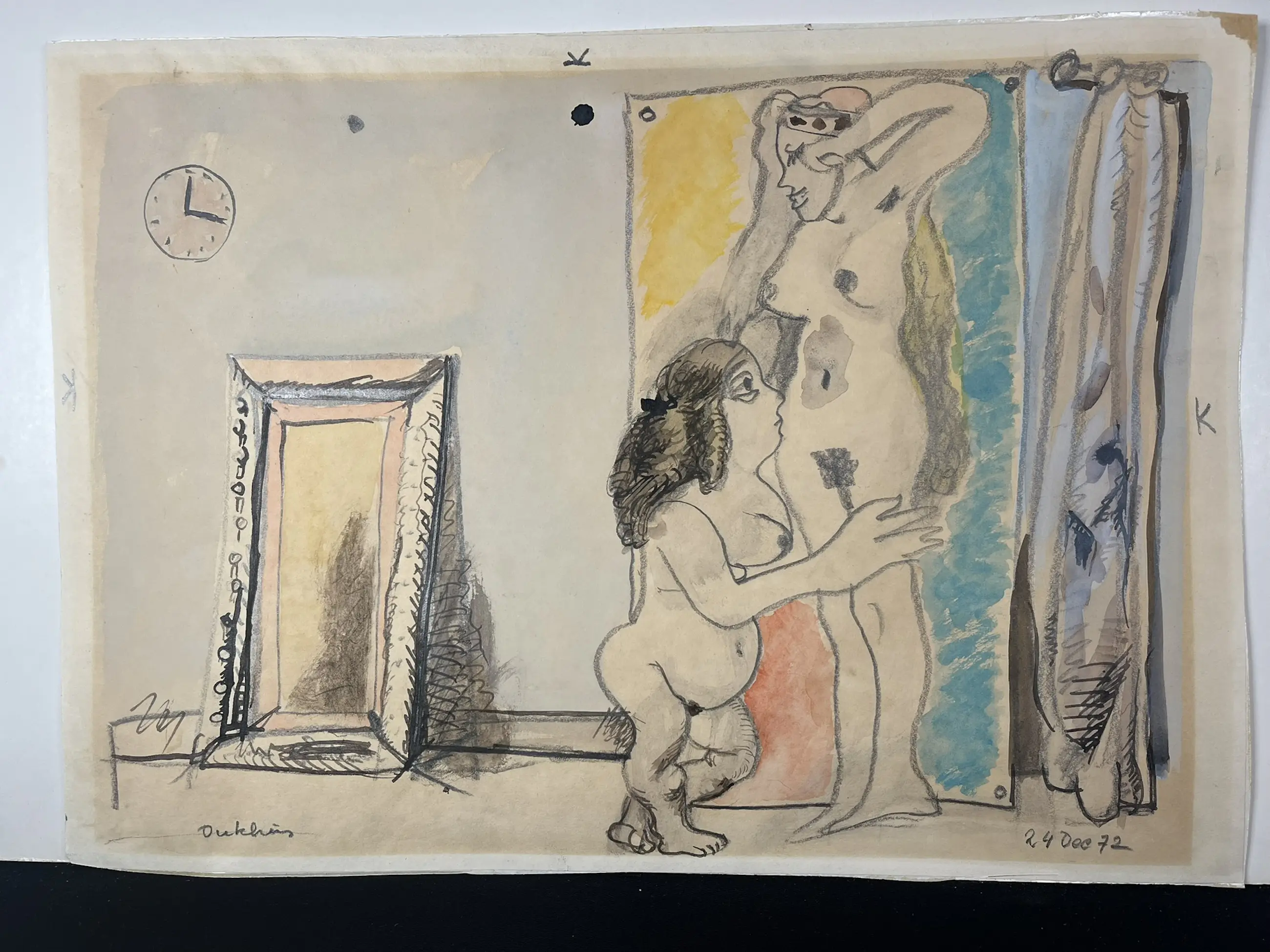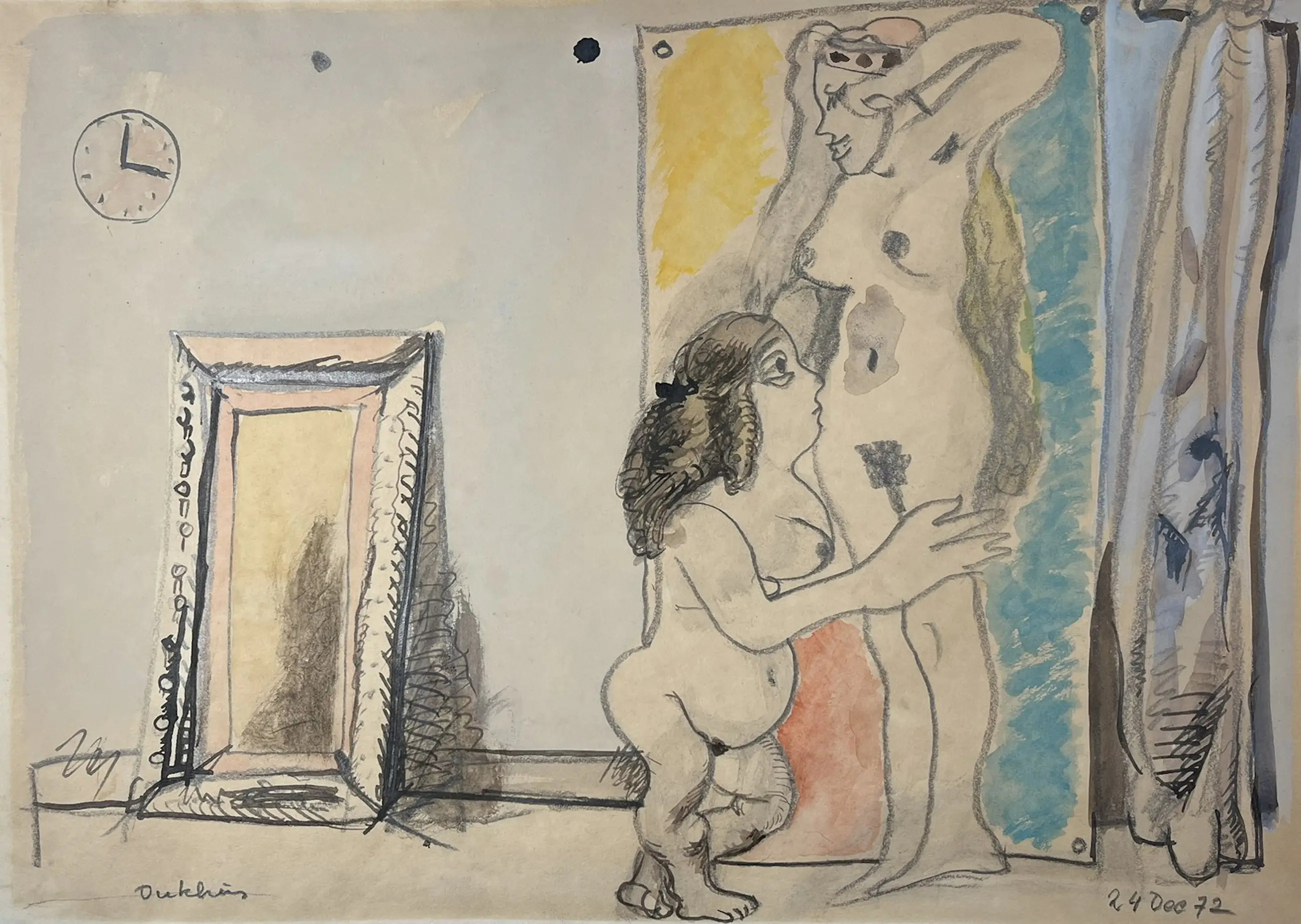 Zoals bij velen in die tijd zijn ook bij Dukkers expressionistische tendensen waar te nemen, maar hij blijkt zijn doelen al snel anders te stellen. Literaire, surrealistische thema’s hebben zijn belangstelling, waarin dood, erotiek en rituelen nauw met elkaar verweven zijn.