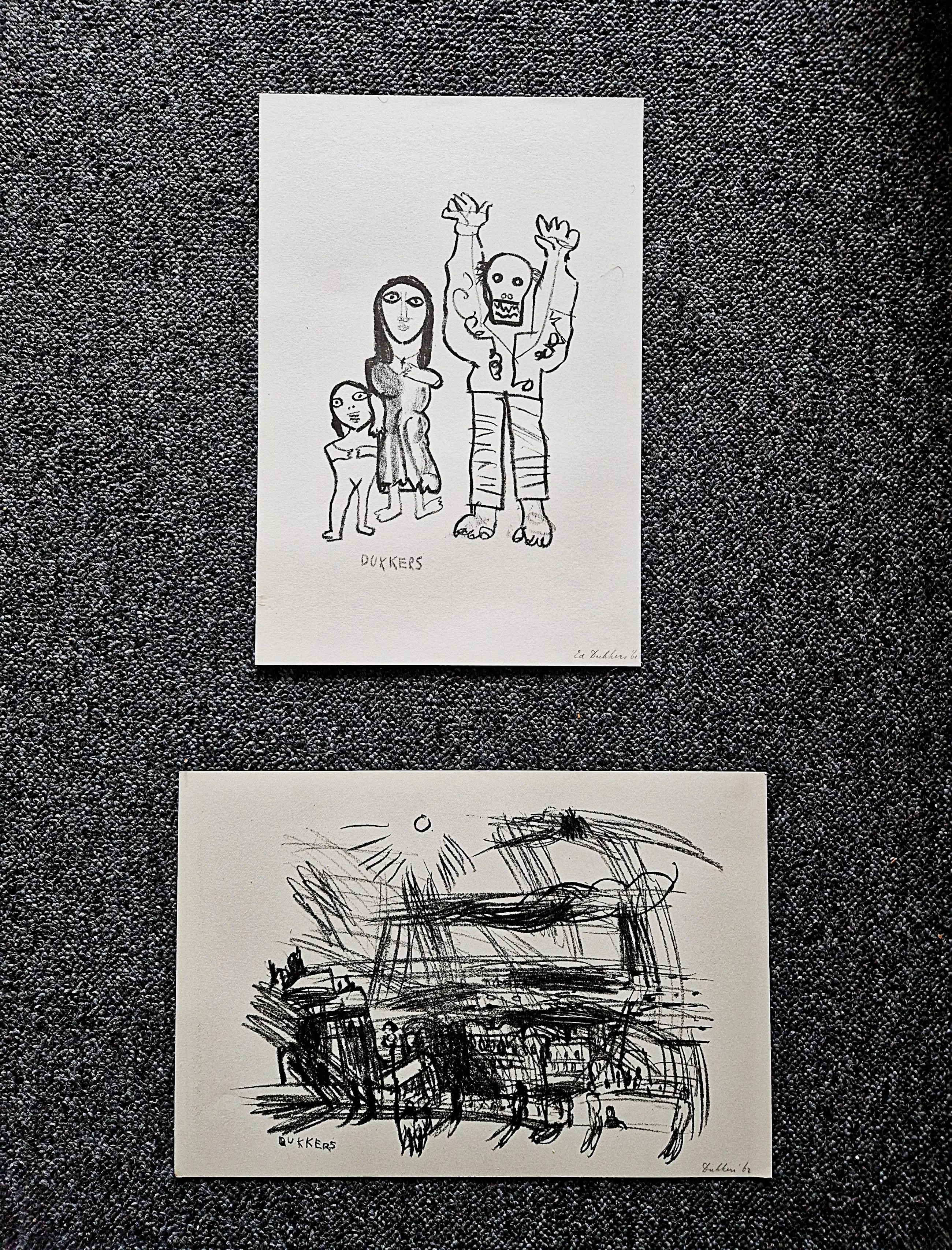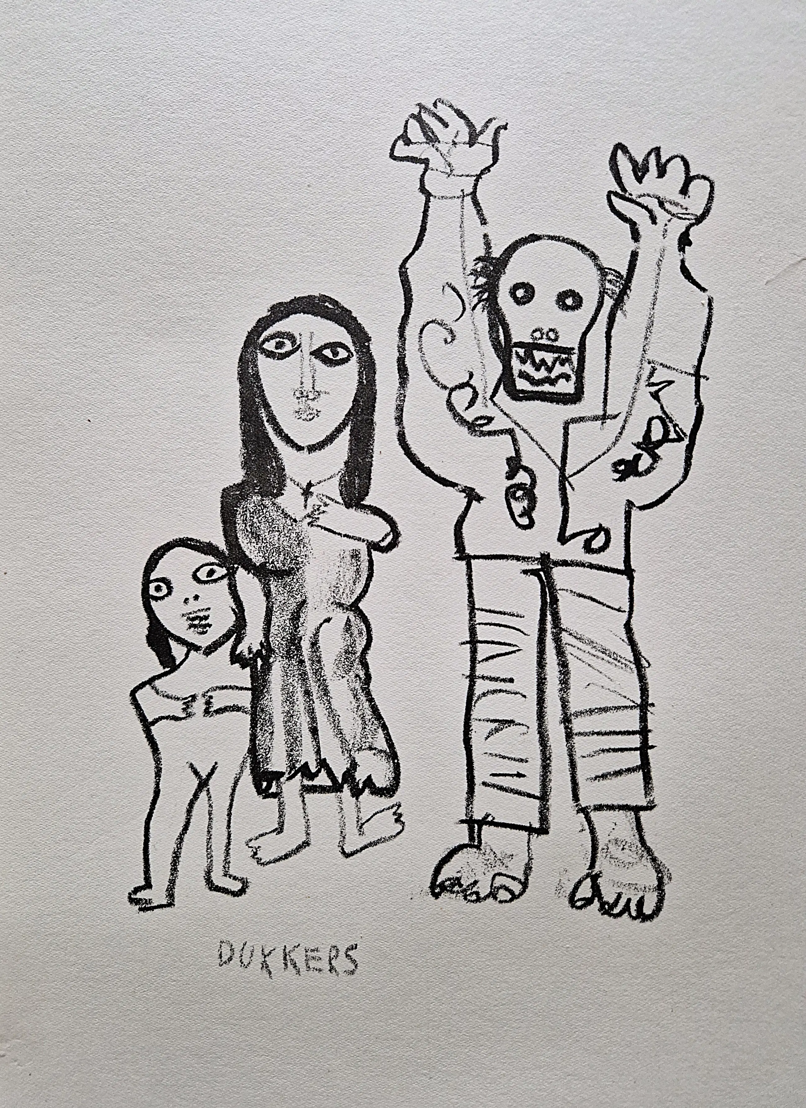 Zoals bij velen in die tijd zijn ook bij Dukkers expressionistische tendensen waar te nemen, maar hij blijkt zijn doelen al snel anders te stellen. Literaire, surrealistische thema’s hebben zijn belangstelling, waarin dood, erotiek en rituelen nauw met elkaar verweven zijn.