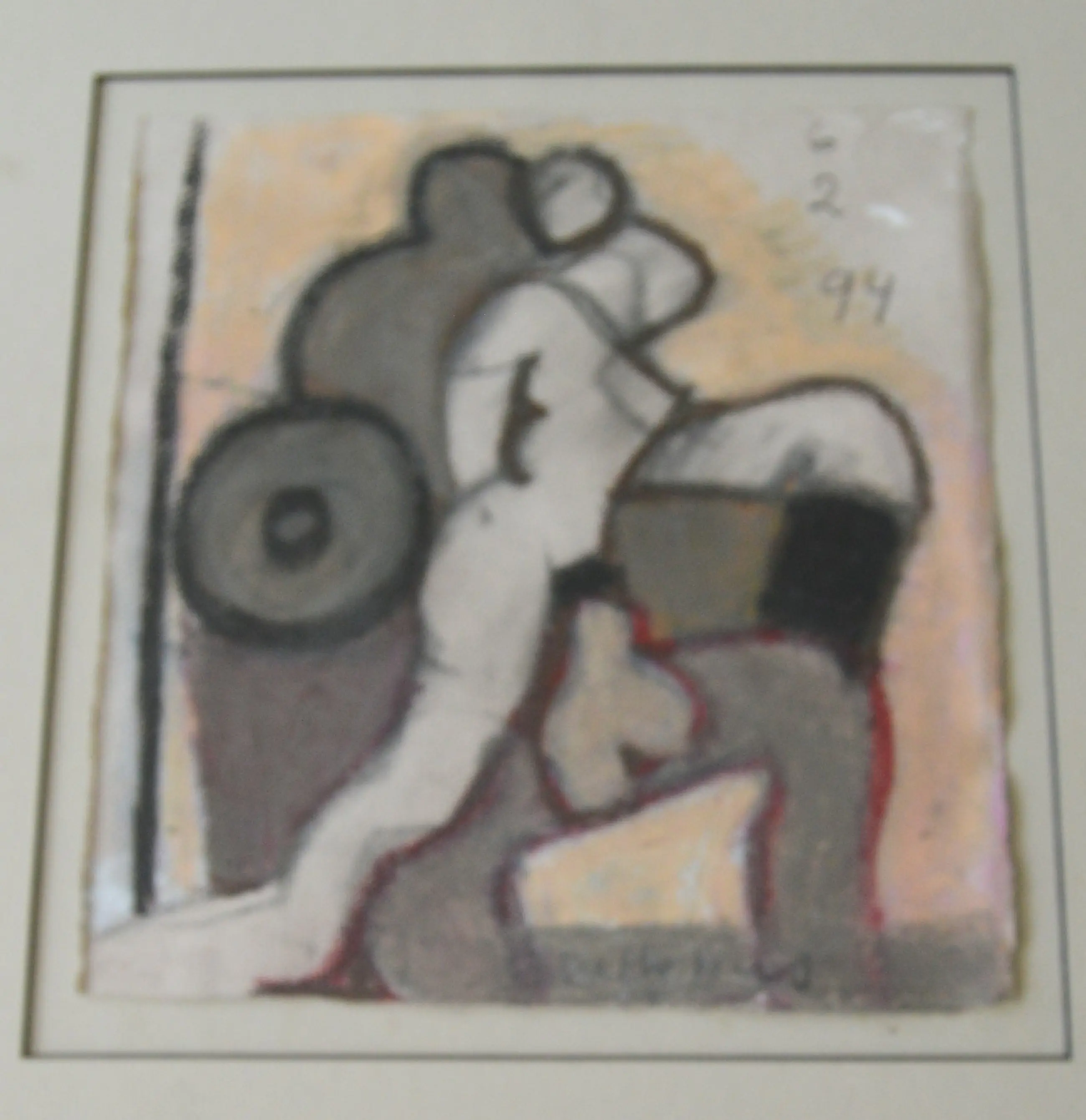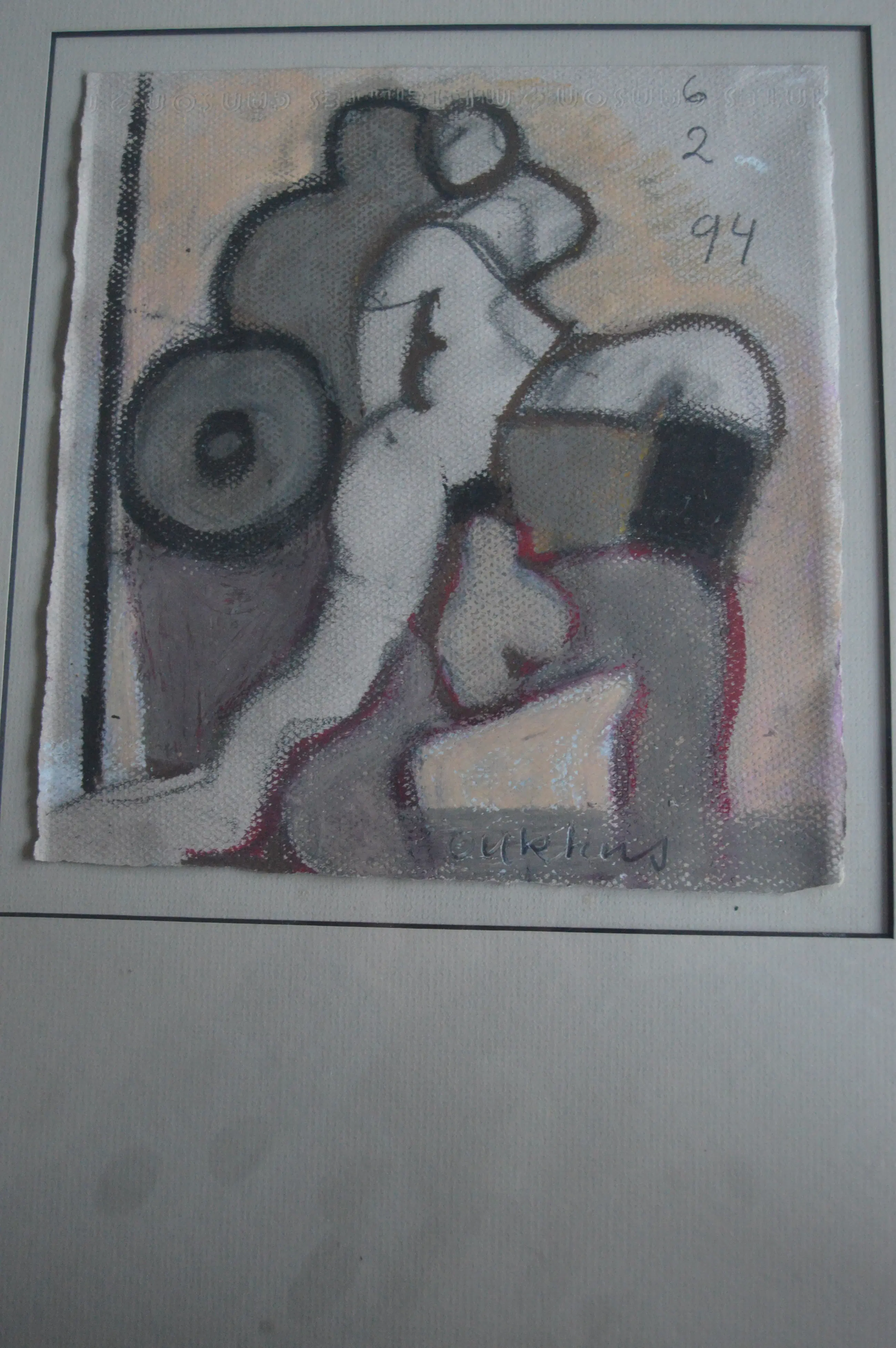 Expressionistisch werkje door Ed Dukkers. Vervaardigd in 1994. Ingelijst in pas-partout achter glas. Prima conditie.