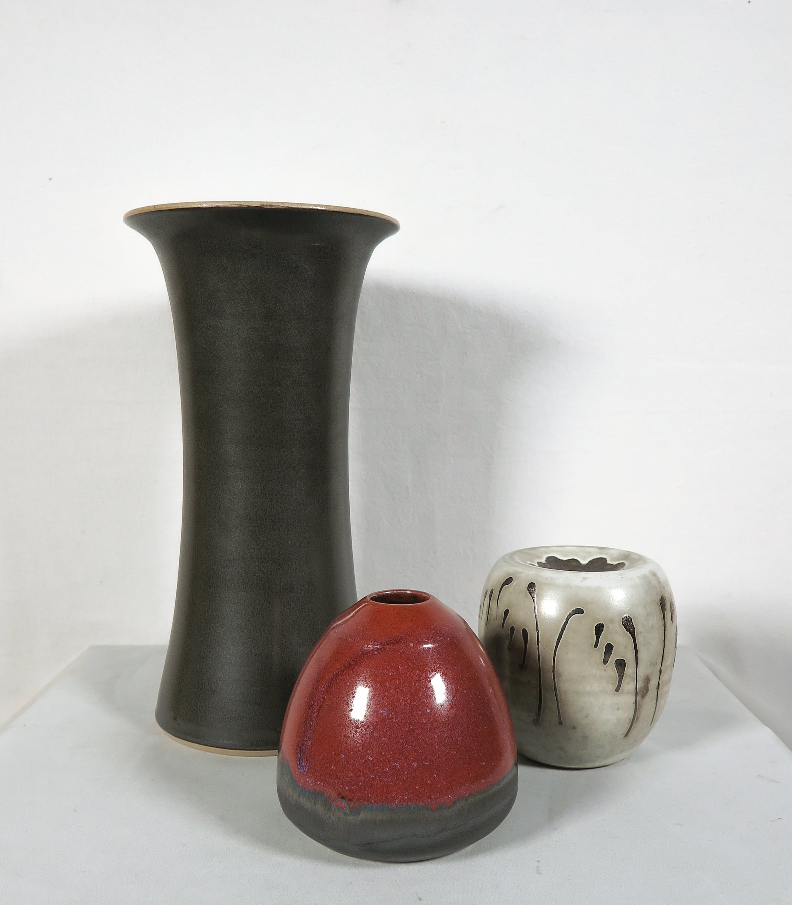 Lot van drie vazen, alle drie zijn aan de onderzijde gesigneerd.