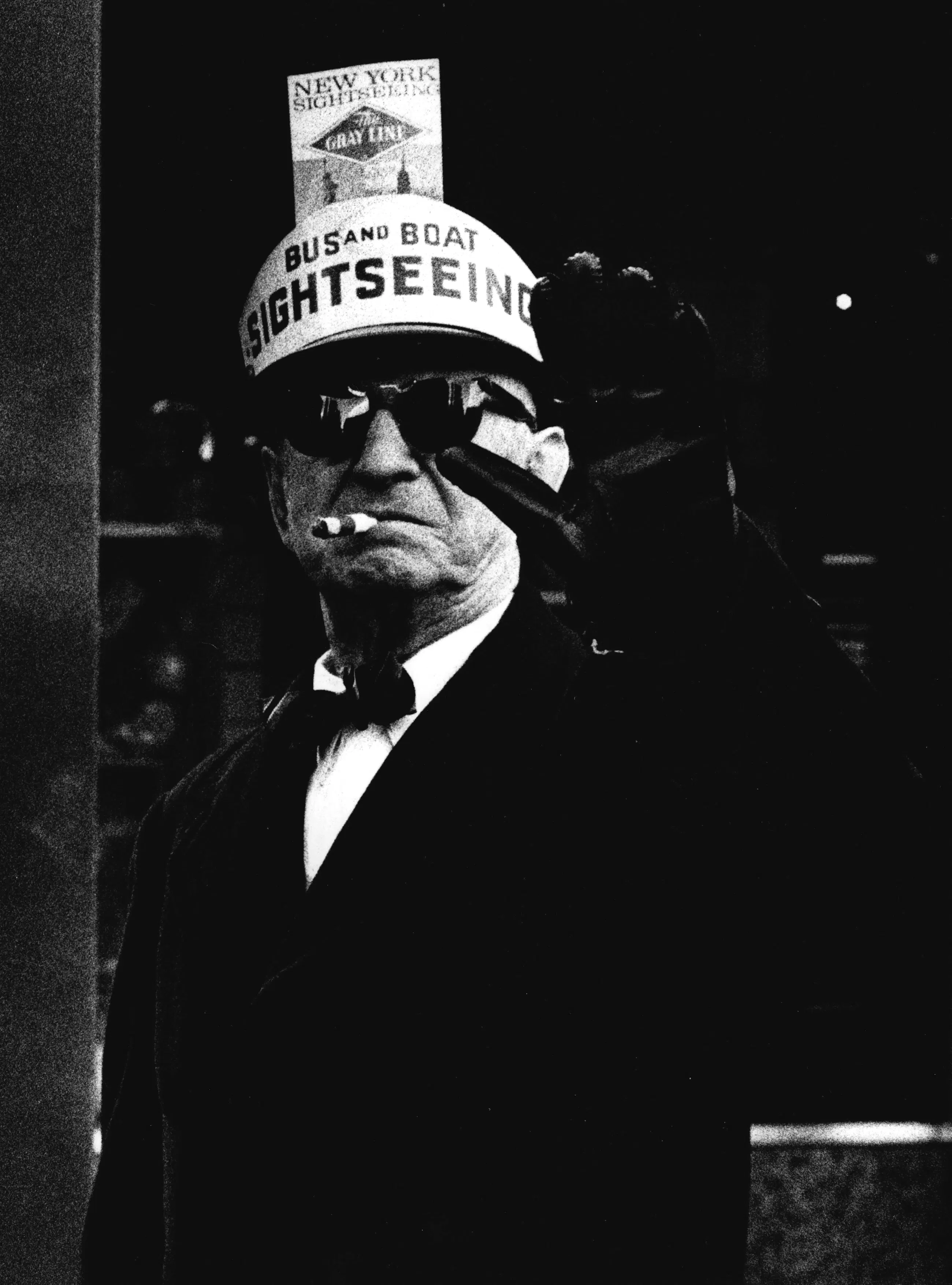 Prachtig portret van een New Yorkse gids door Eddy Posthuma de Boer. Hop-on, hop-off, Yankee-style! Gelatinezilverdruk, met studiostempel achterop. In zeer goede conditie.