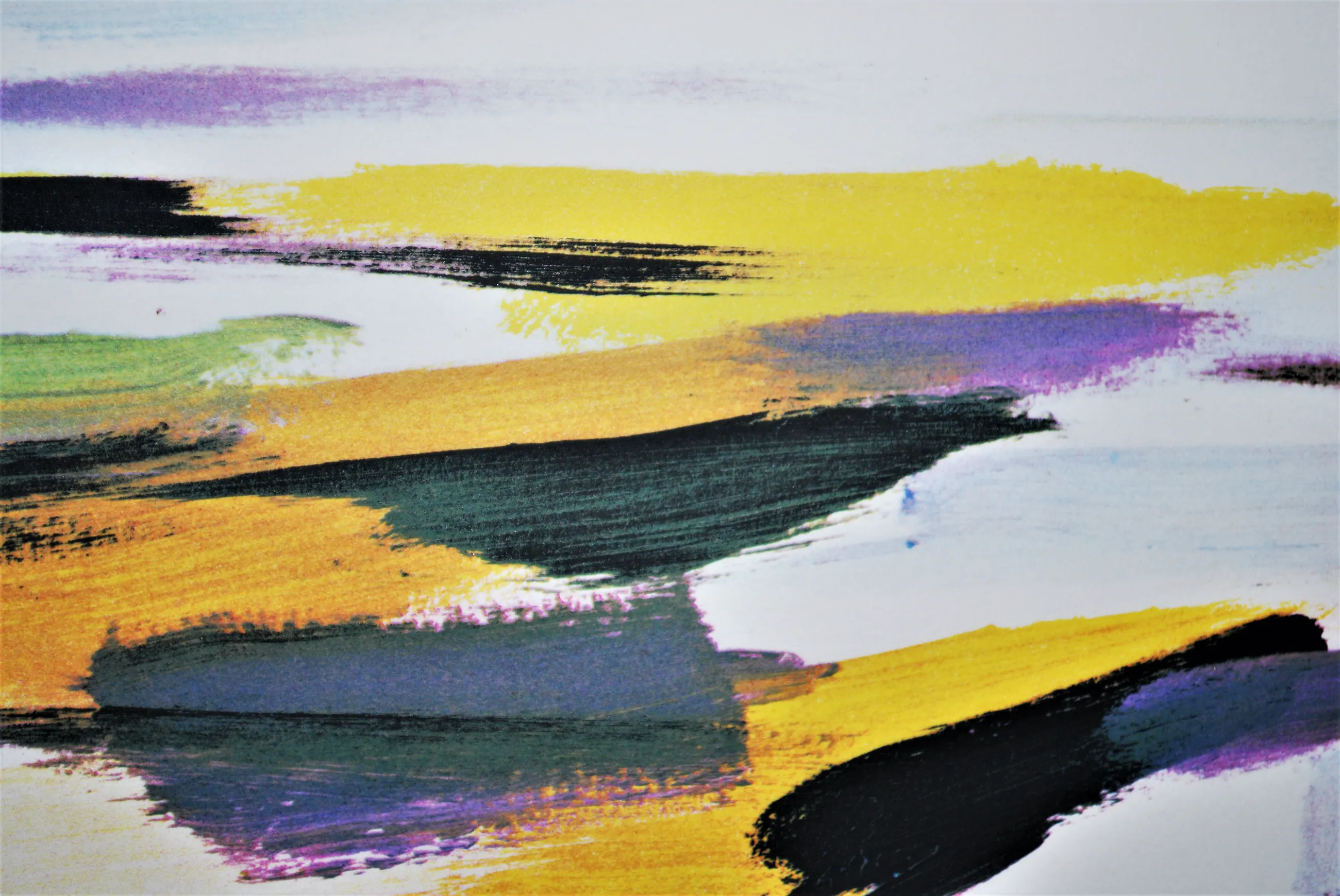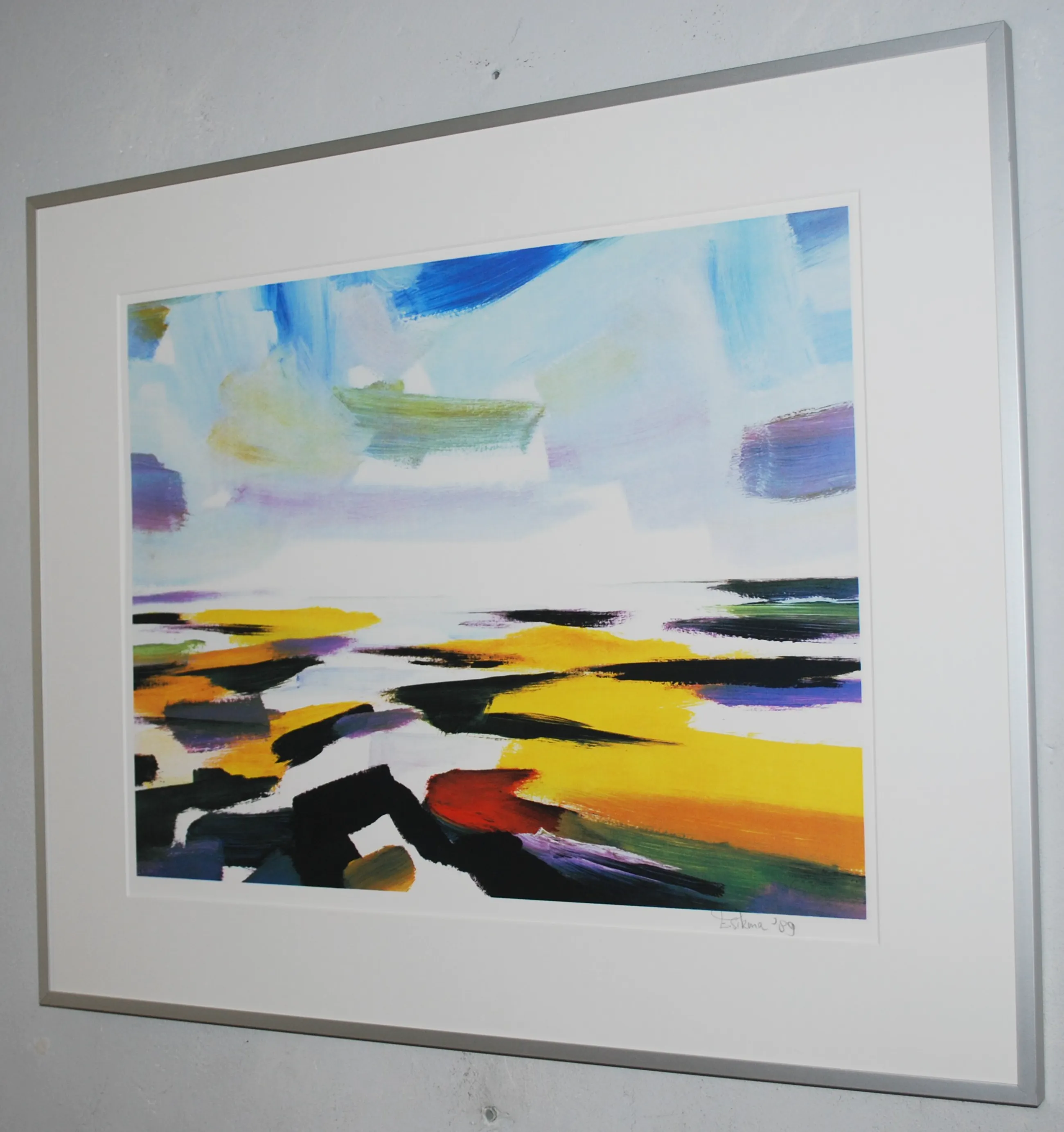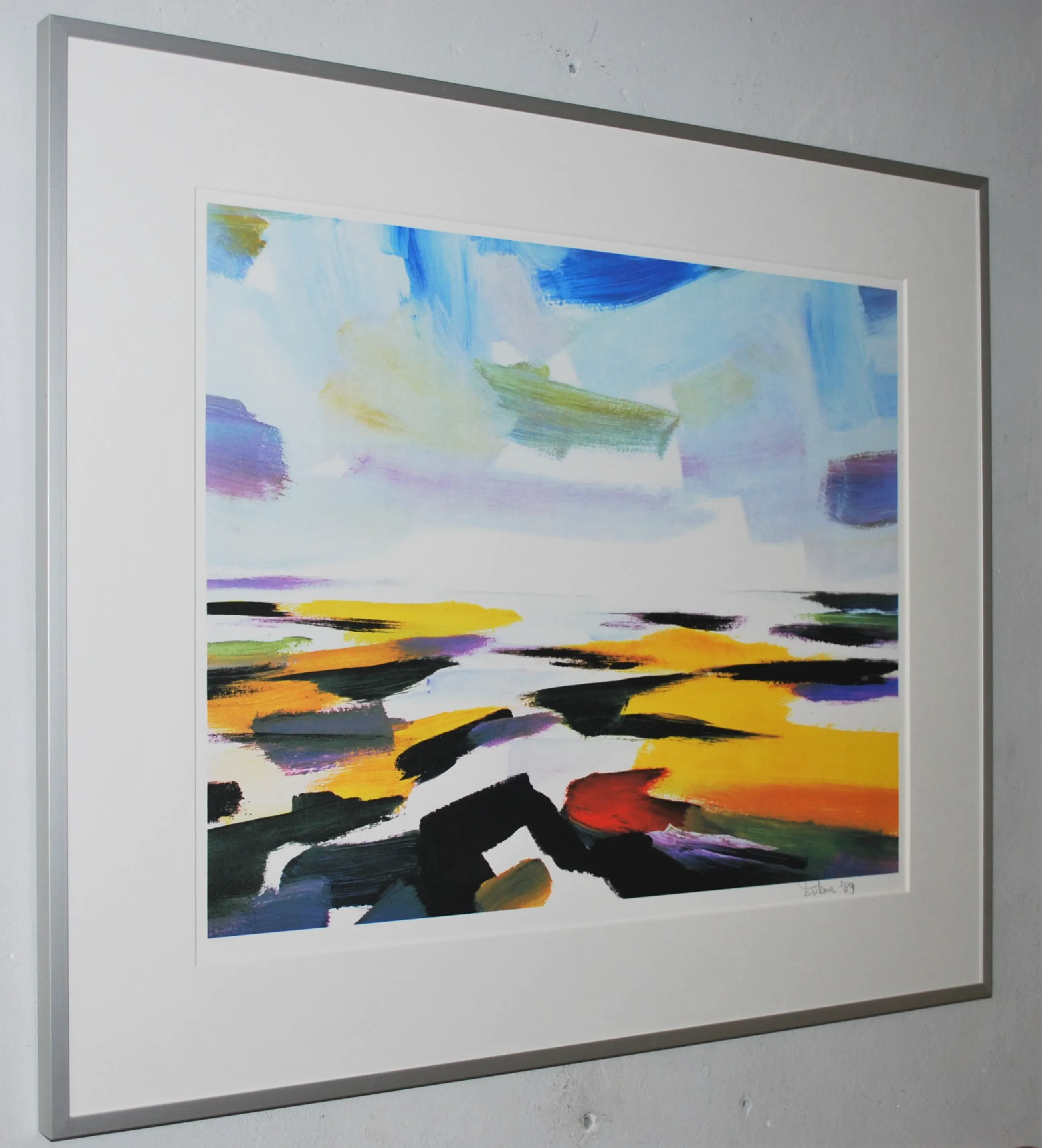 Het blad is los geplaatst met 2 plakkers achter passepartout.
