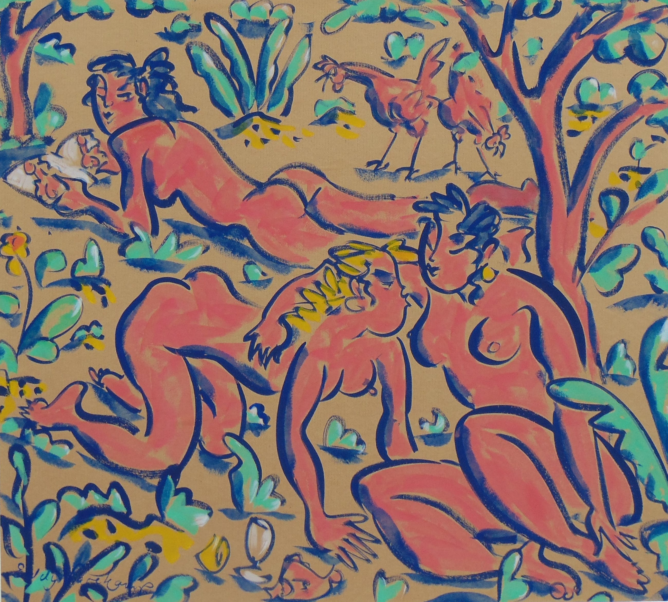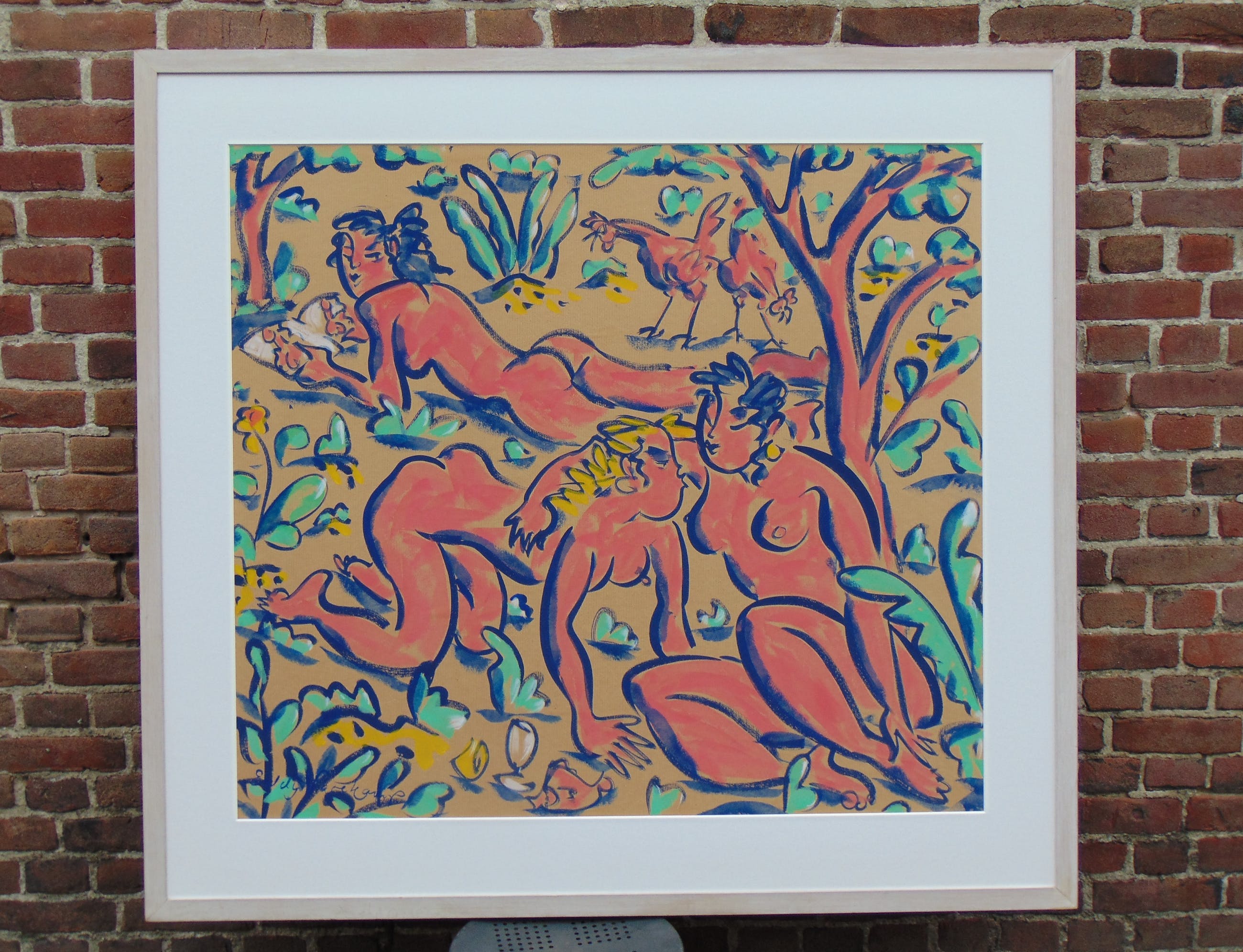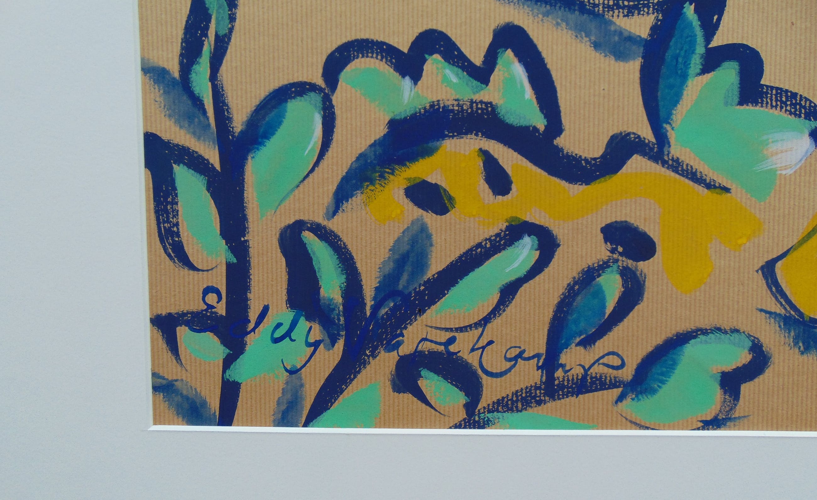 Dit originele werk is links onder gesigneerd. Het werk is ingelijst met passe-partout en zit achter glas.