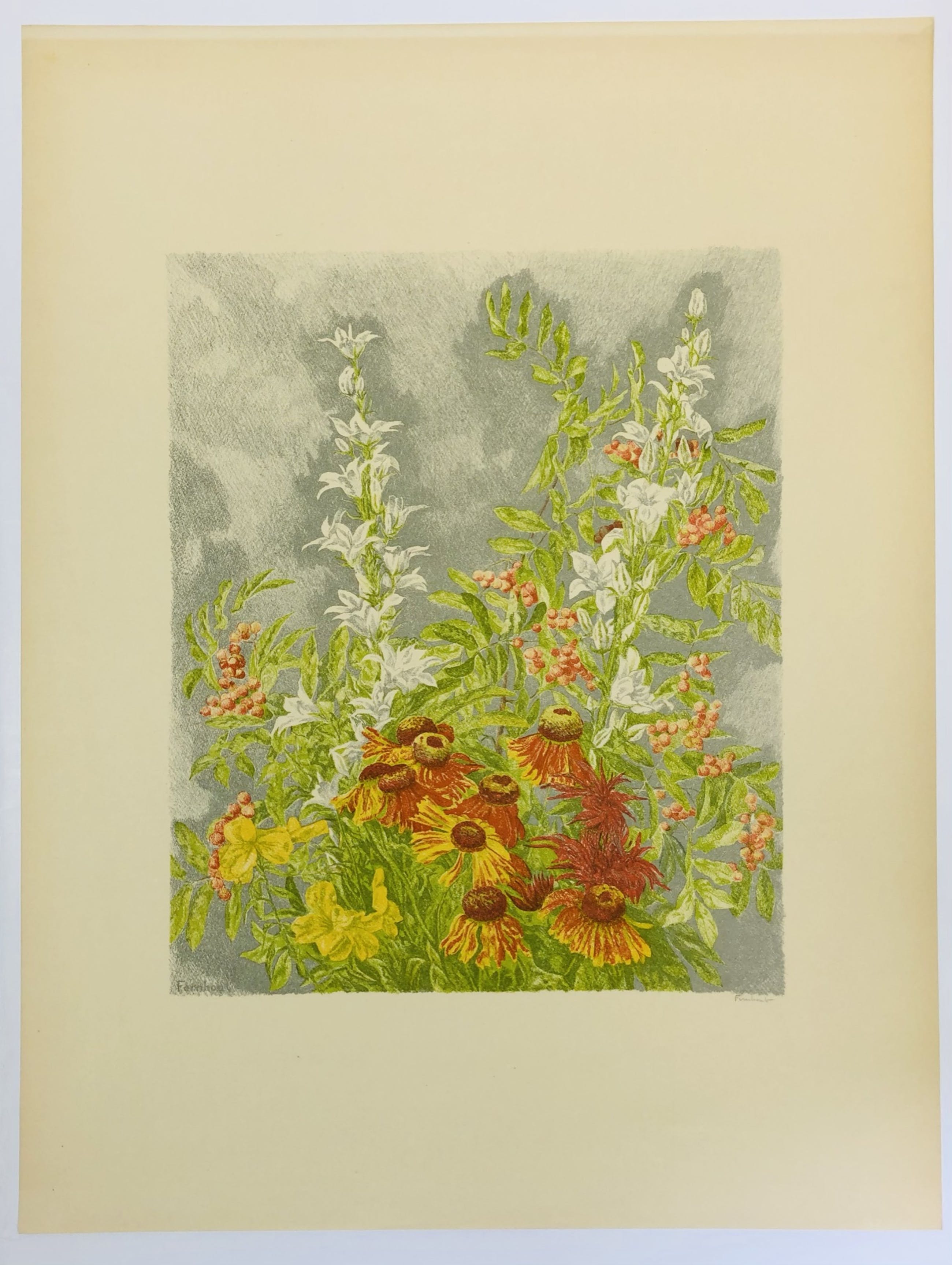 Fraaie litho van Edgar Fernhout, zoon van Charley Toorop. De litho is zowel in de steen als met potlood gesigneerd. Aan de kleur van het papier te zien is het werk in de loop van de tijd iets verkleurd maar omdat dit egaal is gebeurd is de litho uitstekend toonbaar. Met een nieuw passe partout en een lijst zal dit werk niet misstaan.