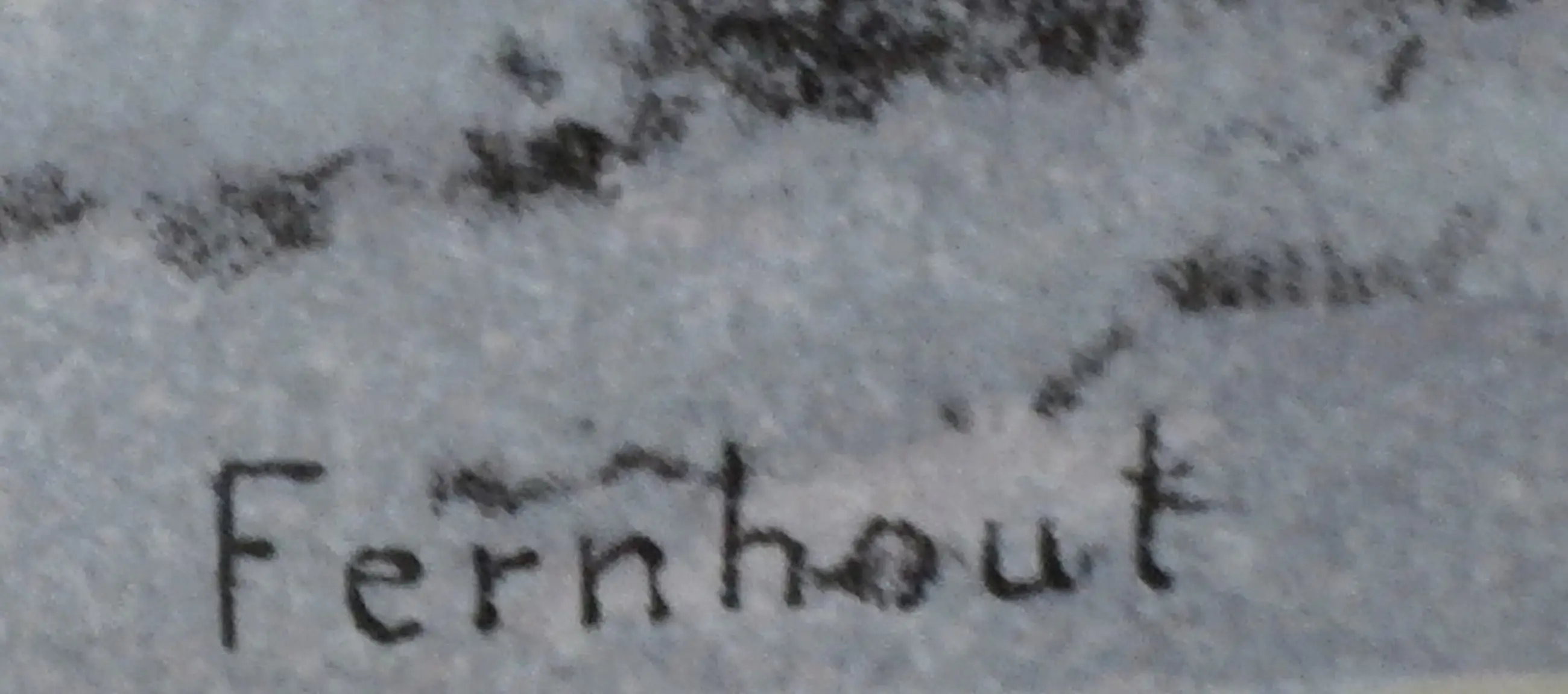 Conditie: Het werk is in goede staat. Er zit wat verkleuring langs de witte rand om het werk heen van een vorige inlijsting. Goed ingelijst valt dit in de lijst/onder de passepartout.