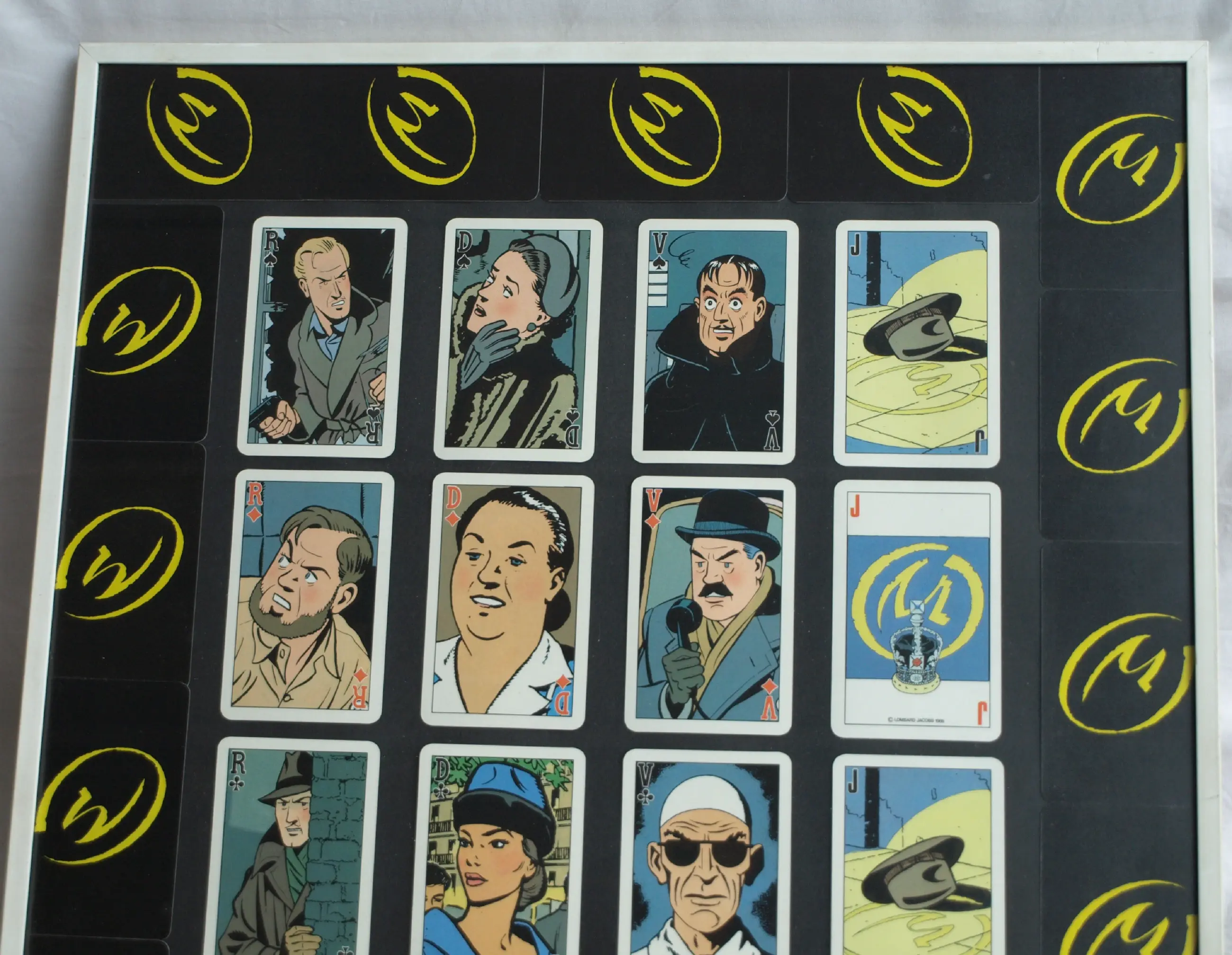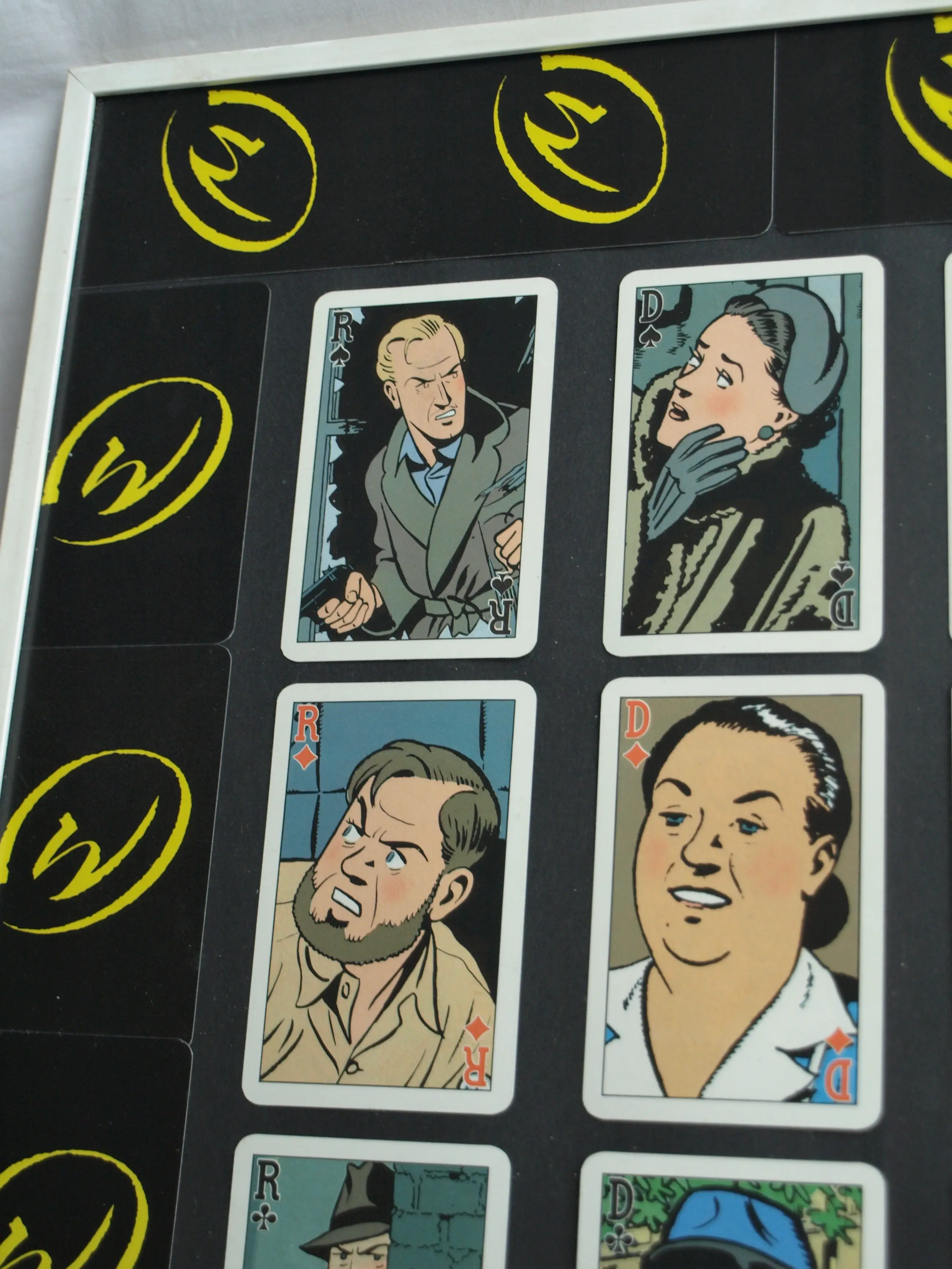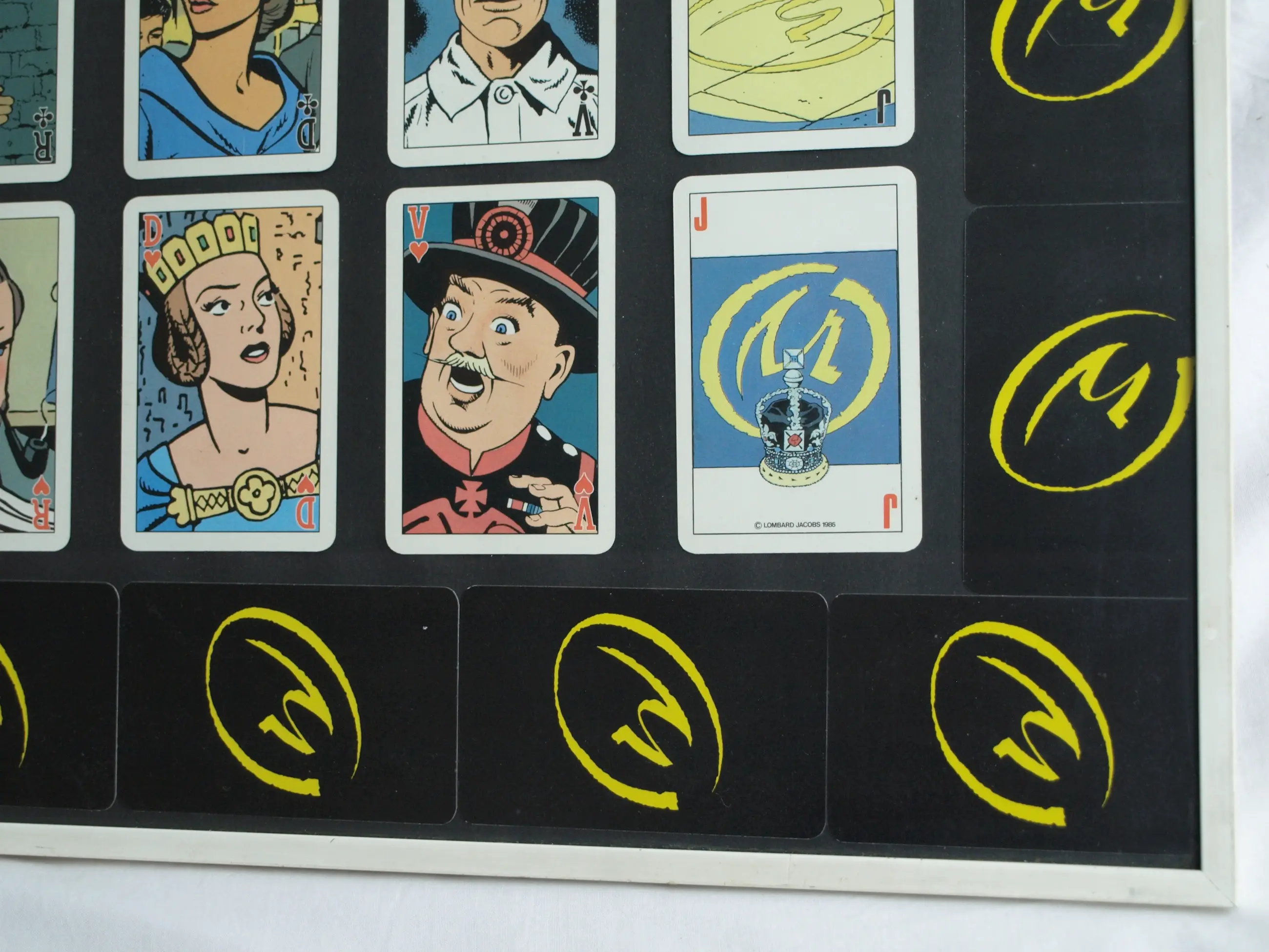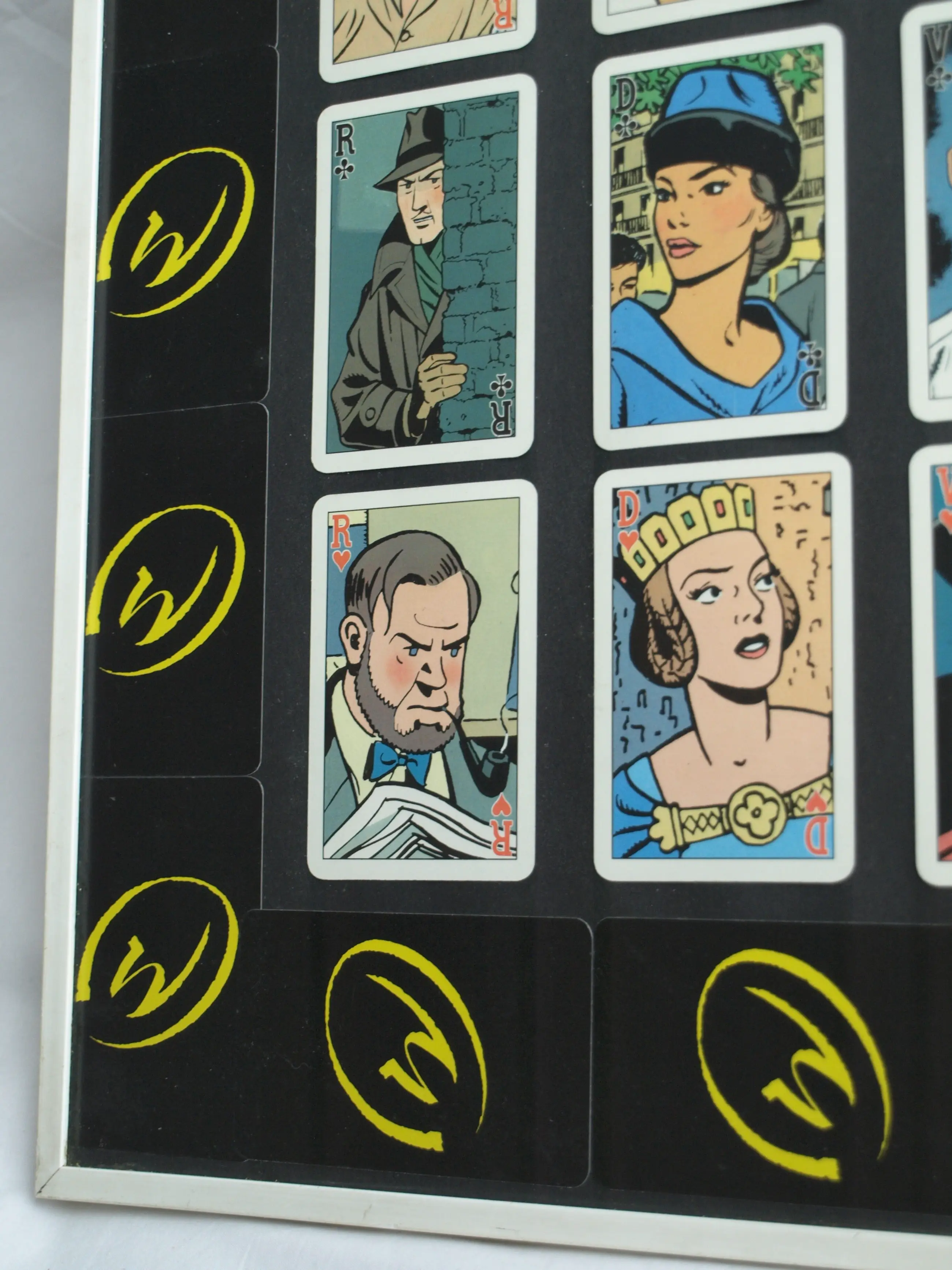 1985 met ingelijste (speel)kaarten met voorstellingen uit het ‘Stripalbum