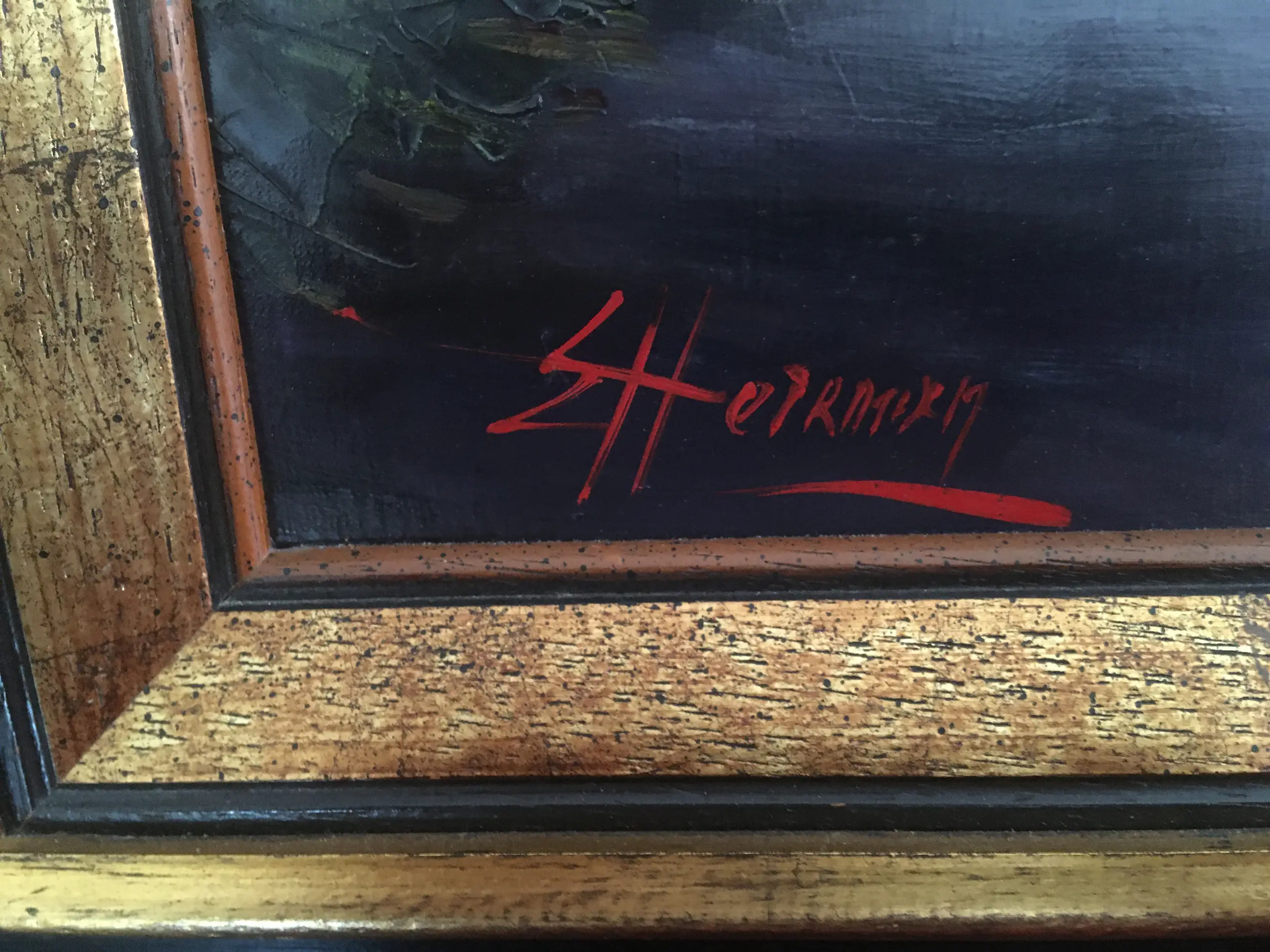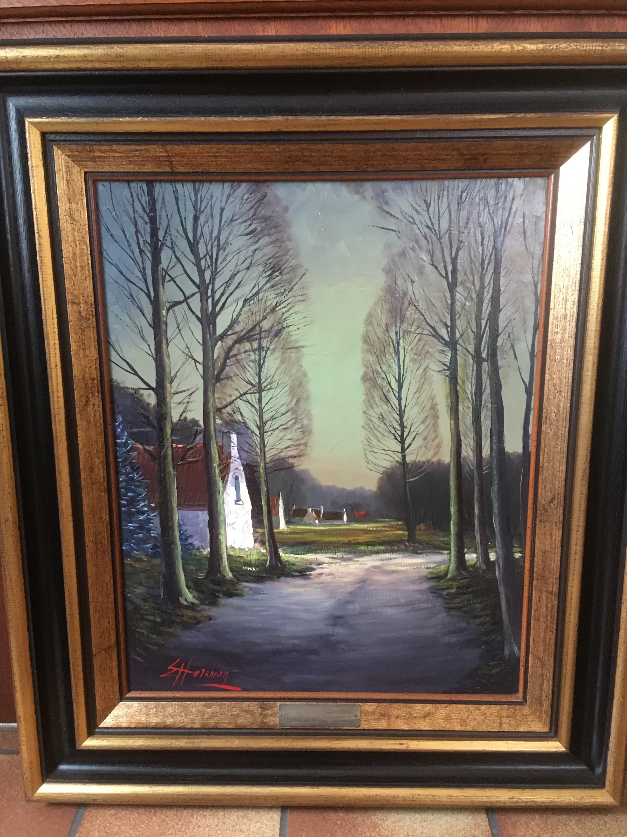 Olieverfschilderij van Wase horlogemaker (Heirmanklok) en kunstschilder Edgar Heirman. Prachtige lijst, in perfecte staat.
