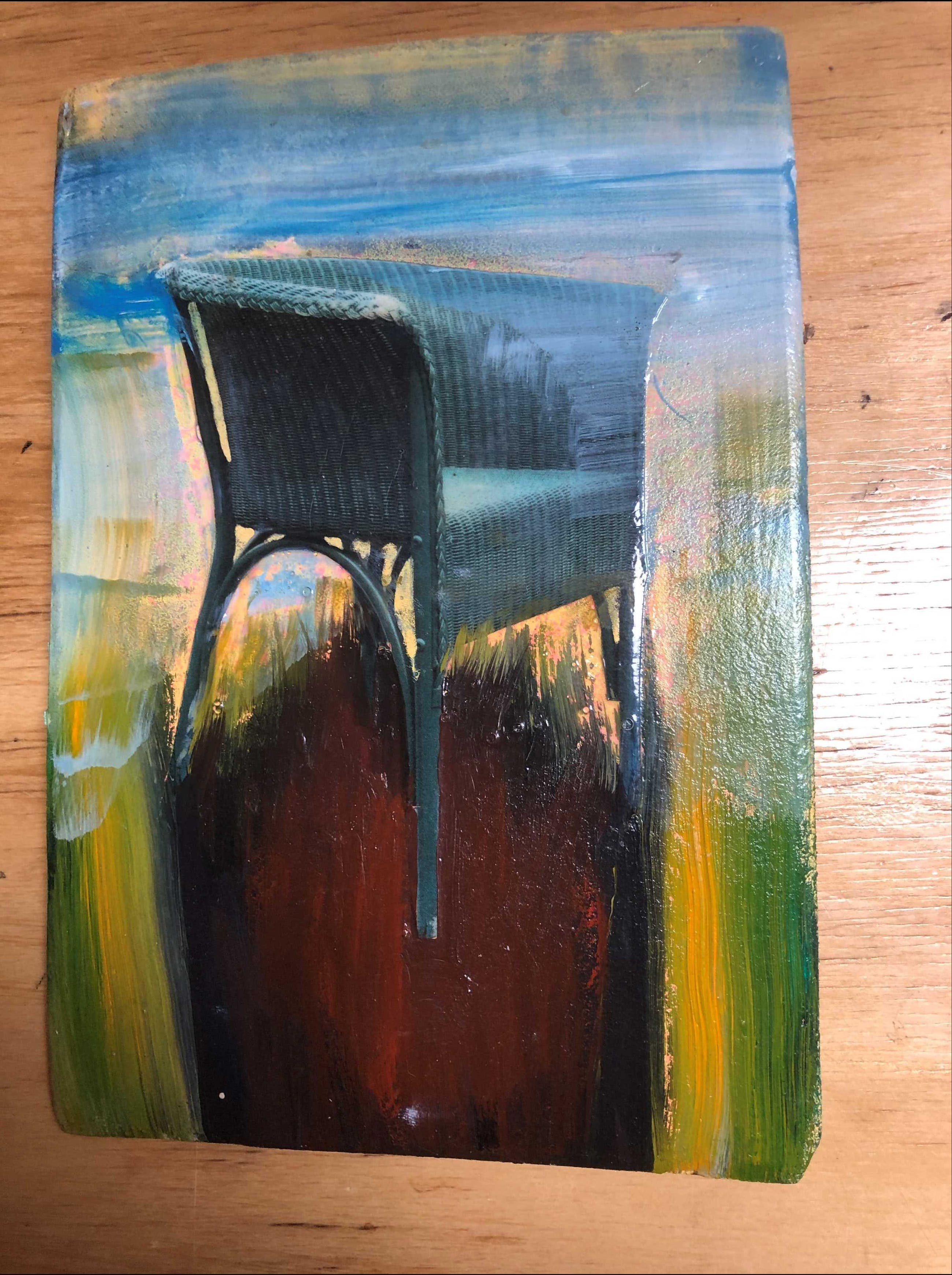 Klein werk van Edith Meijering, 21 x 115 cm. Een stoel waar iemadn ooit heeft gezeten.