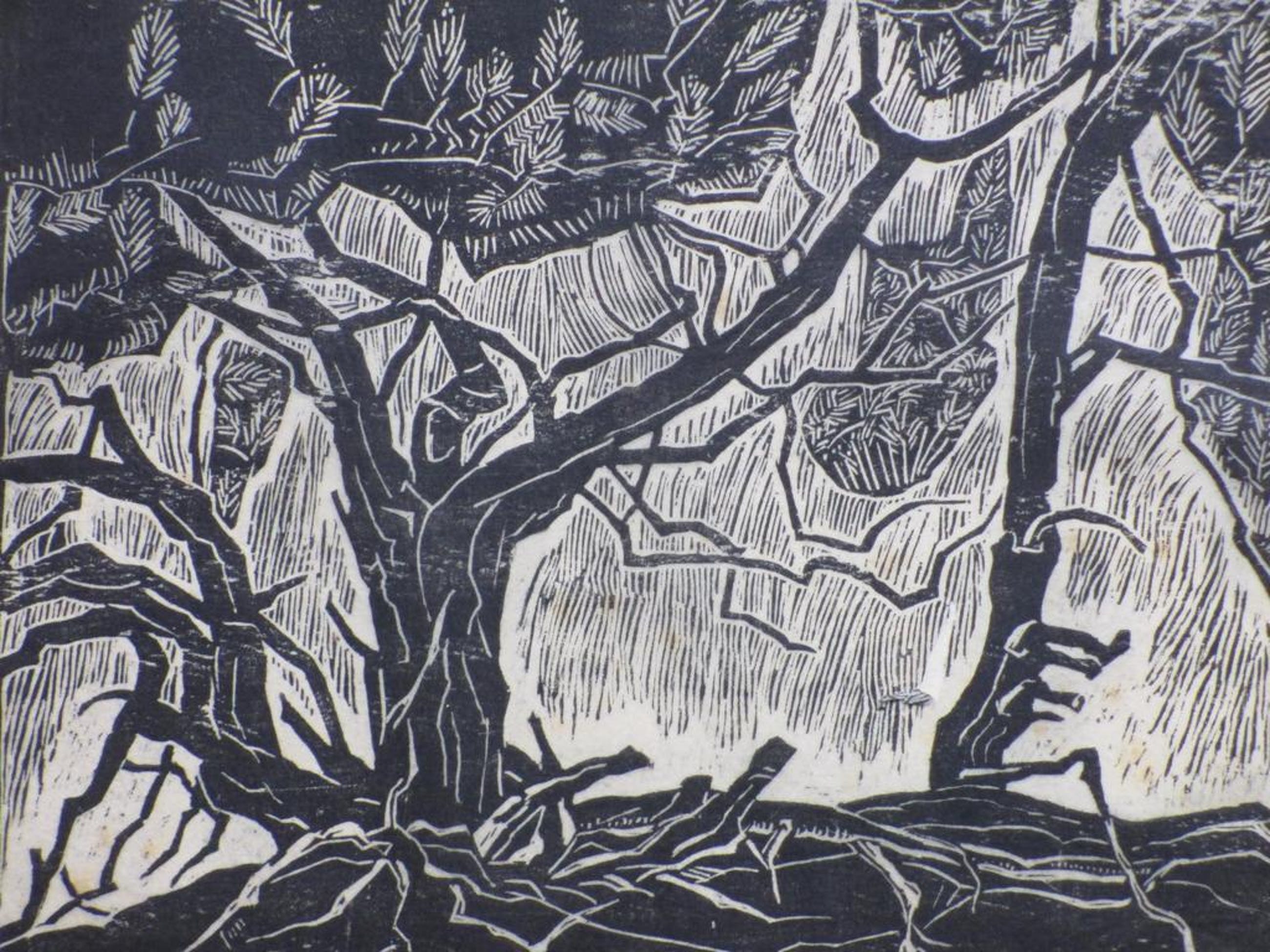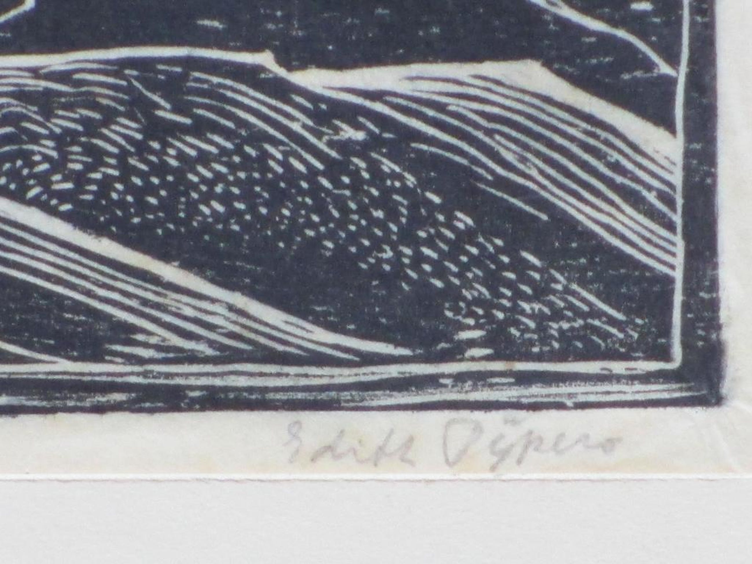 Houtsnede vastgetipt onder passepartout, zichtmaat 18x18, p.p.-maat 27x33