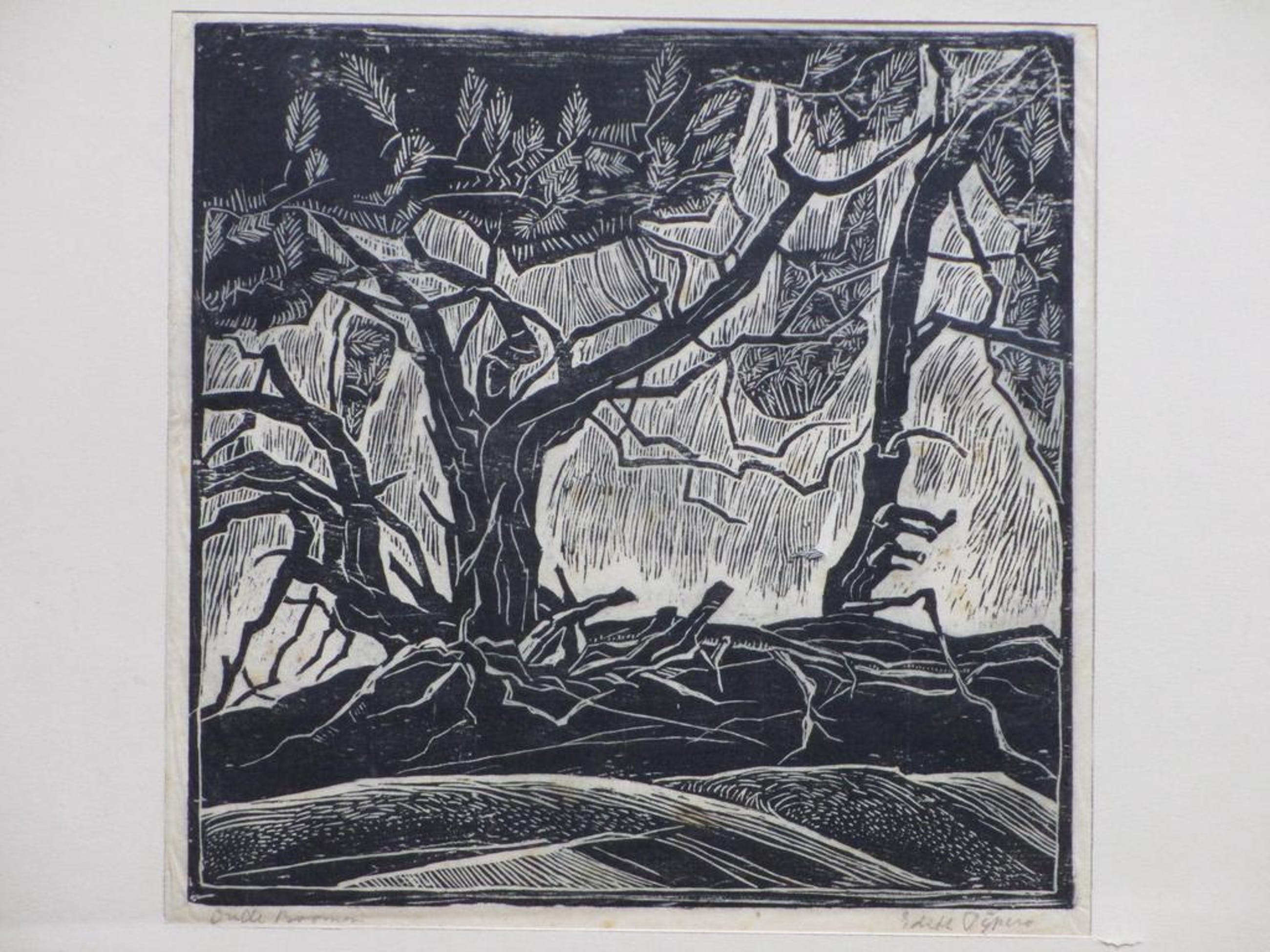 Gesigneerd r.o. 'Edith Pijpers' en getiteld l.o. 'Oude Boomen'