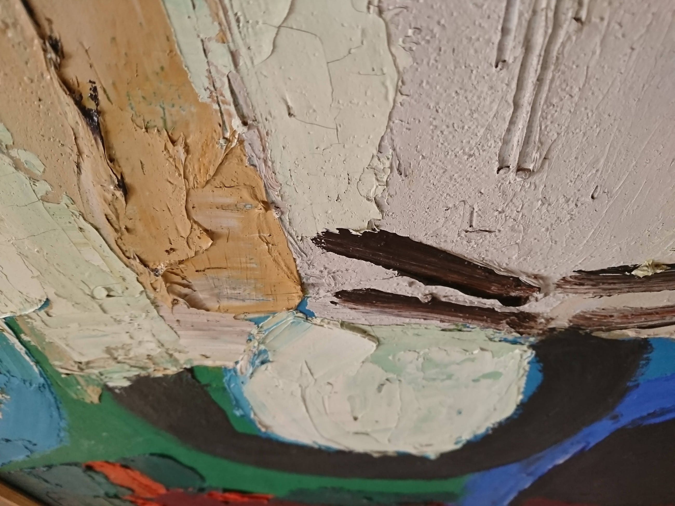 De verf is dik opgezet (veel reliëf) Het doek is tweemaal gesigneerd voor rechtsonder en vice versa met het jaartal '69 op de achterkant; op het spieraam aan de achterzijde staat in het Frans genoteerd 'A La Mer' (aan zee) wellicht de titel van het schilderij.