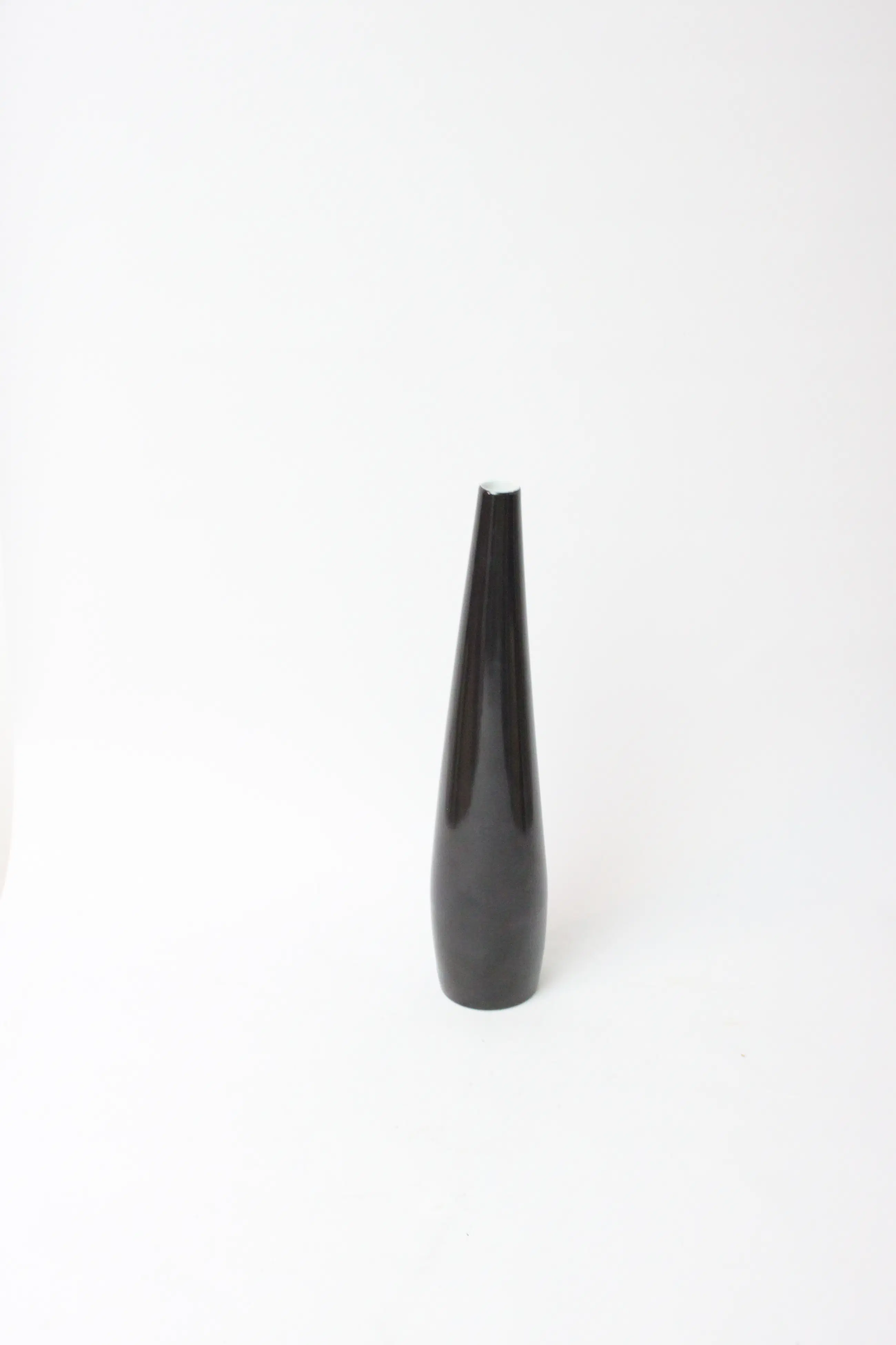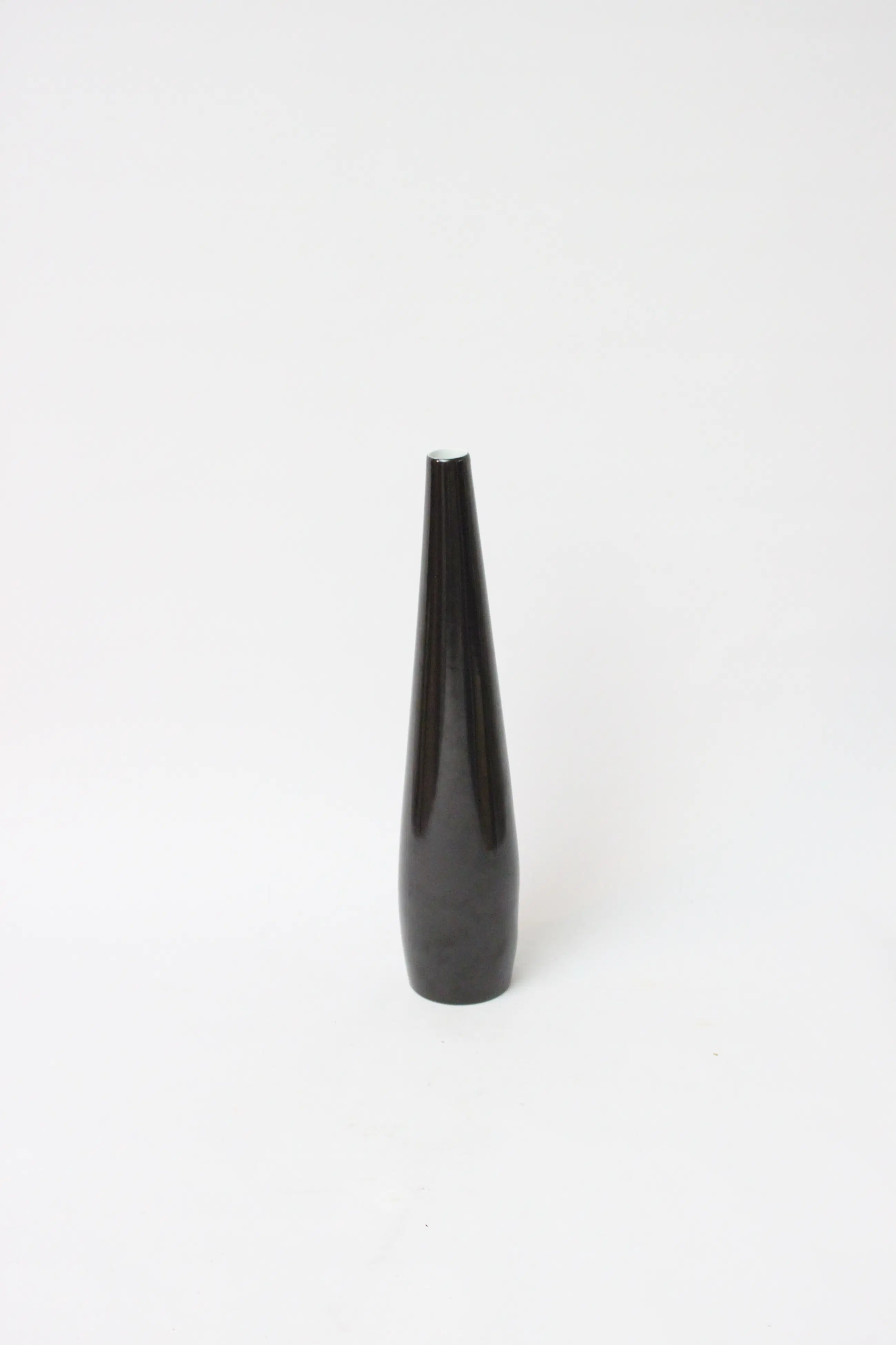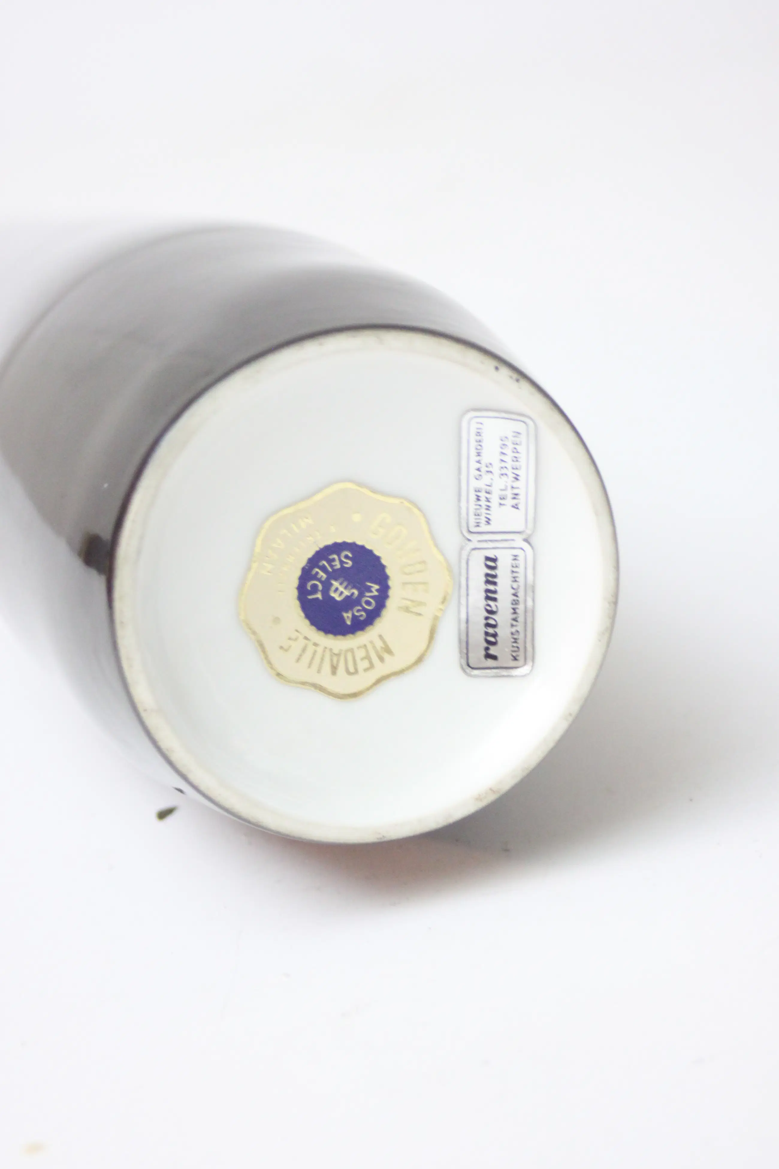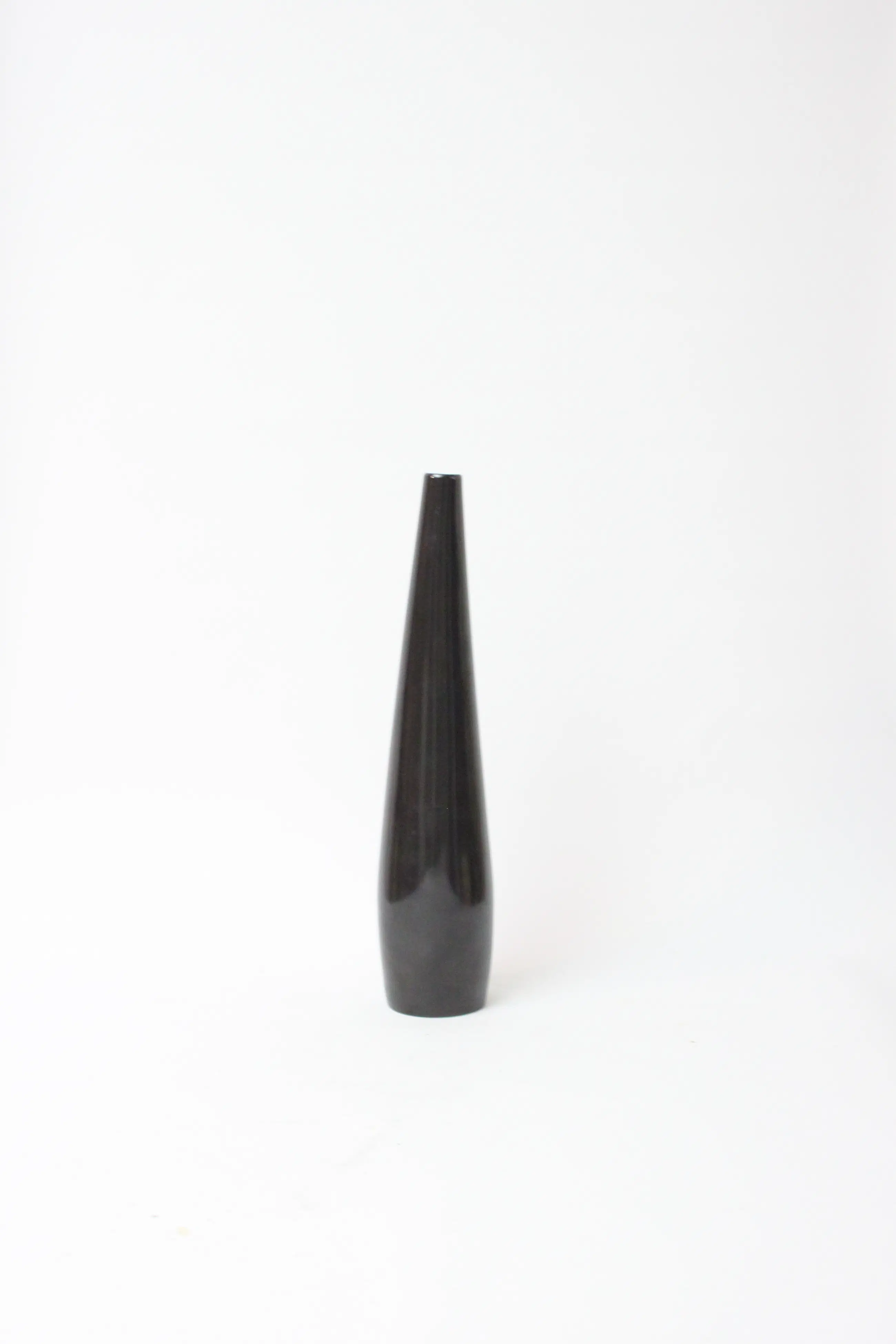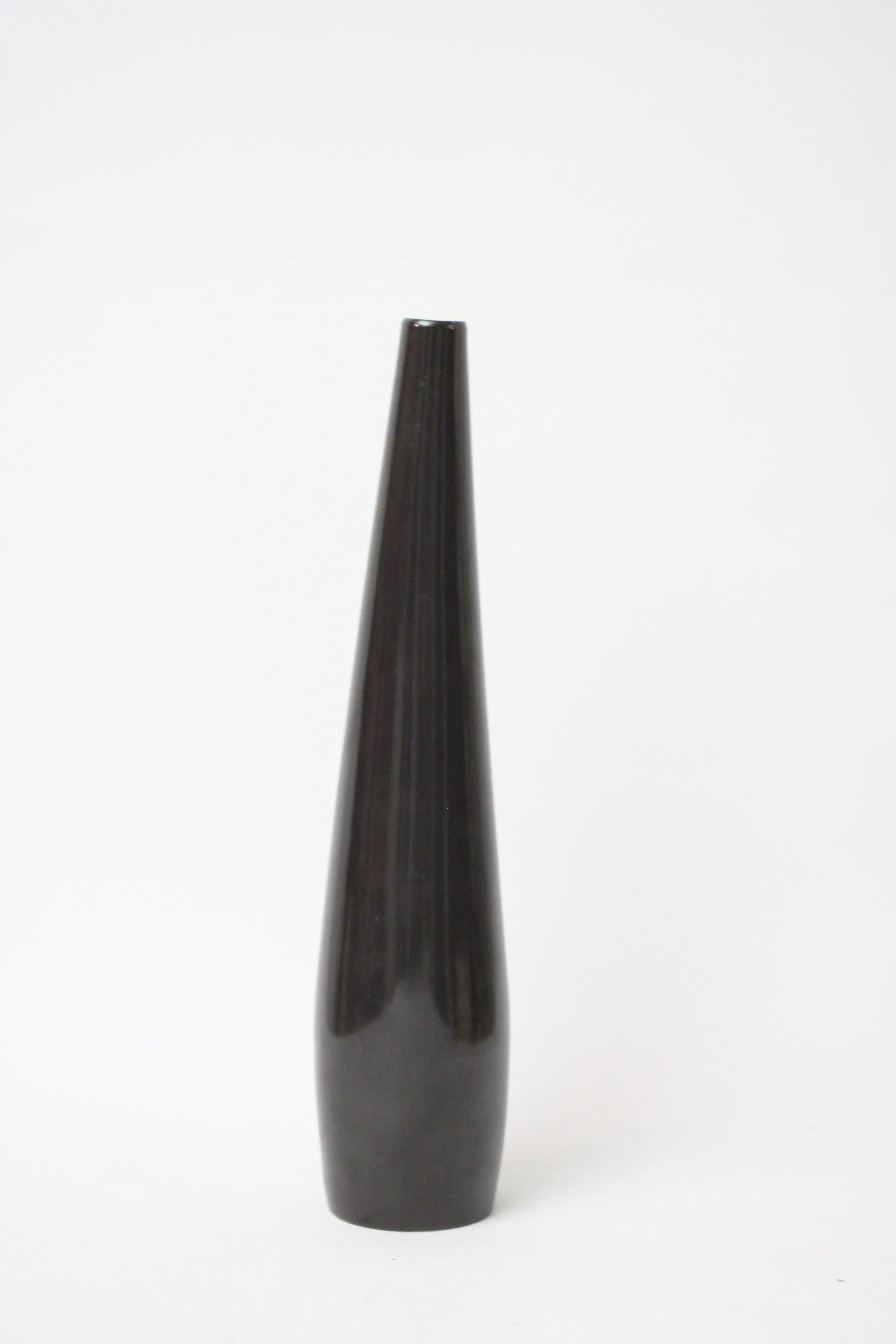 Een zwarte vaas uit de jaren 50, ontworpen door Edmond Bellefroid voor Mosa.