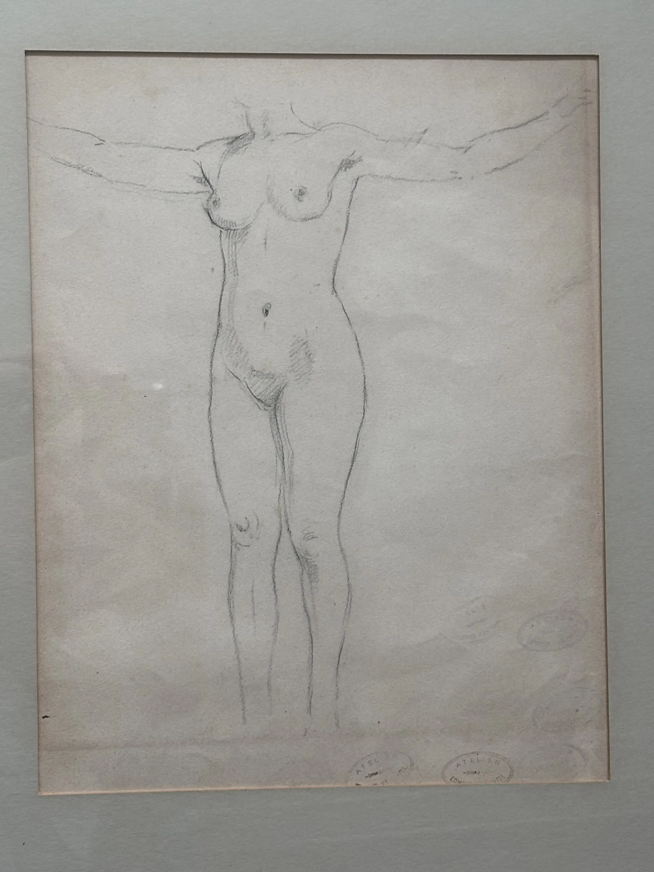 Een potlood tekening van een staand model door Edmond van Offel.