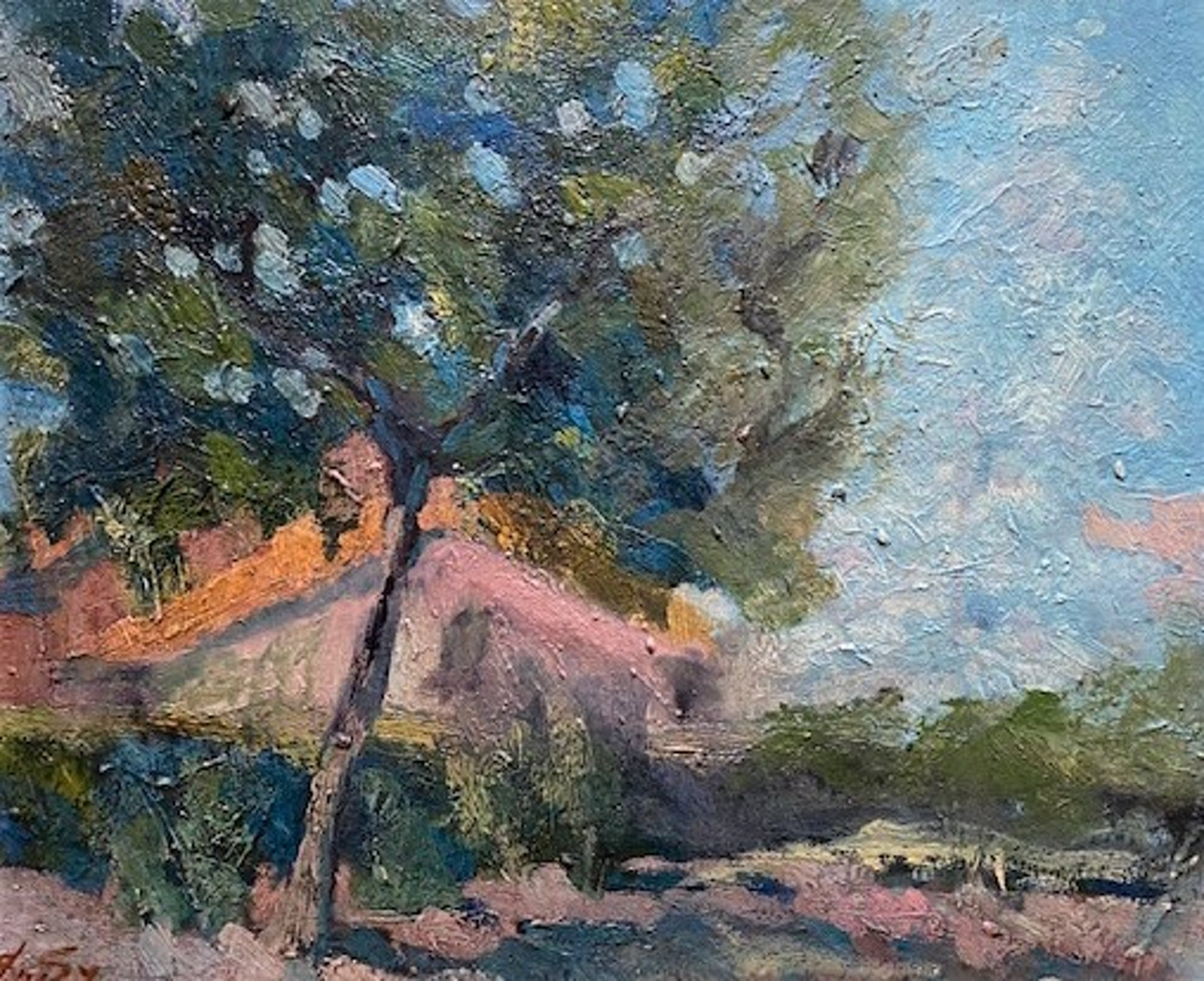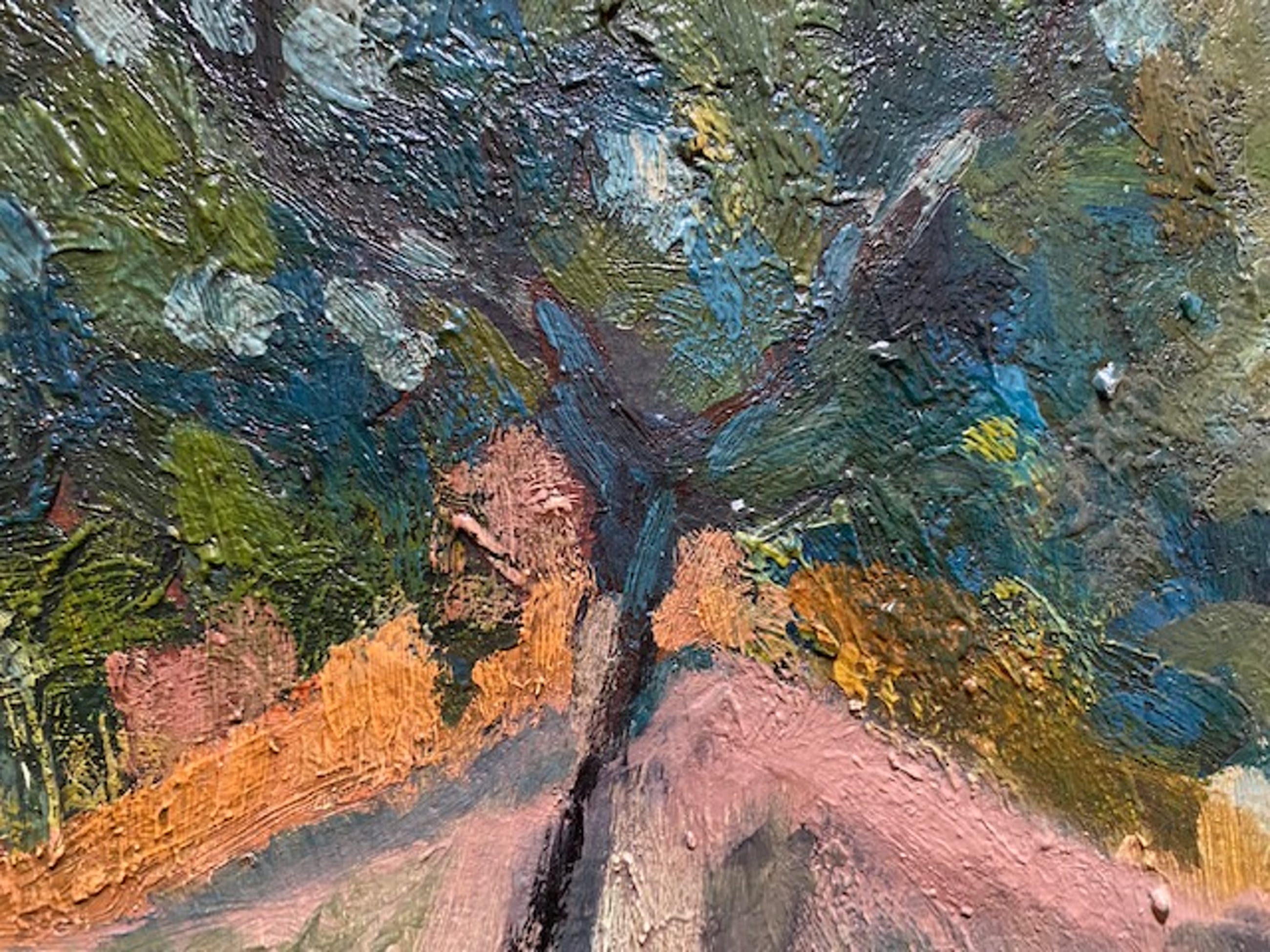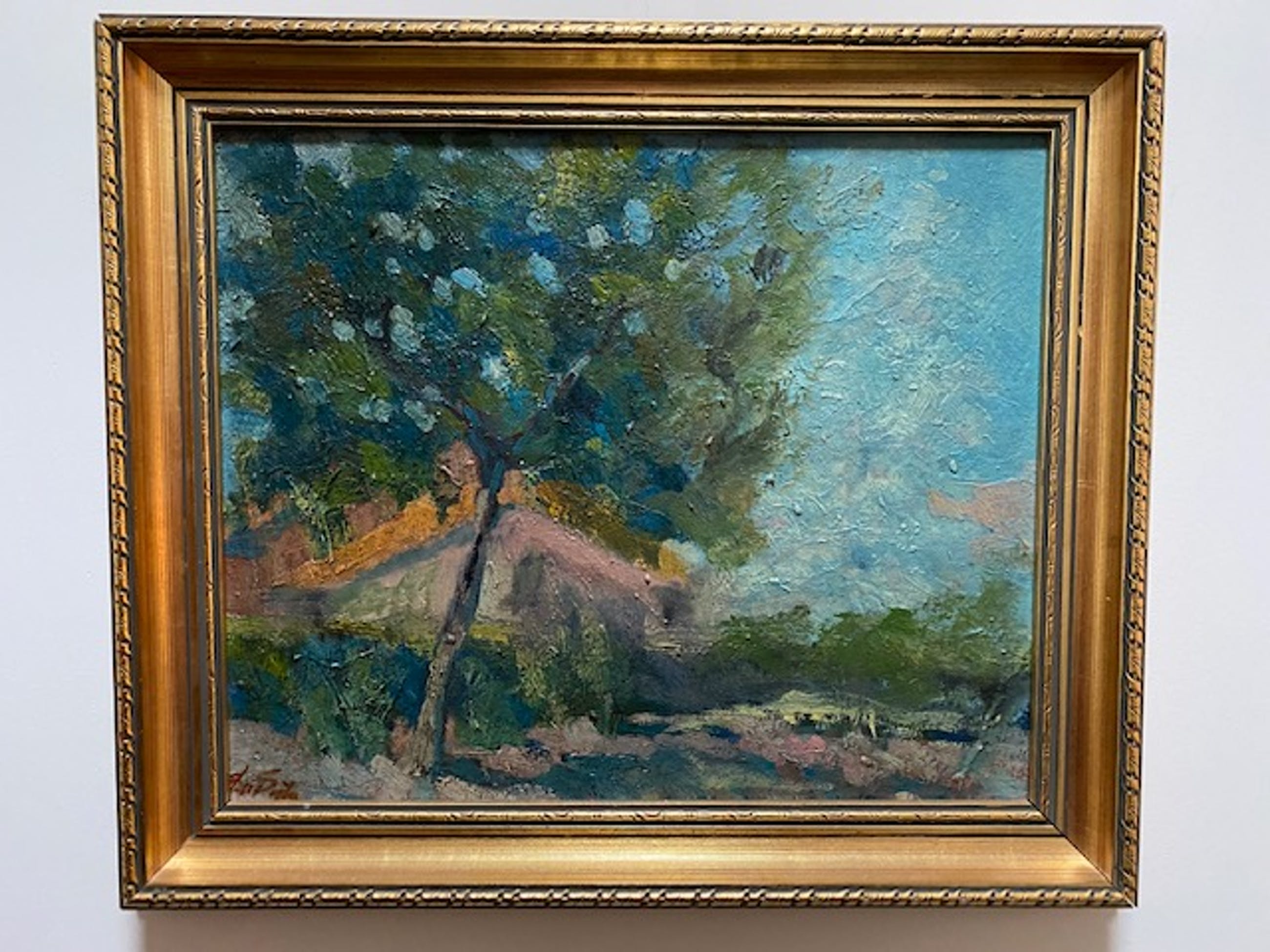 Hij woonde en werkte in Amsterdam, Antwerpen, Luik, Brussel en Maastricht en schilderde genrestukken en landschappen met figuren en paarden. Bijzonder mooi en krachtig geschilderd impressionistisch zomers landschap met een bloeiende boom. Op de achtergrond een boerderijtje. De schitterende warme kleuren zijn met een impressionistische inslag vlot op het paneel aangebracht.
