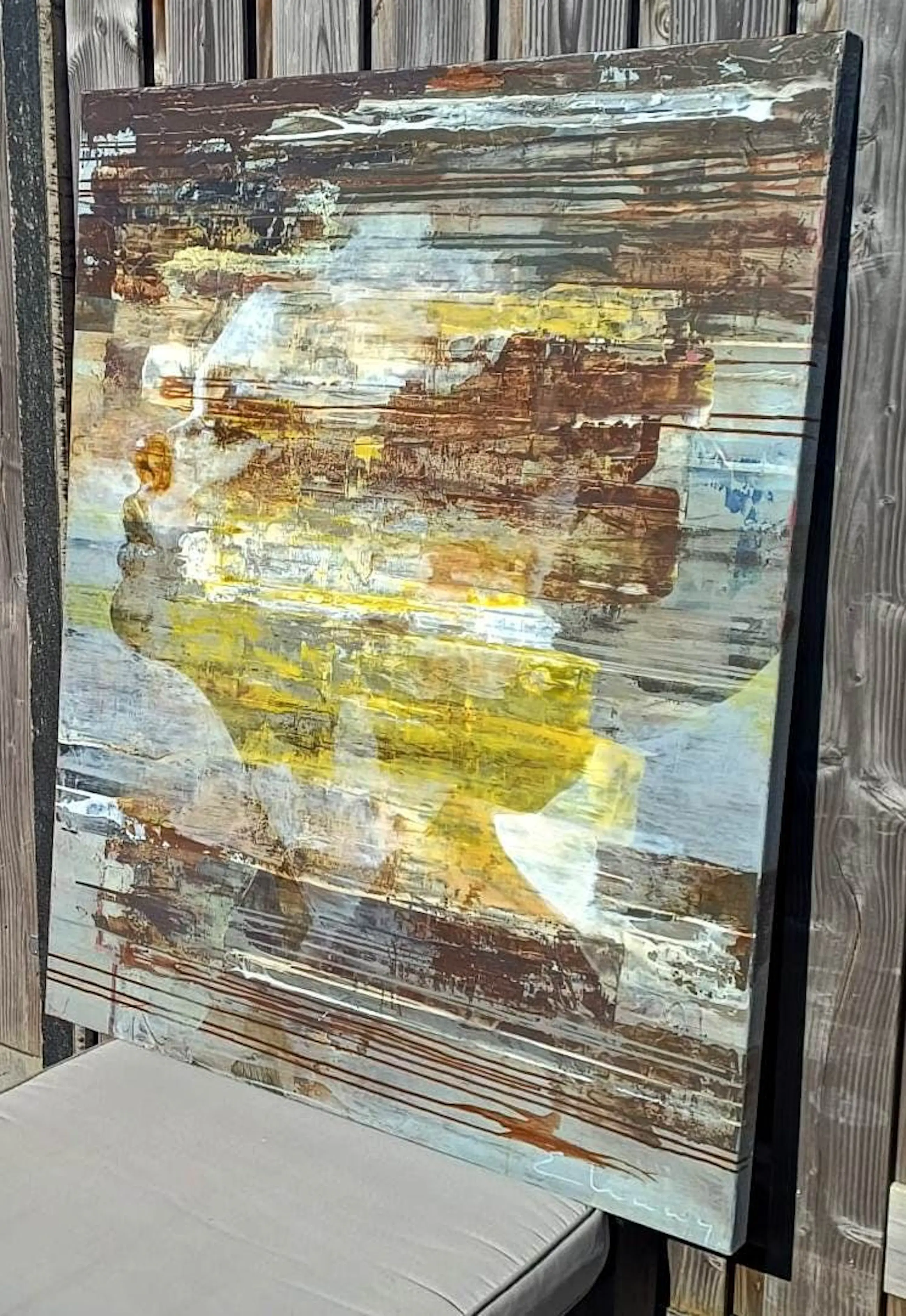 Acryl op doek van Edo Kaaij. Titel: breath. Afmetingen: H130 x b105 cm. Het werk is rechtsonder en op de achterzijde gesigneerd. Het werk kan zo aan de muur. De randen zijn namelijk meegeschilderd. De authenticiteit van dit werk wordt volledig gegarandeerd. Een certificaat van echtheid kan, op aanvraag, na aankoop en betaling van het werk worden gemaild.