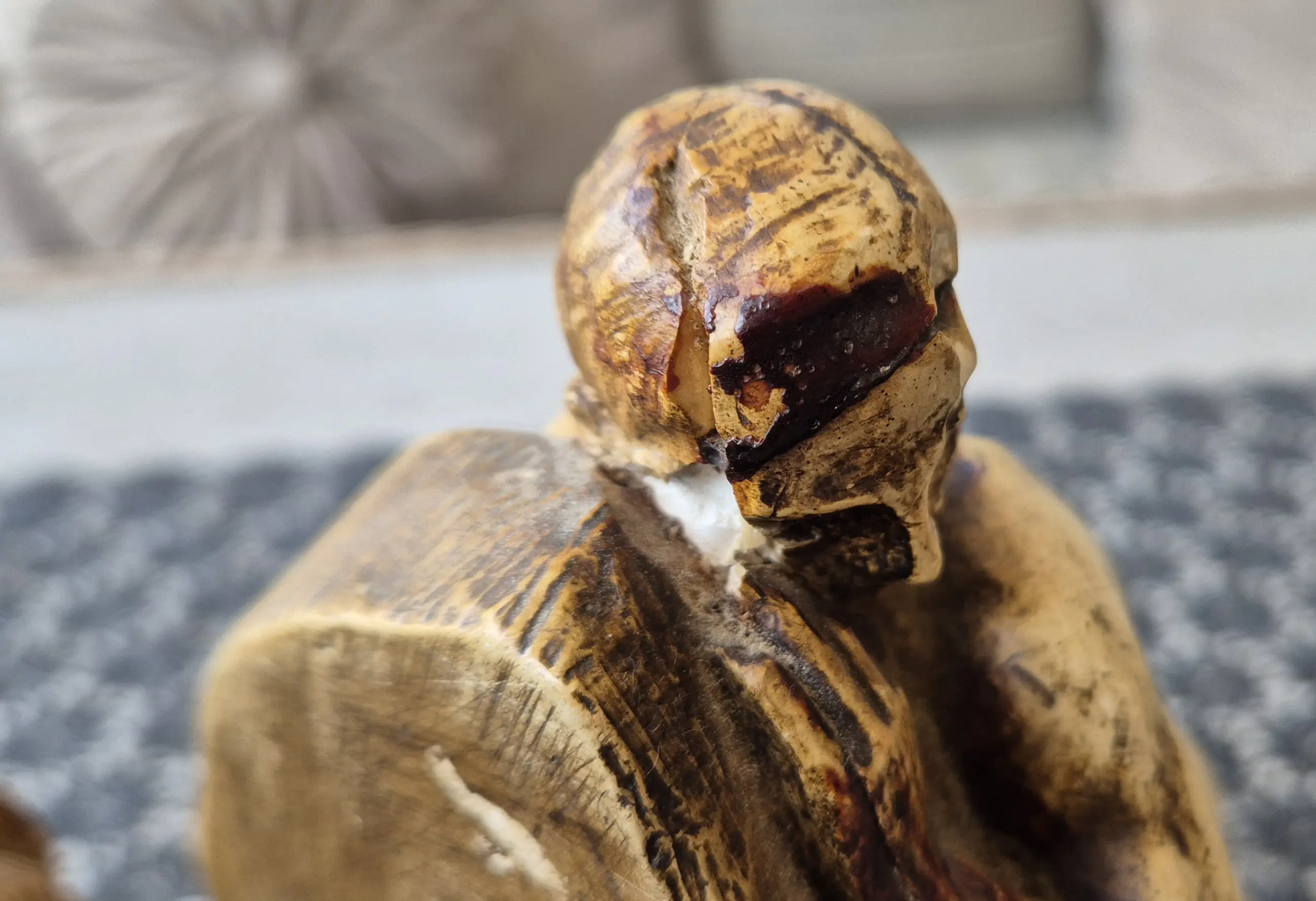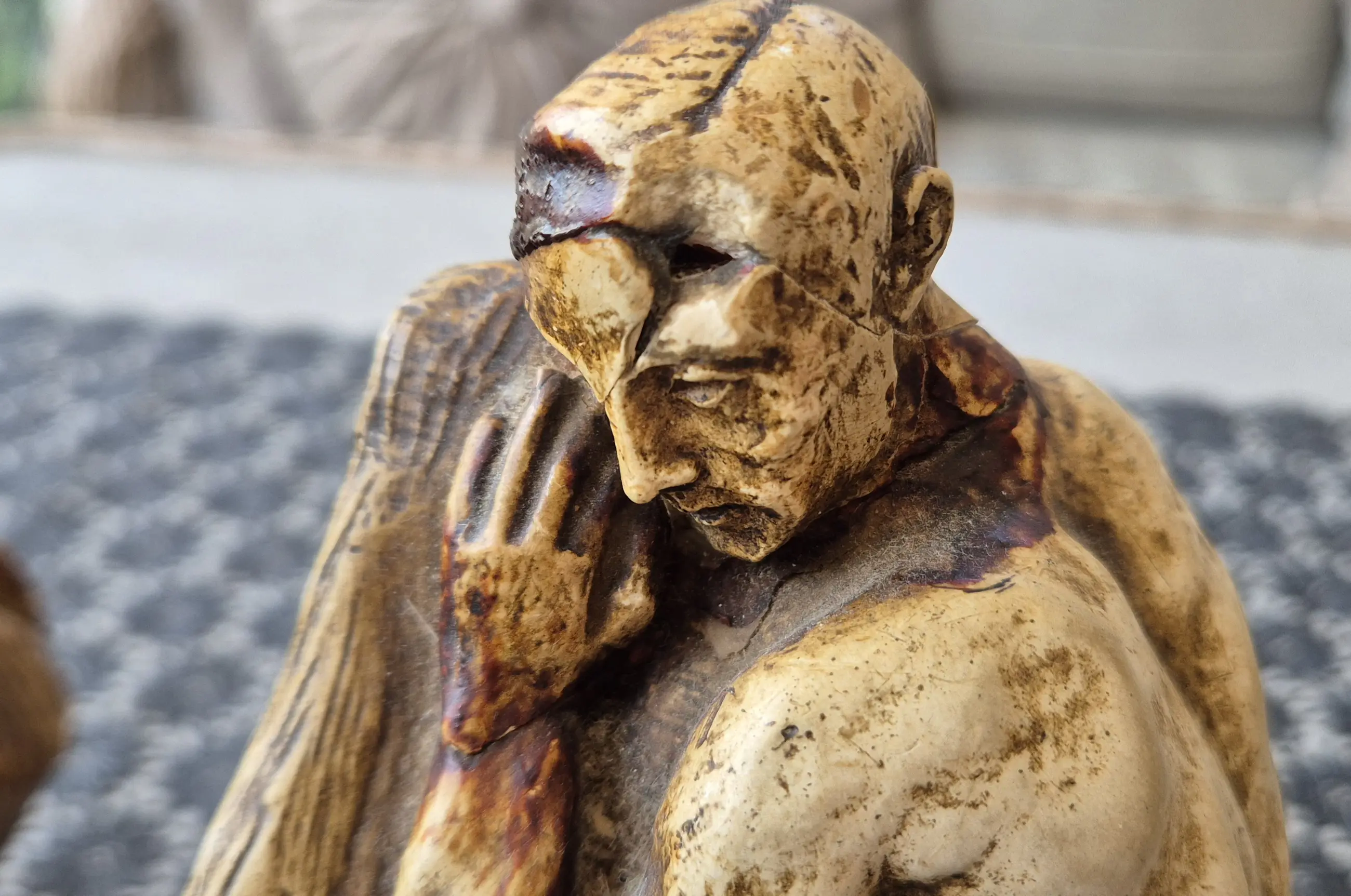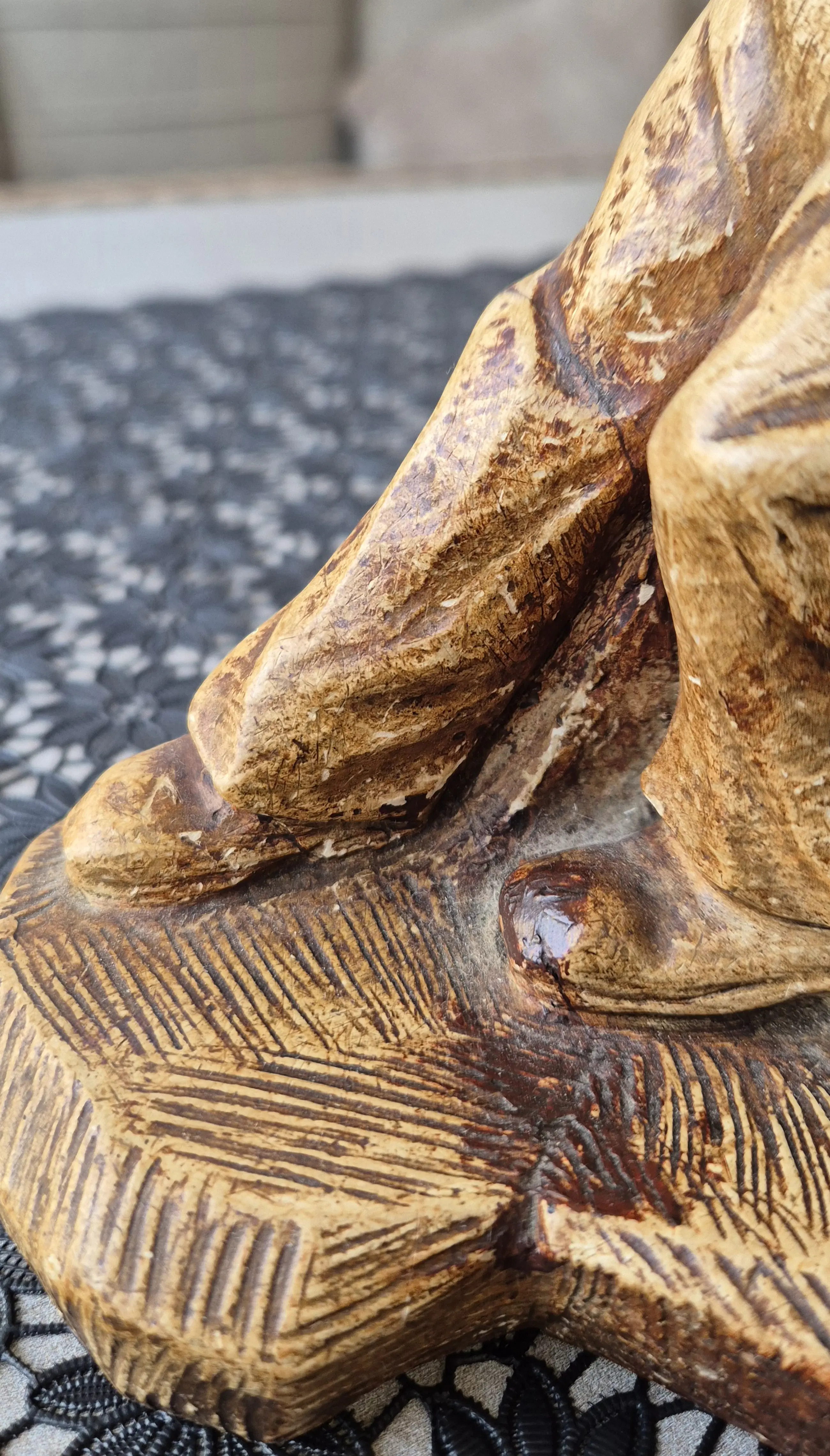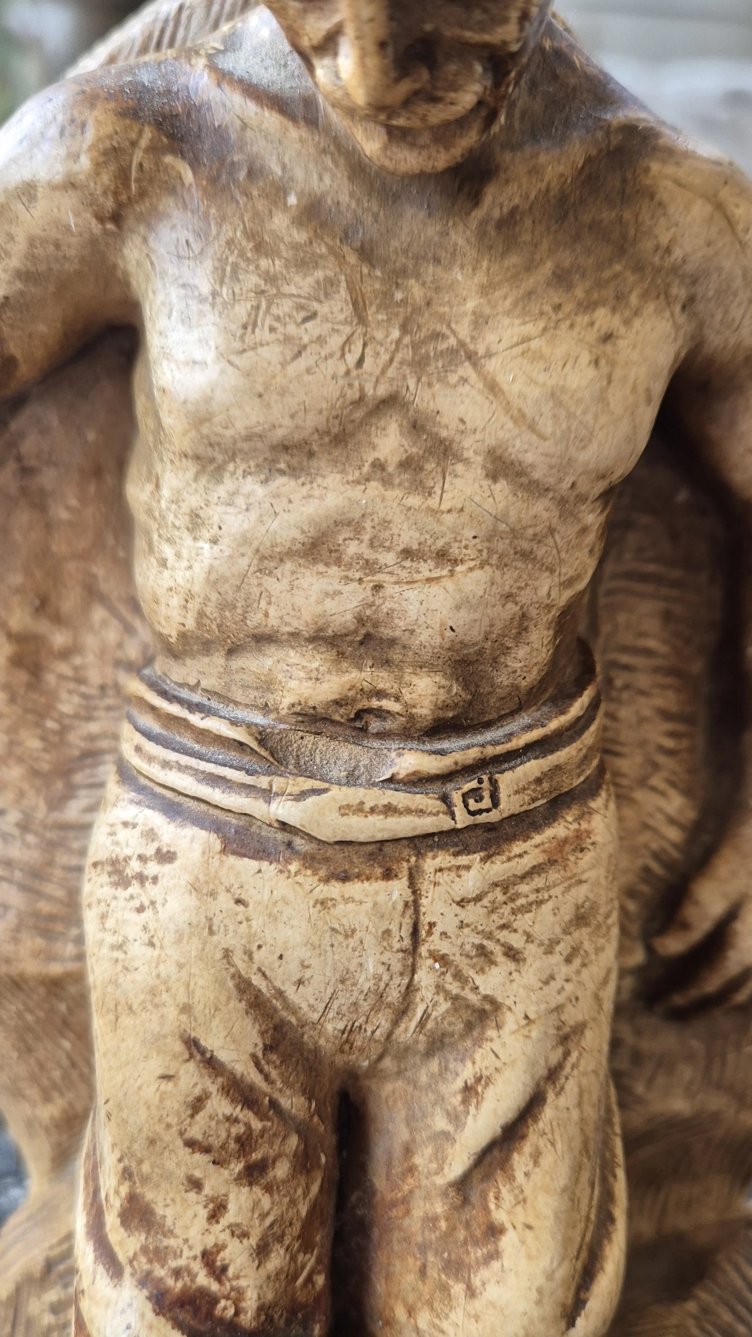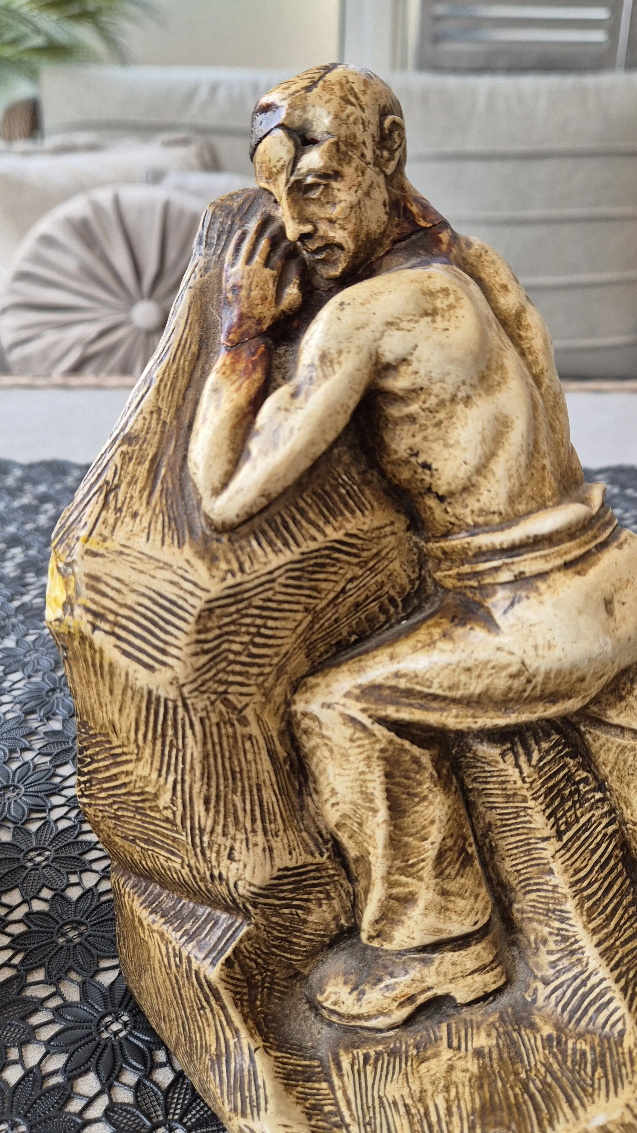 Twee prachtige boeksteunen. Mooie staat, maar de rechter steun heeft een duidelijke breuk bij het hoofd die matig gerepareerd is. Zie foto's. Op een afstandje valt het echter niet meteen op gezien de kleurstelling. Kan waarschijnlijk eenvoudig bijgewerkt worden door een restaurateur. De linker steun is onbeschadigd en in uitstekende staat. Mooie en zeldzame set van deze bijzondere kunstenaar.