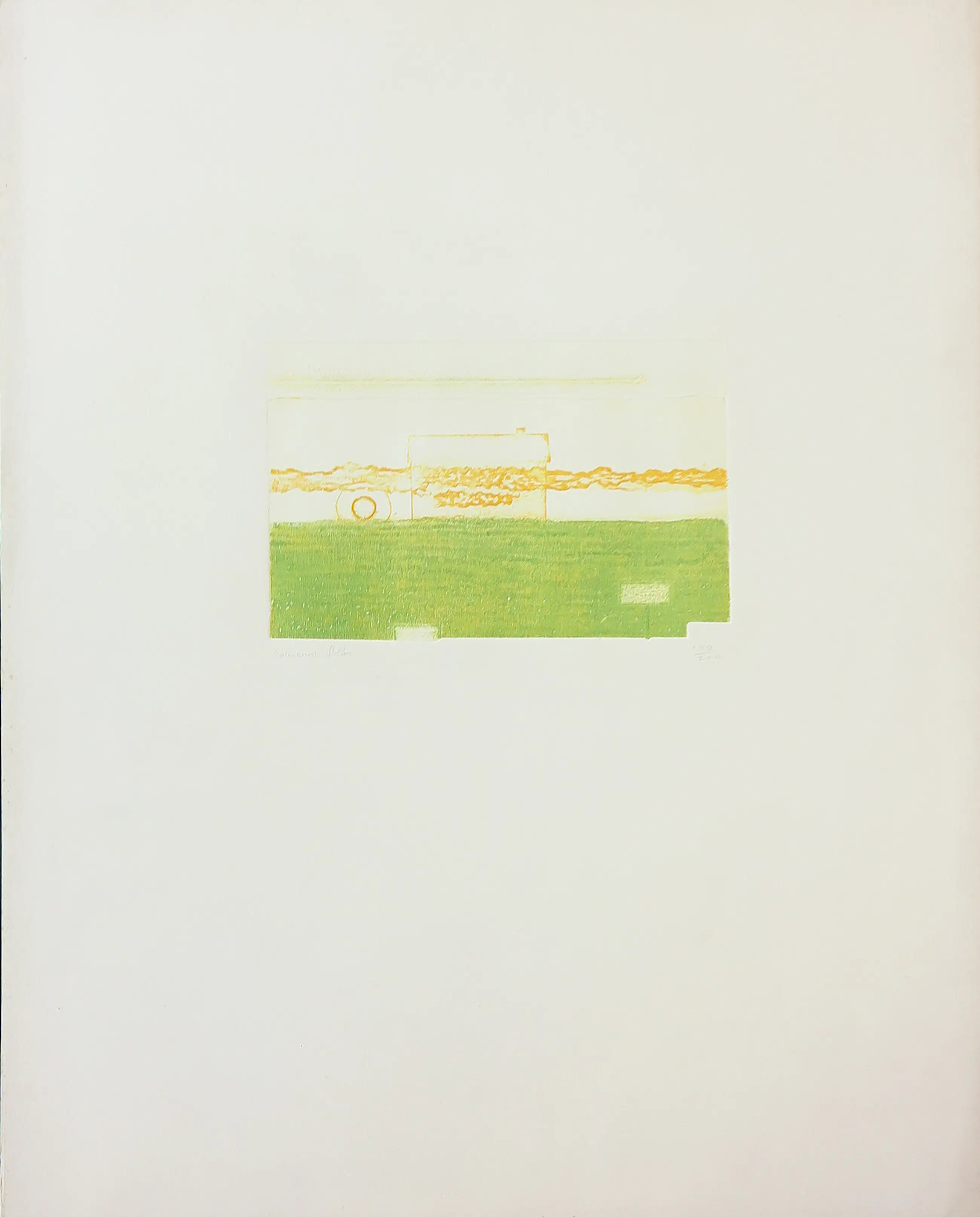 Handgesigneerd. Let op: de gegeven maten zijn van de uiterste randen van het papier. De voorstelling heeft de volgende afmetingen: 16 bij 23 cm.