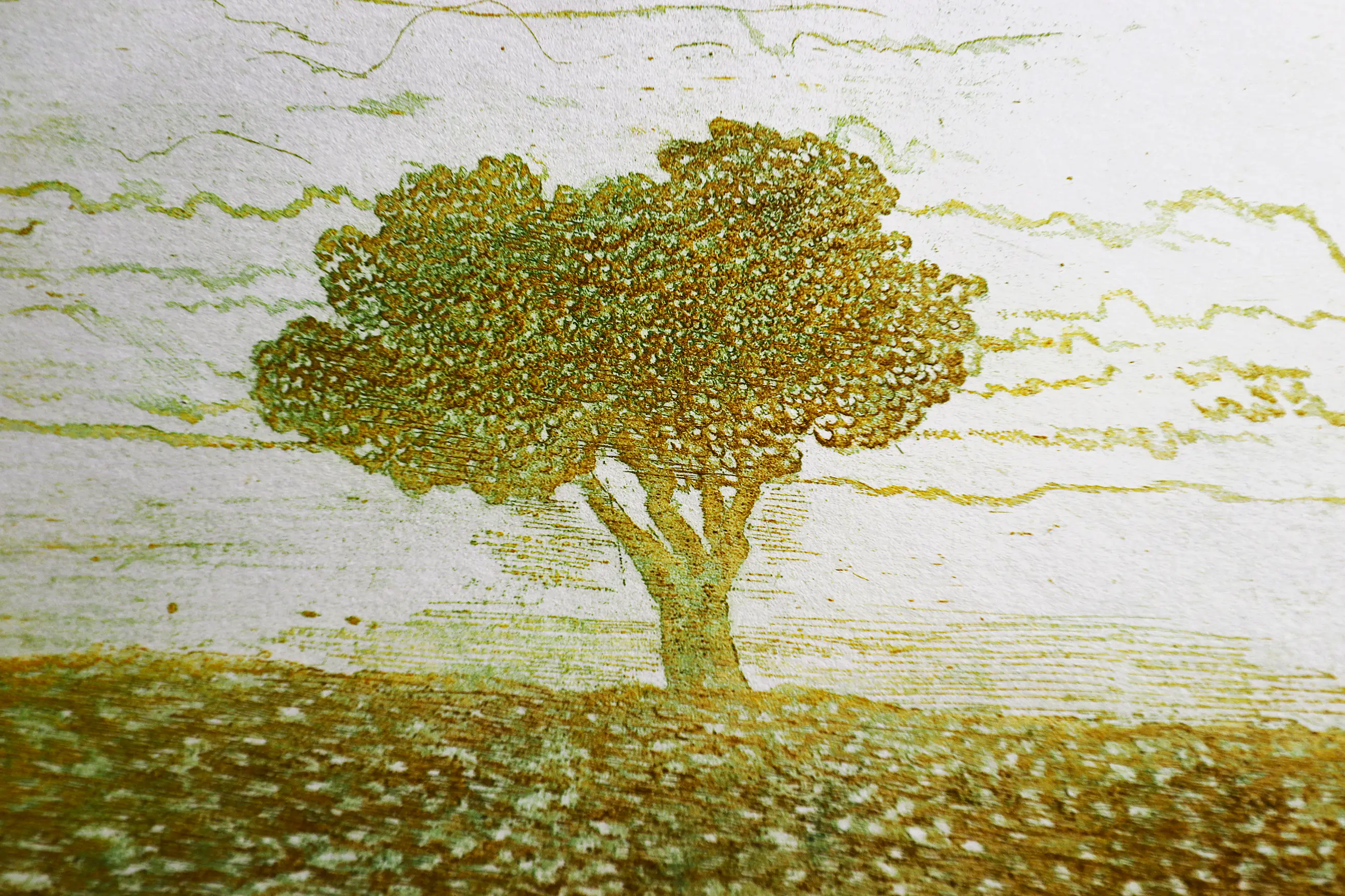 Datering : 1971 Titel : Boom in de herfst Medium / Techniek : kleurenets in relief