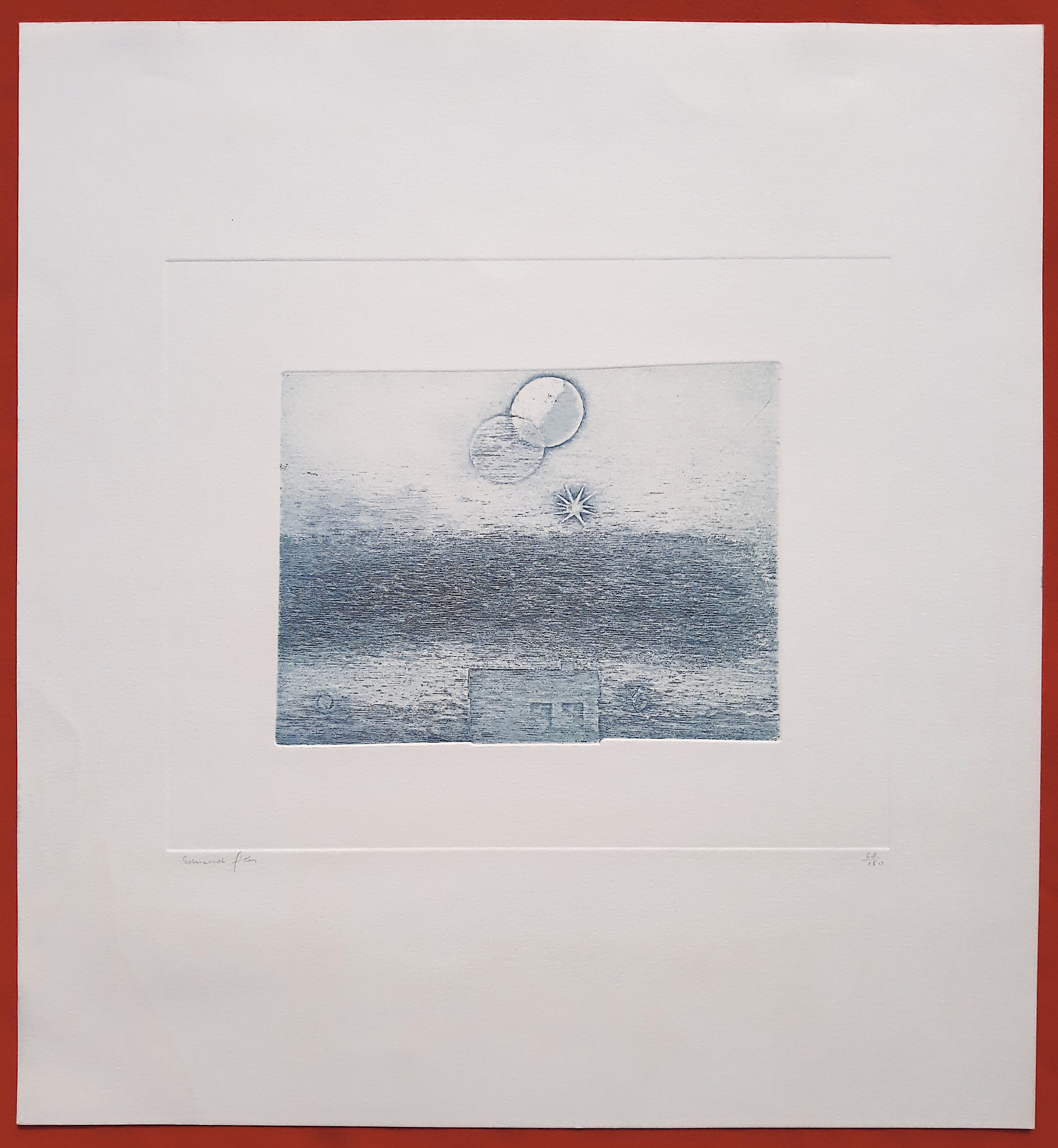 Karakteristiek, mooi werk van Eduard Flor. Aquatint ets op dik papier, met potlood gesigneerd en genummerd (68/150). In zeer goede conditie; in de hoek van het blad linksonder zit een vochtvlek, ver van het beeld. Ingelijst met passe-partout is het werk uitstekend.
