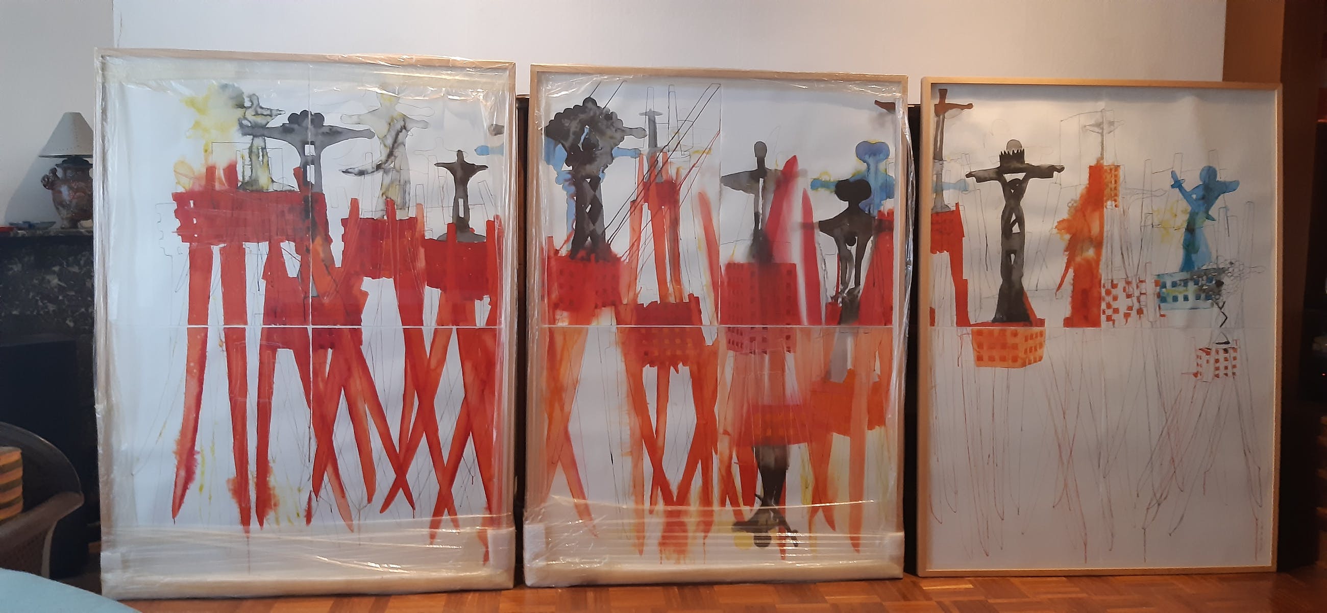 12 werken op papier die 1 geheel vormen, ingelijst per 4 stuks