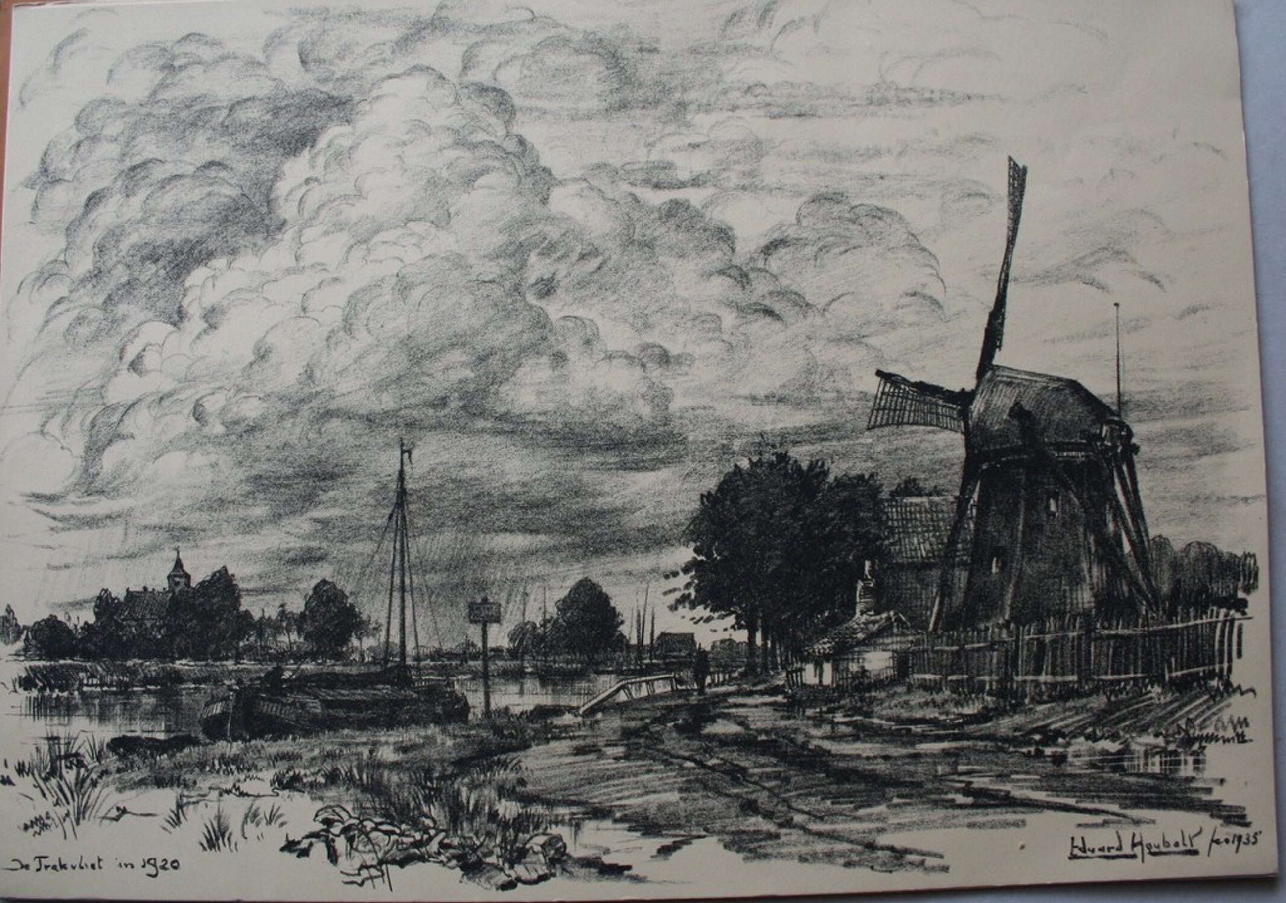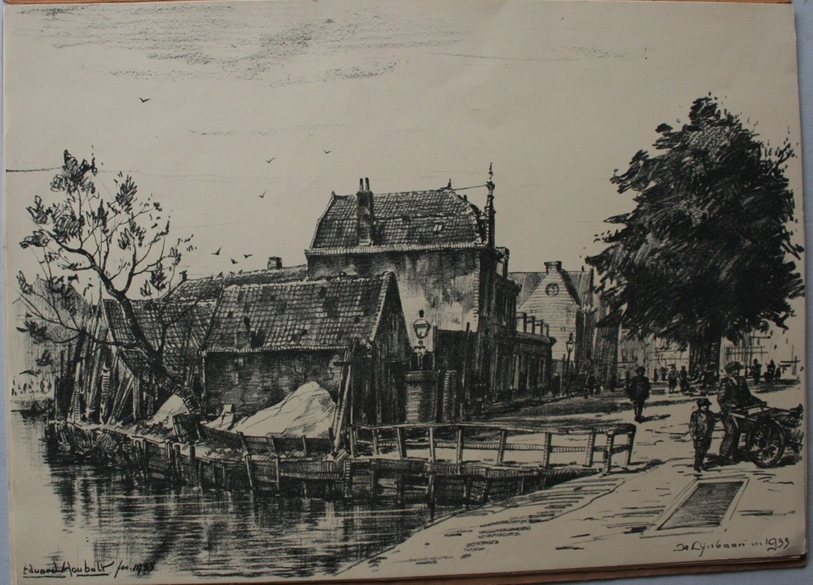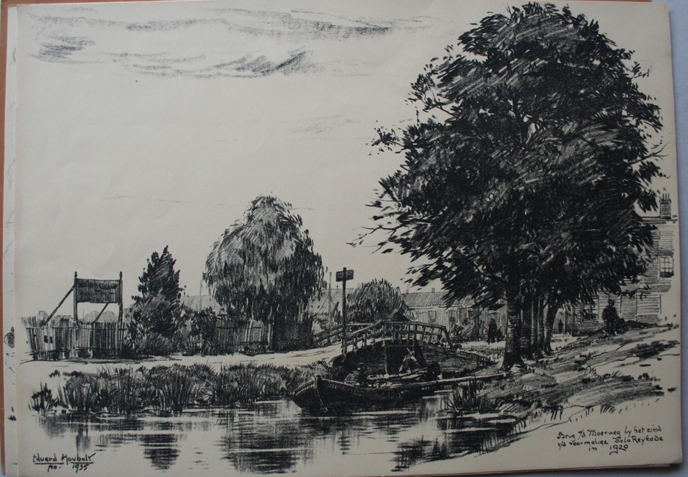 Map met vijf (van de zes) litho's naar verdwenen punten oud Den Haag door Eduard (E.J.F.) Houbolt (1885-1954).