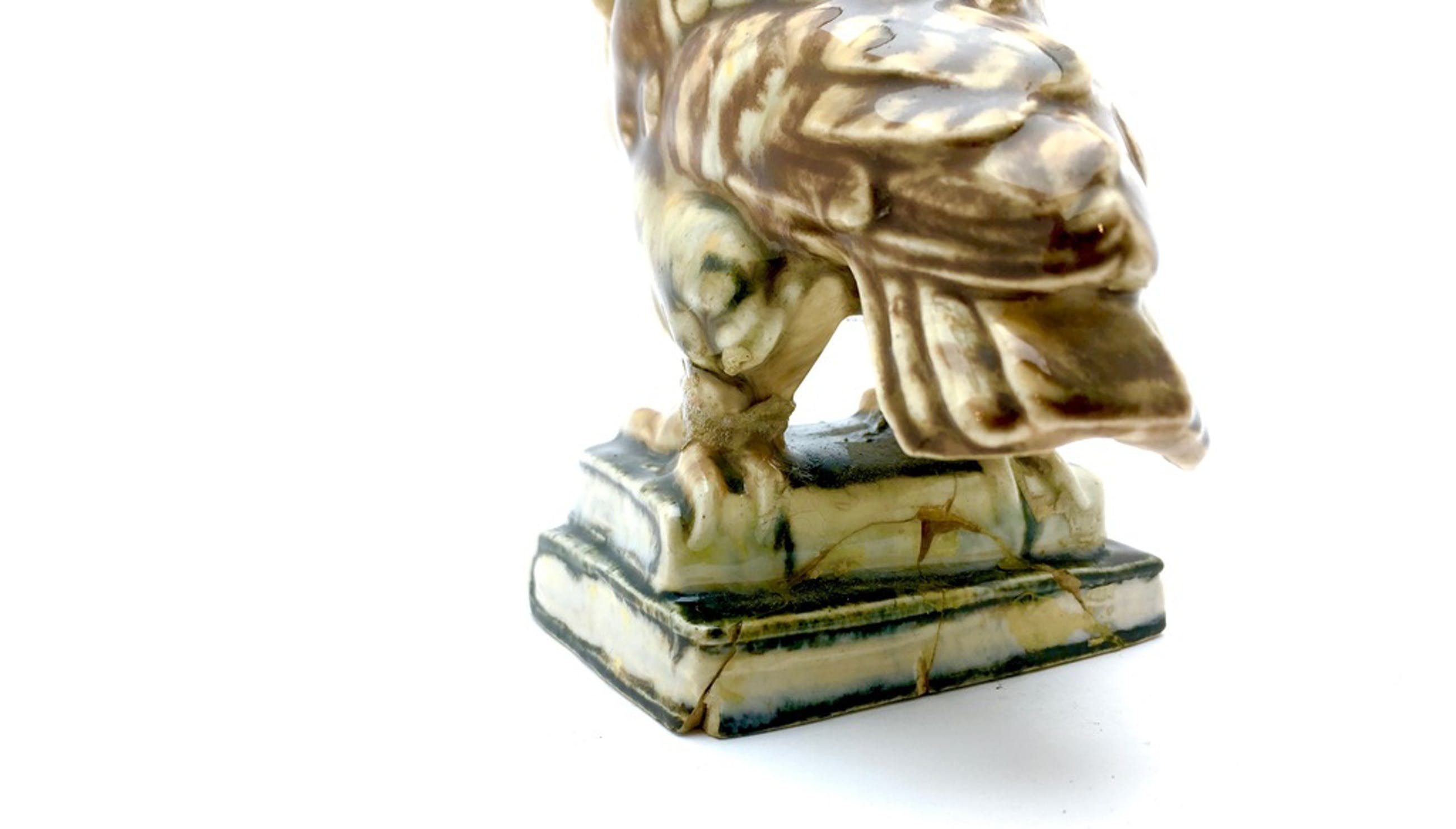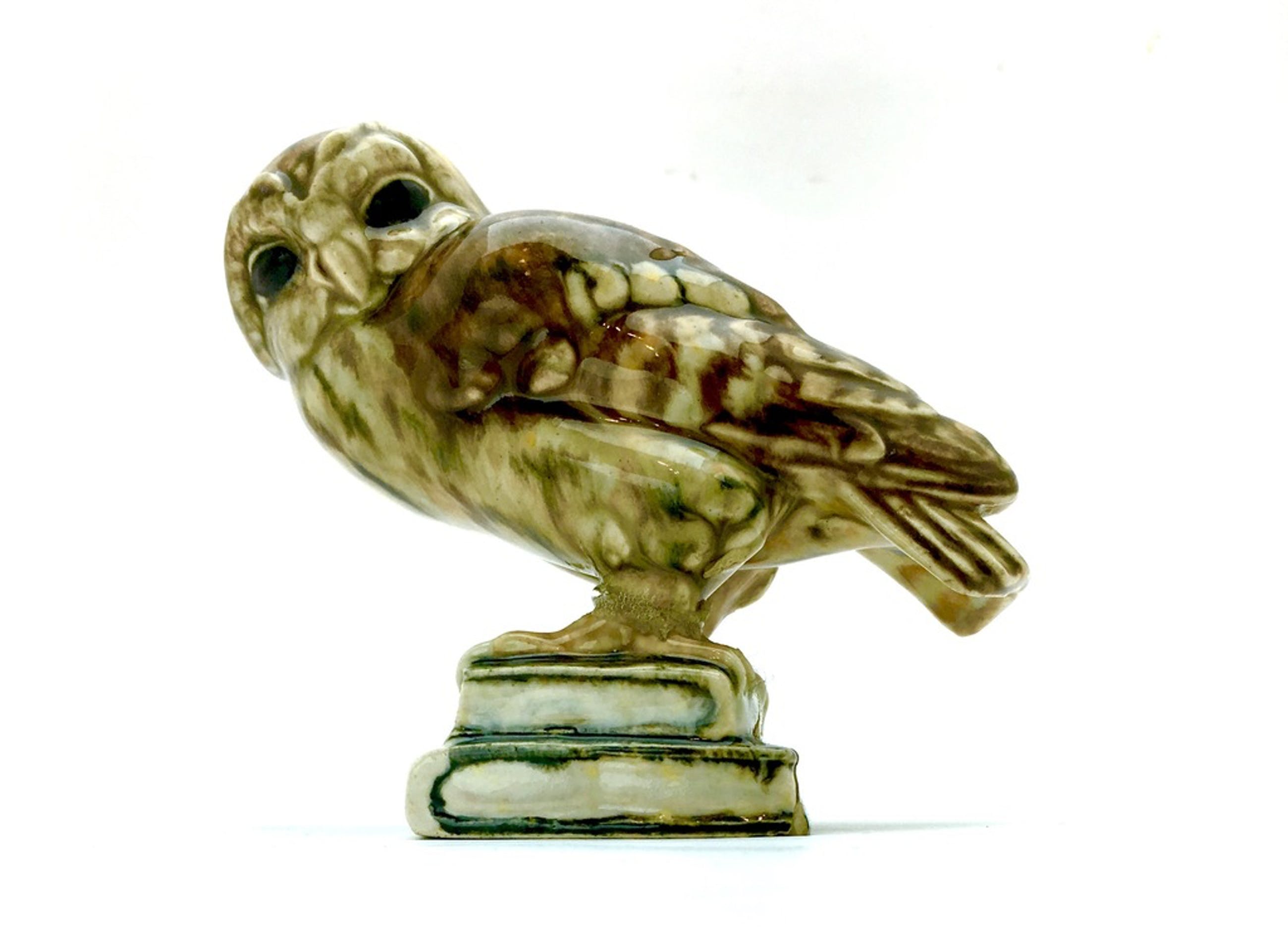 Zeer exclusief beeldje van een uil op boeken vervaardigd door: EDUARD KLABLENA (Bucany 1881 - 1933 Langenzersdorf).
