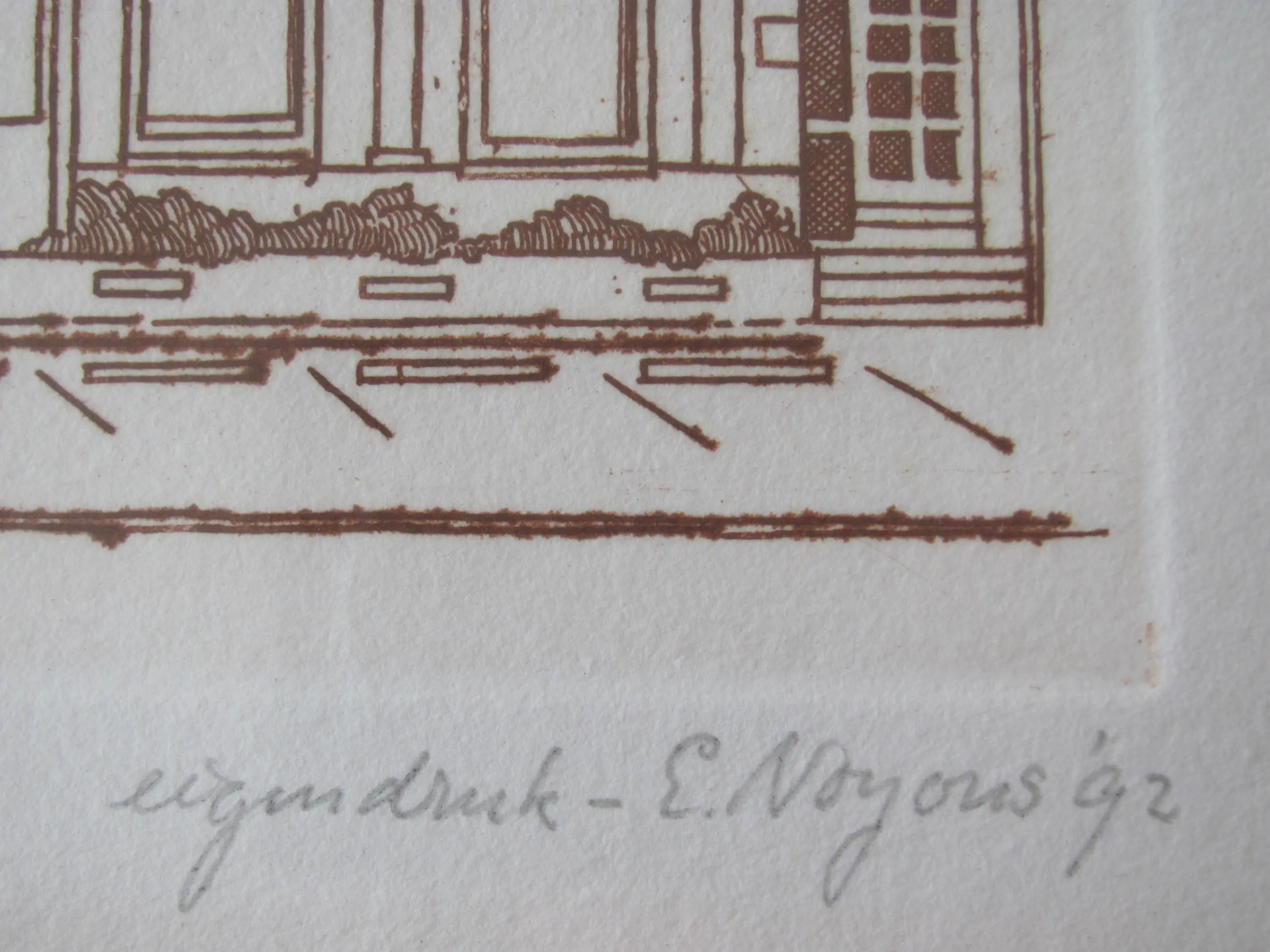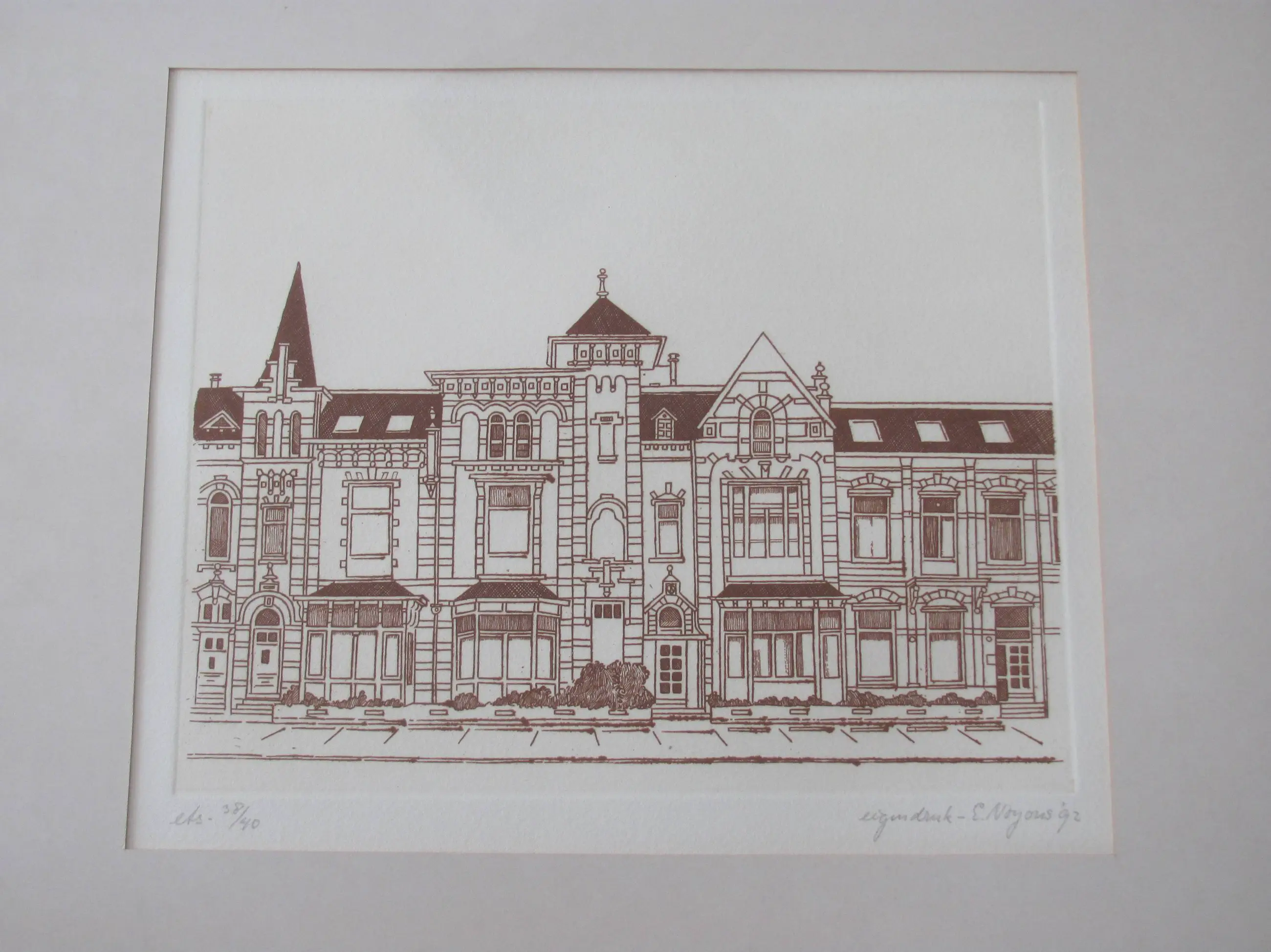 Mooie ets van Ed Noyons. Linksonder genummerd: ets 38/40 Rechtsonder gesigneerd: eigen druk E. Noyons Gedateerd: 1992 Ed Noyons (1931 - 2011) was een tekenaar, lithograaf en aquarellist. Hij werkte in verschillende plaatsen in Nederland, waaronder in Nijmegen.